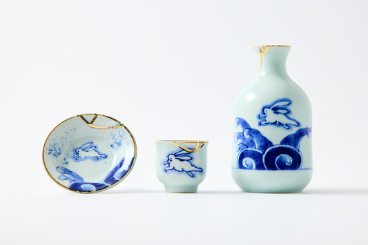 Made to OrderGold Line Kosome Rabbit Sake Set Imari Porcelain