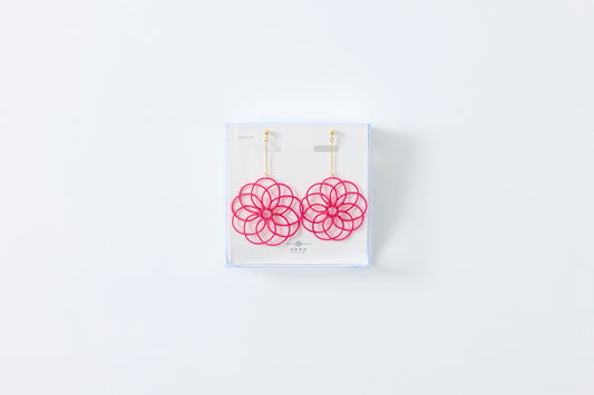 Ichimatsu | Non-Pierced Earrings (Resin) - Rhododendron & Silver