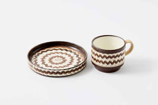 FD Arrow Feather Motif Amber Glaze Soup Mug Hasami Porcelain