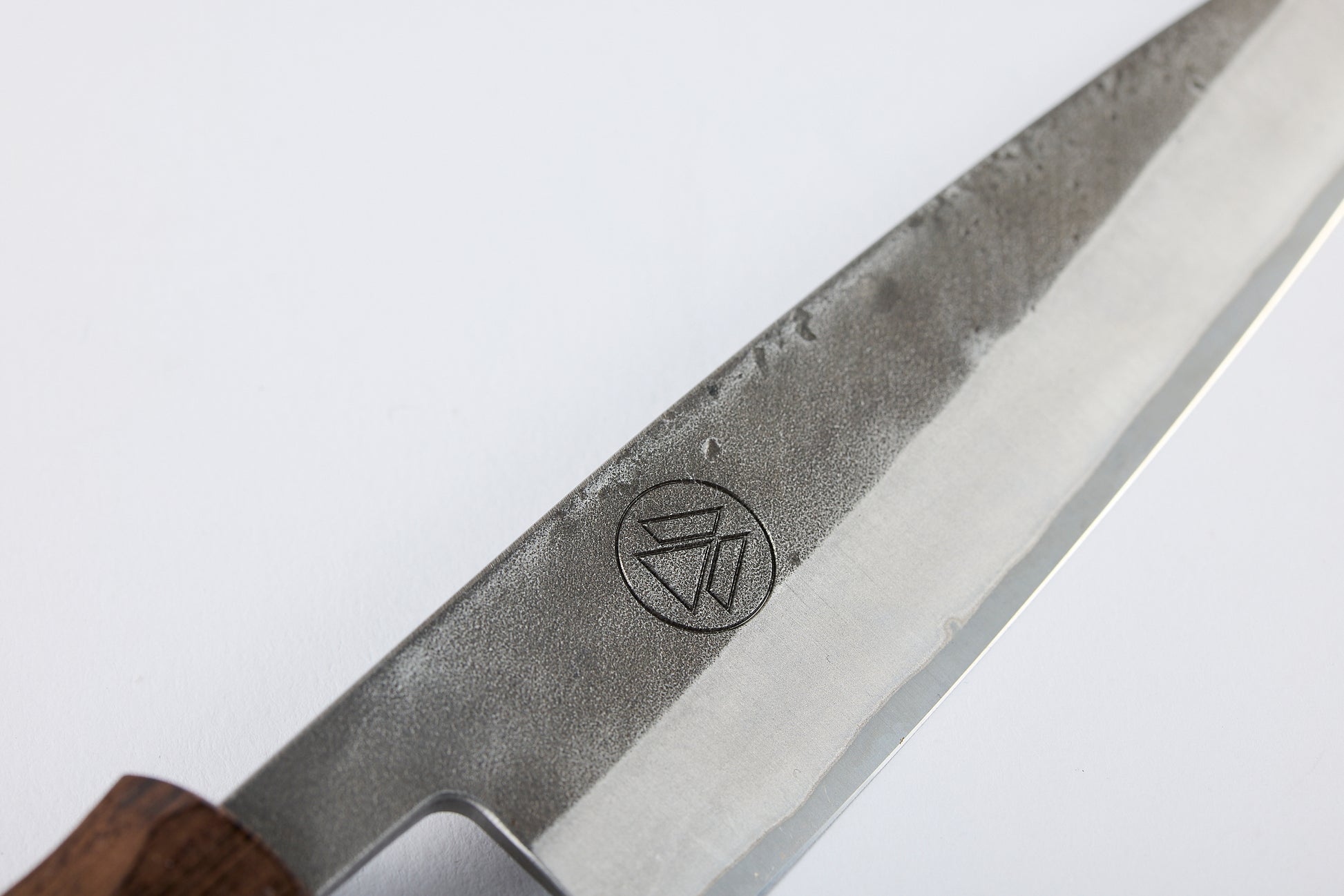 The handle of this knife has a distinctive textured surface. This is achieved through a traditional Japanese hammering technique called "Naguri-kakou." It not only provides a better grip but also adds a beautiful visual element to the knife.