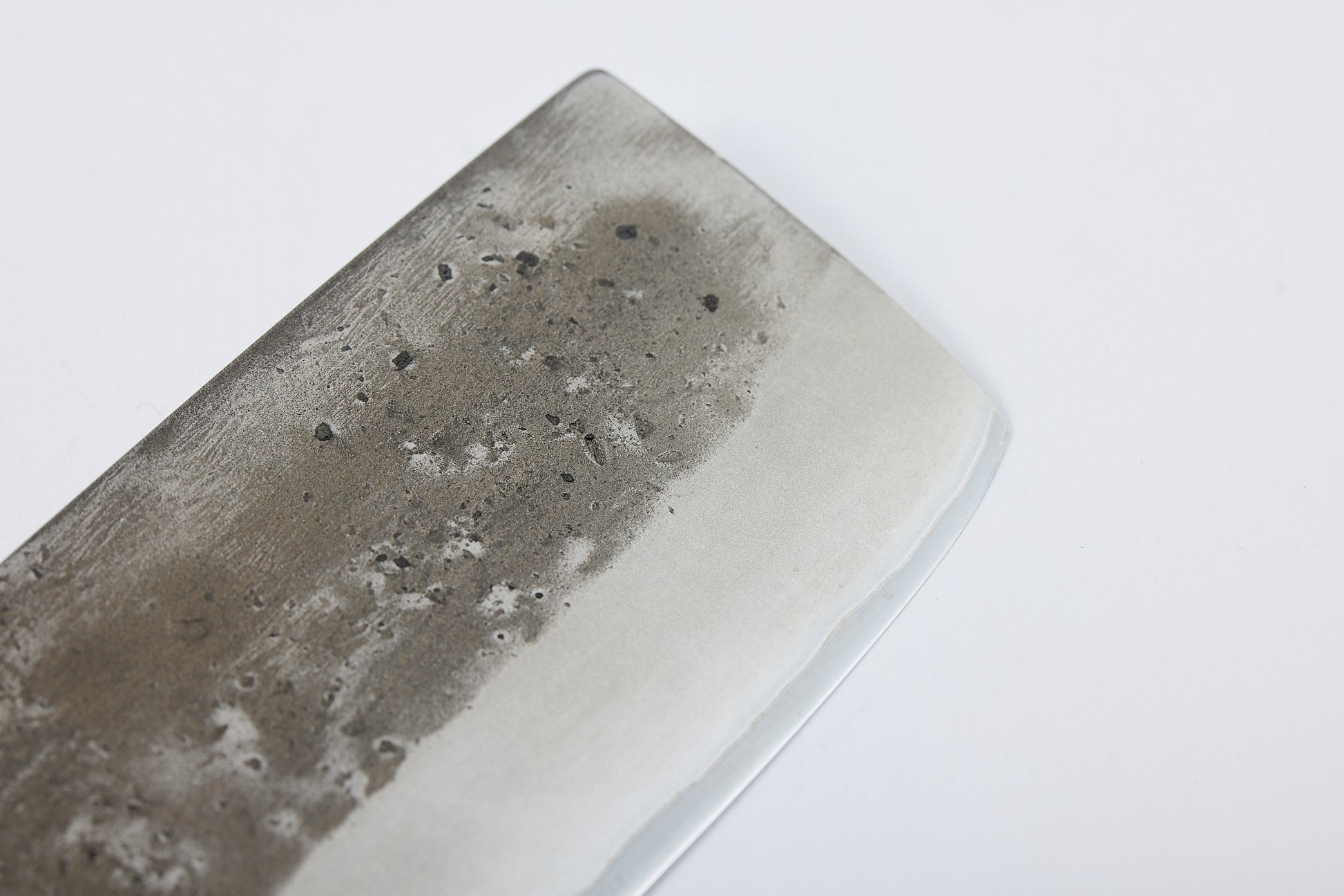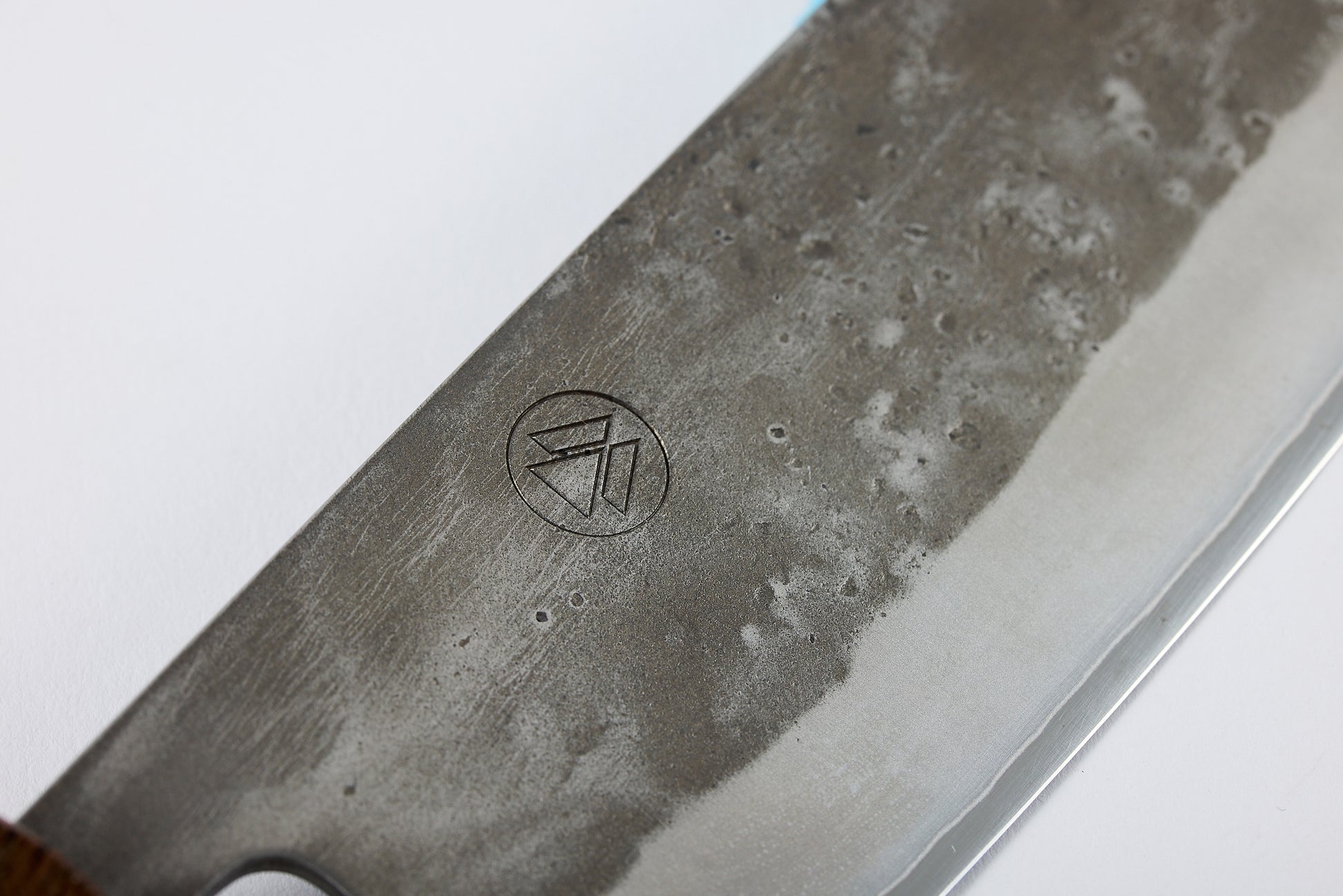 The handle of this knife has a distinctive textured surface. This is achieved through a traditional Japanese hammering technique called "Naguri-kakou." It not only provides a better grip but also adds a beautiful visual element to the knife.