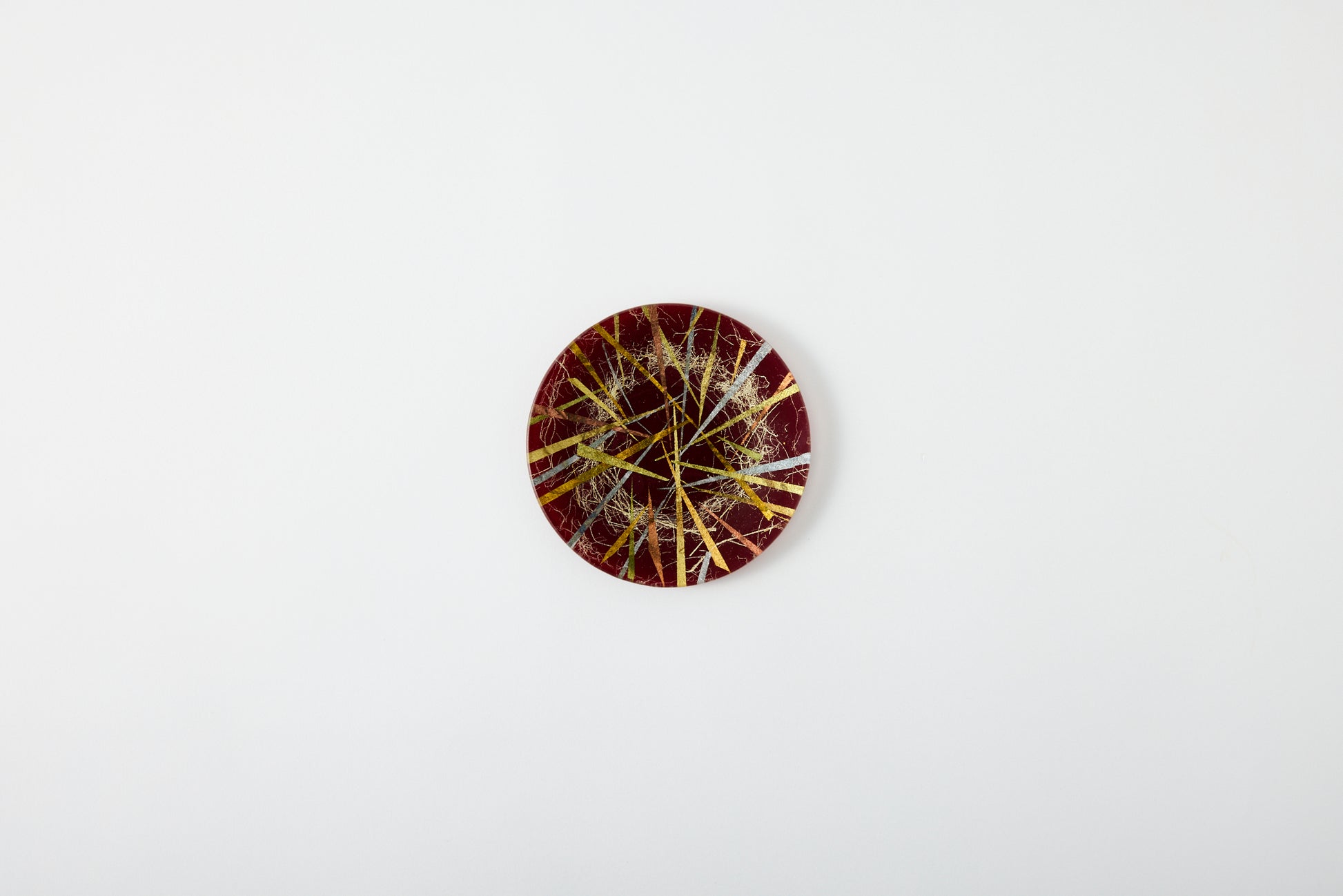 Kirihaku Glass – Burgundy with Kawari Yakihaku Ring – Round Plate