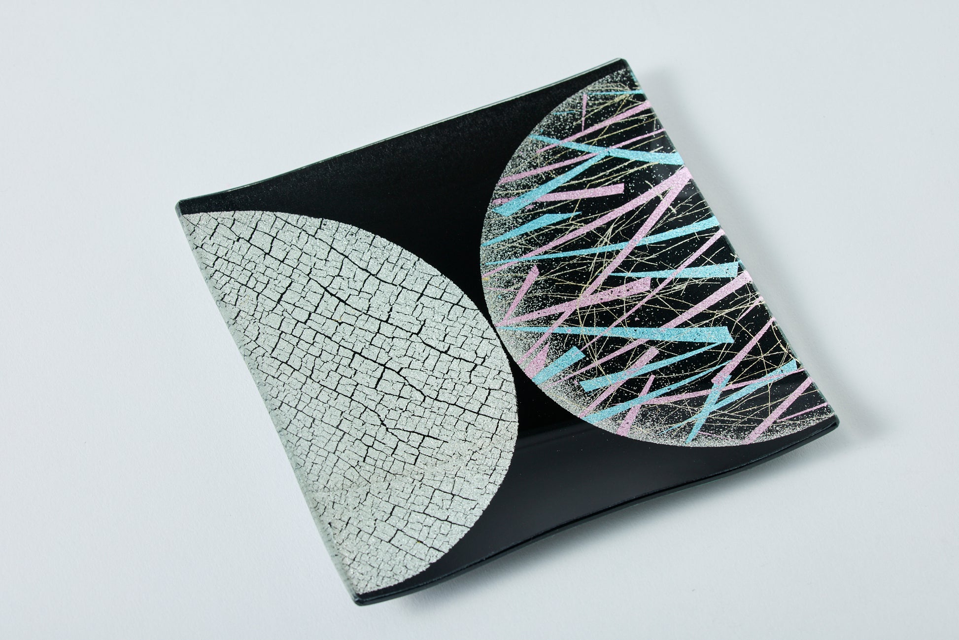 Minamo Moon – Honkin Ice Crack Kawari – Yakihaku on Black – Square Plate