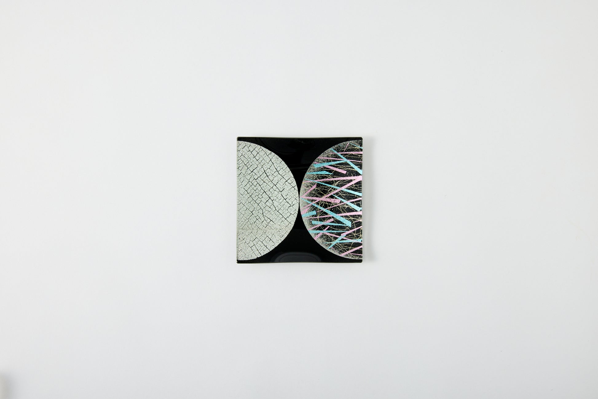 Water Surface Moon – Square Plate with Pale Pink & Pebbled Silver Foil, Burnished Gold Leaf – Black