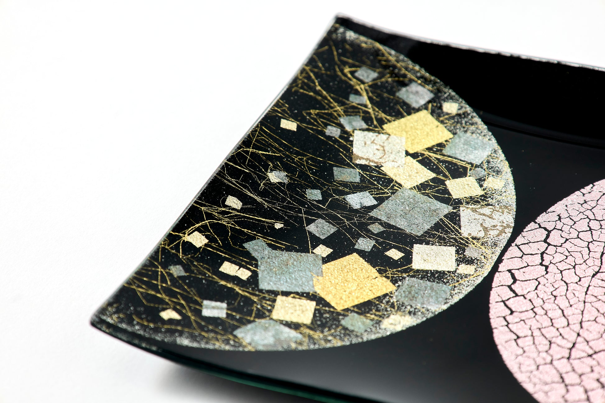 Kinsai Kogei Yamada crafts glassware using traditional kin-sai (gold leaf) techniques, blending elegance and durability. Each piece features a glass surface, an EVA resin base, and a waterproof resin coating that enhances the gold’s brilliance. More than decoration, these plates add sophistication to special dining occasions.