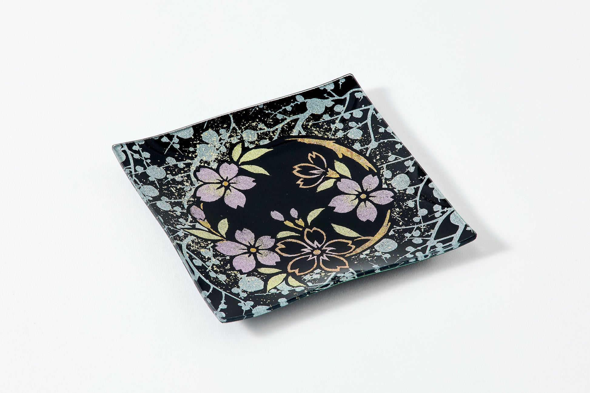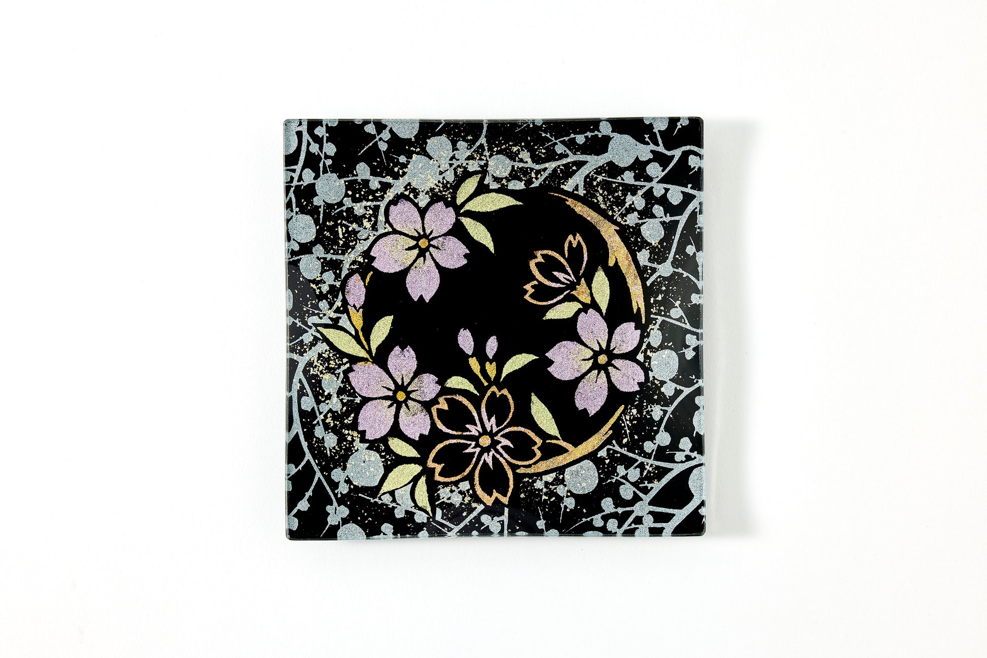Minamo Moon – Honkin Ice Crack Kawari – Yakihaku on Black – Square Plate