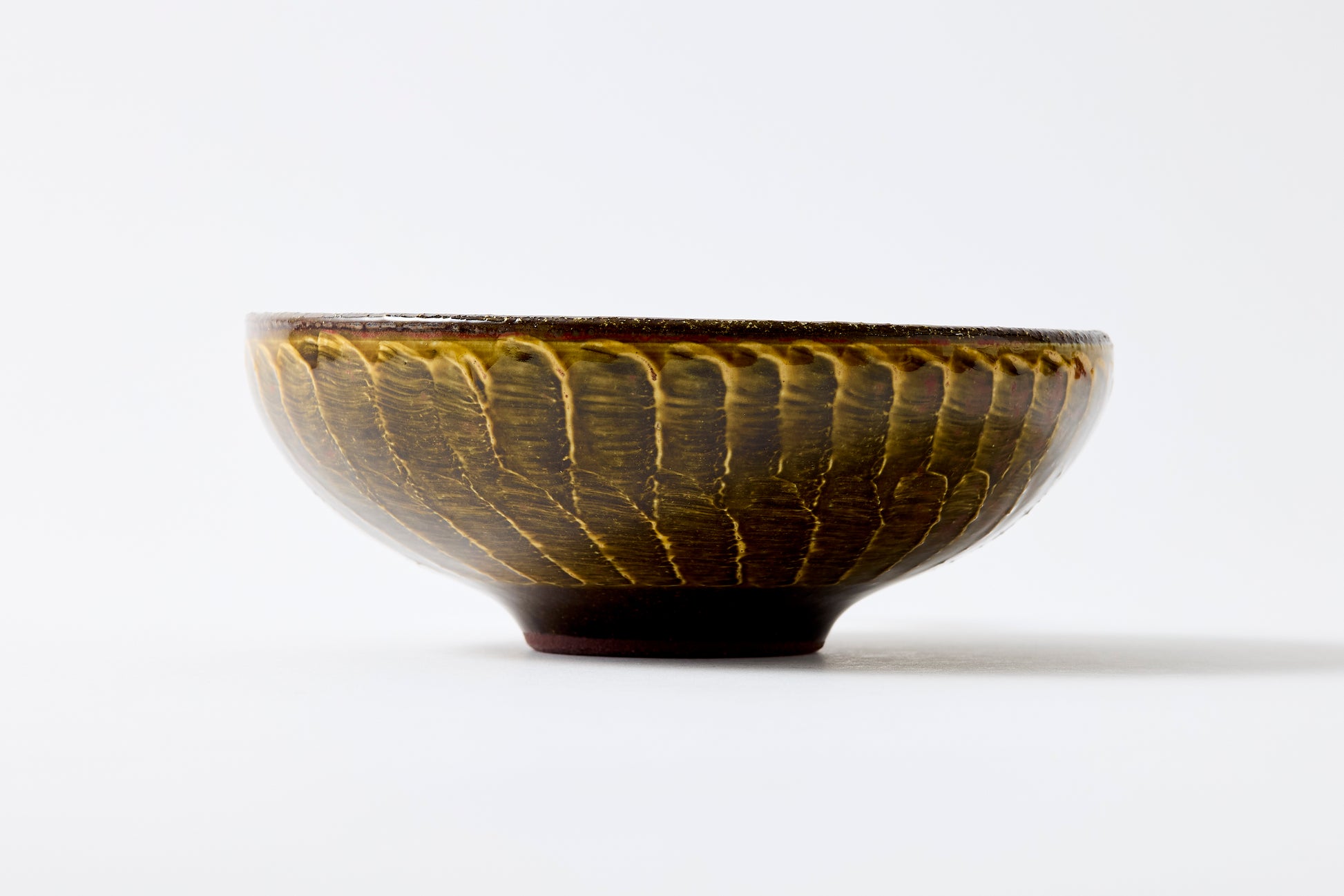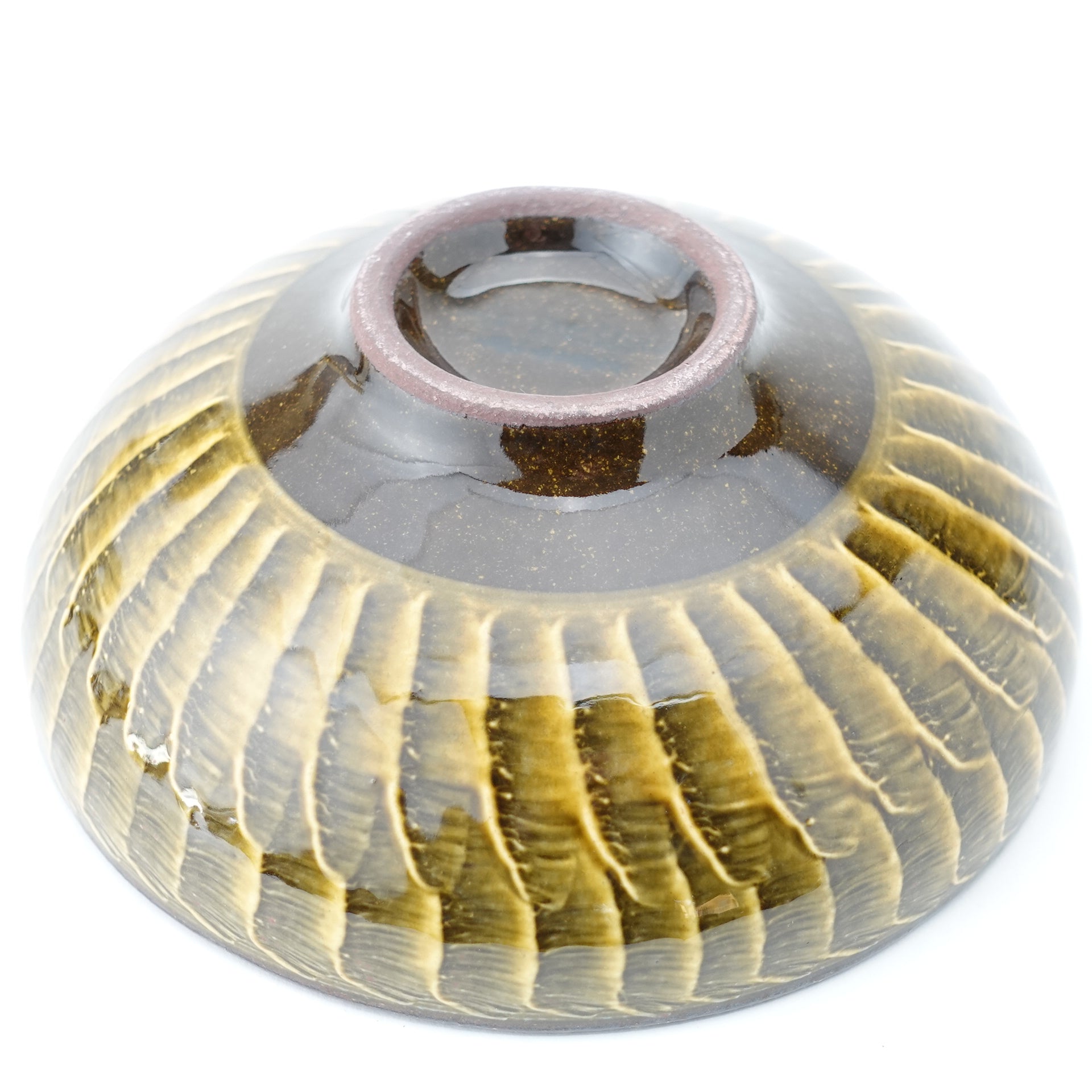 FD Amber Glaze Brush Stroke Round Flat Bowl Hasami Porcelain
