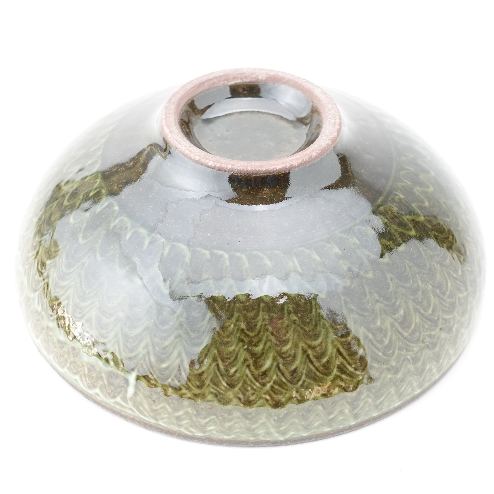FD Green Glaze Bold Double Brush Stroke Round Flat Bowl Hasami Porcelain