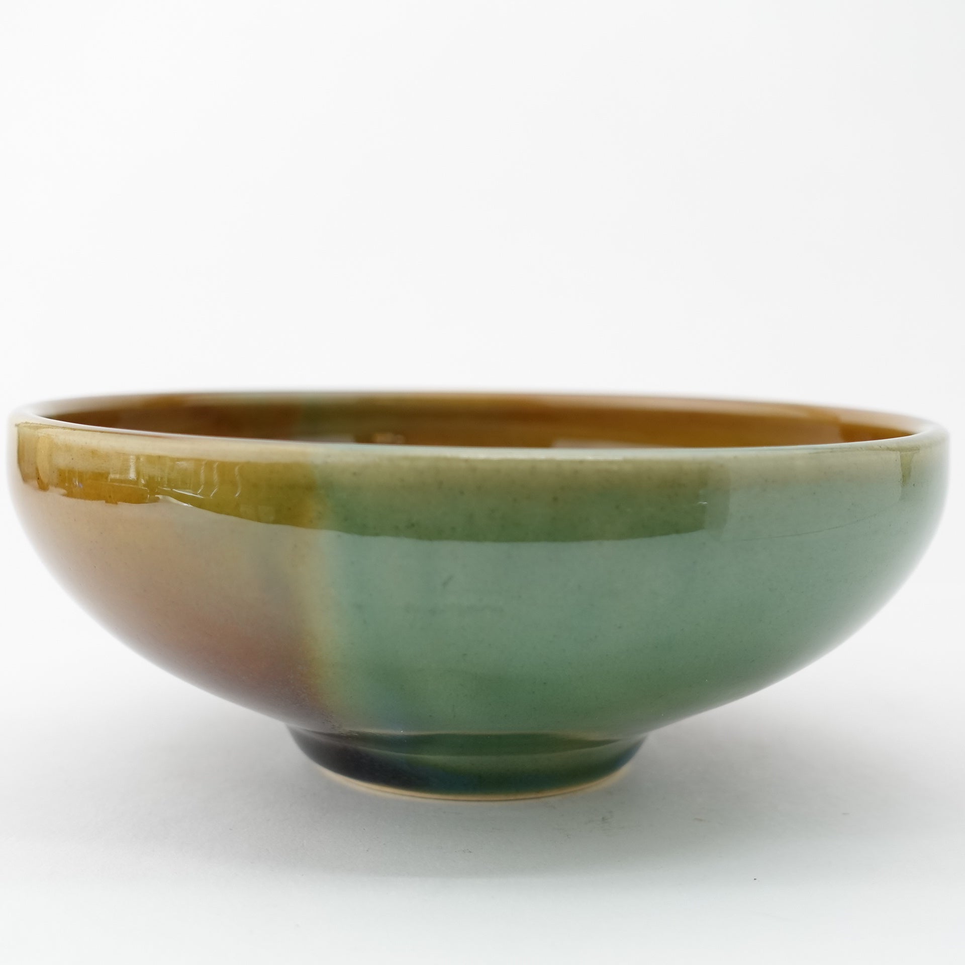 FD Amber Oribe Split Glaze Round Flat Bowl Hasami Porcelain