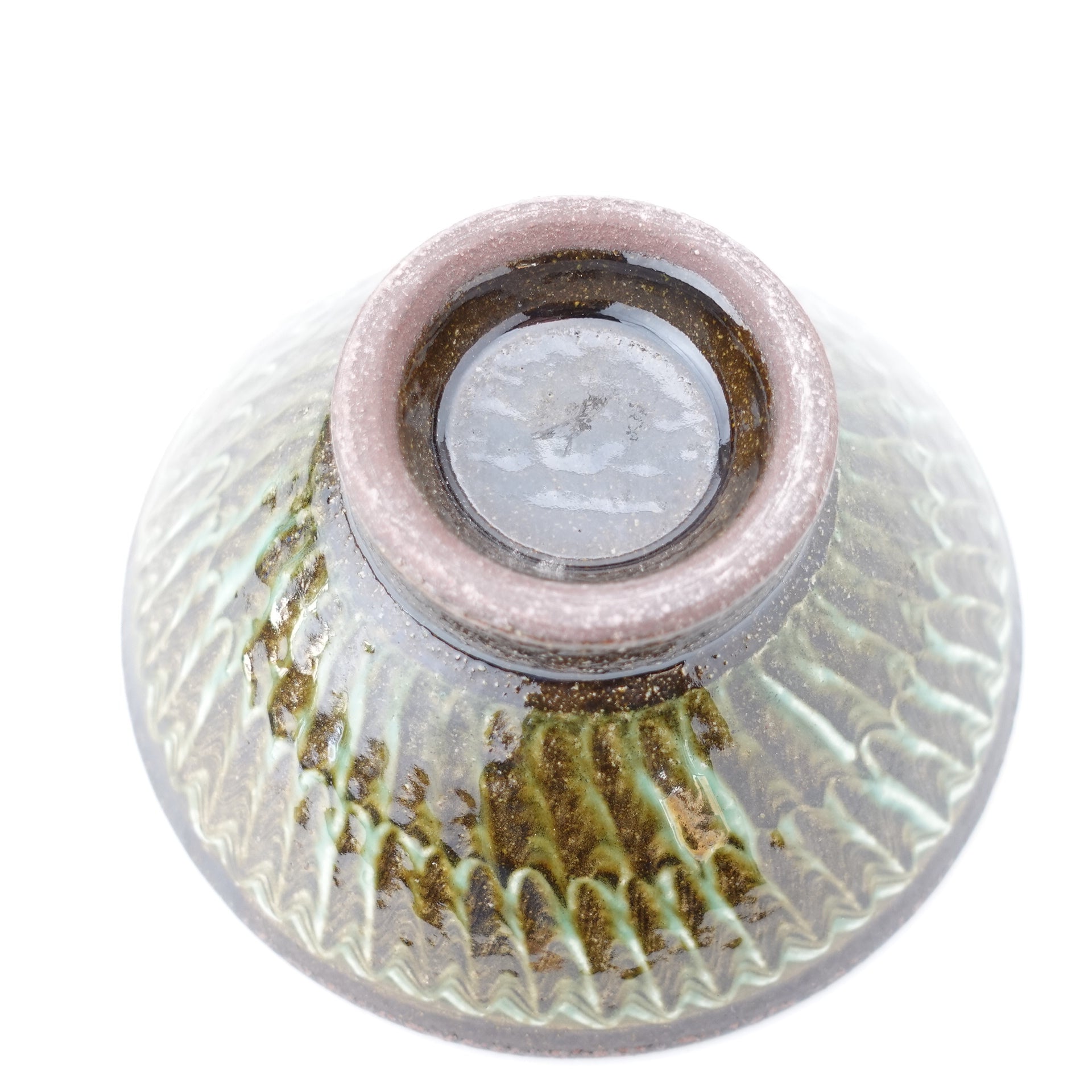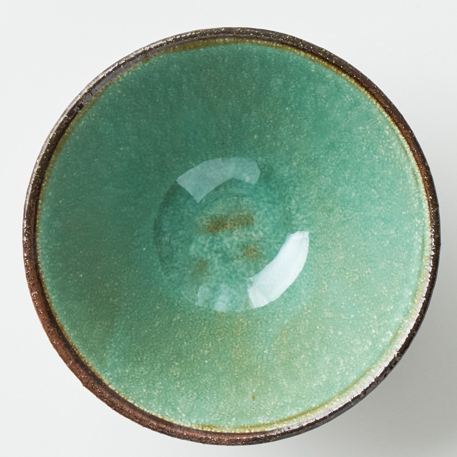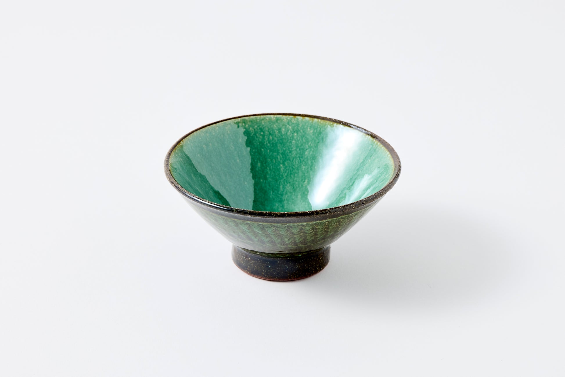 FD Green Glaze Bold Double Brush Stroke Rice Bowl Hasami Porcelain