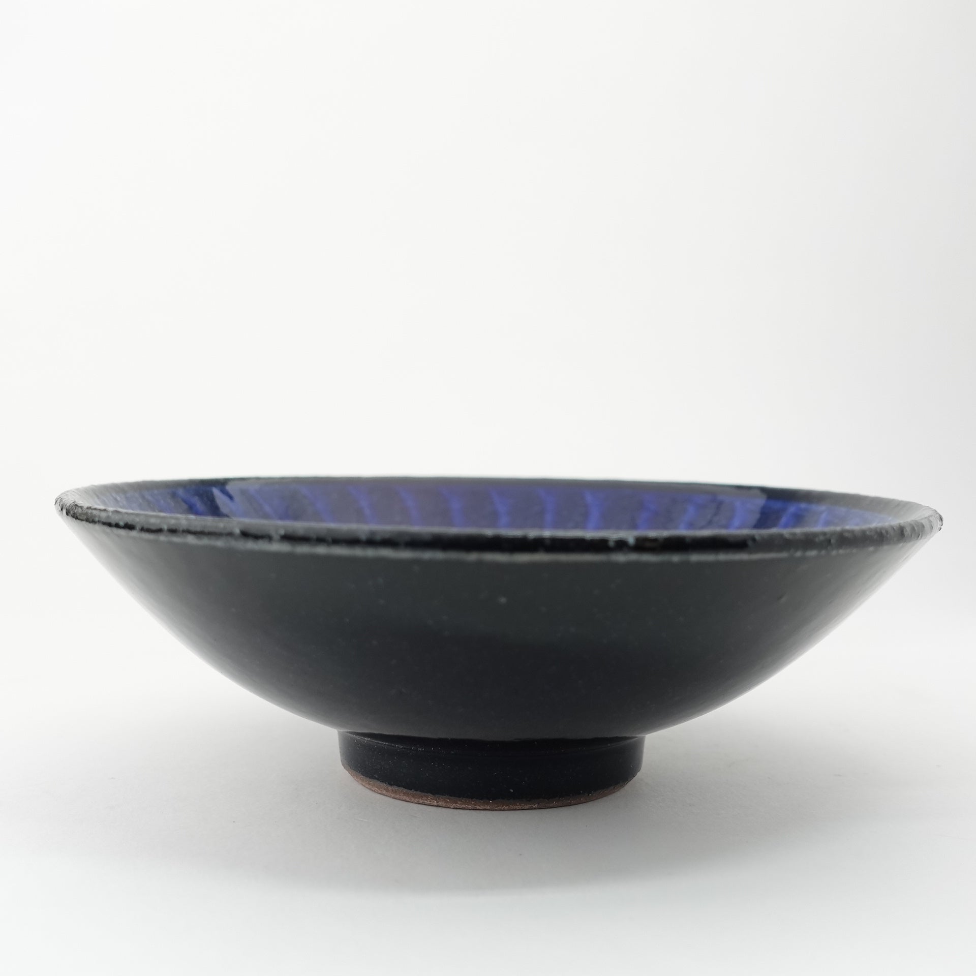 FD Blue Glaze Brush Stroke Mehagi 5.5-inch Flat Bowl Hasami Porcelain