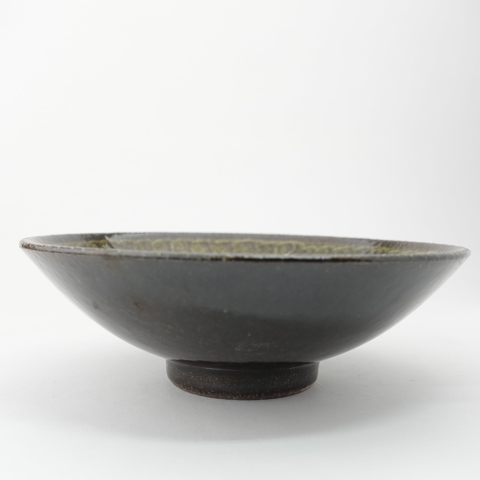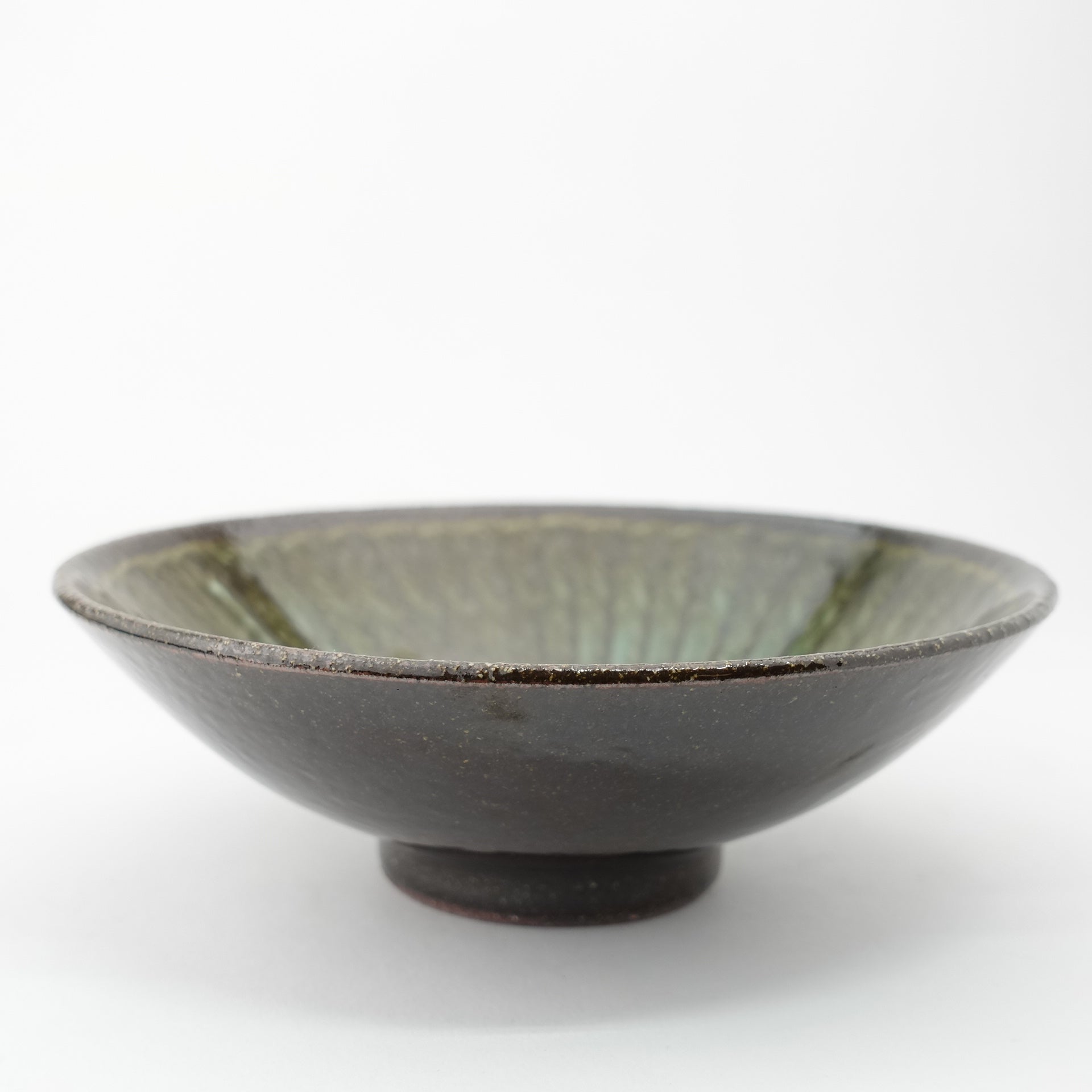 FD Green Glaze Bold Double Brush Stroke Round Flat Bowl Hasami Porcelain