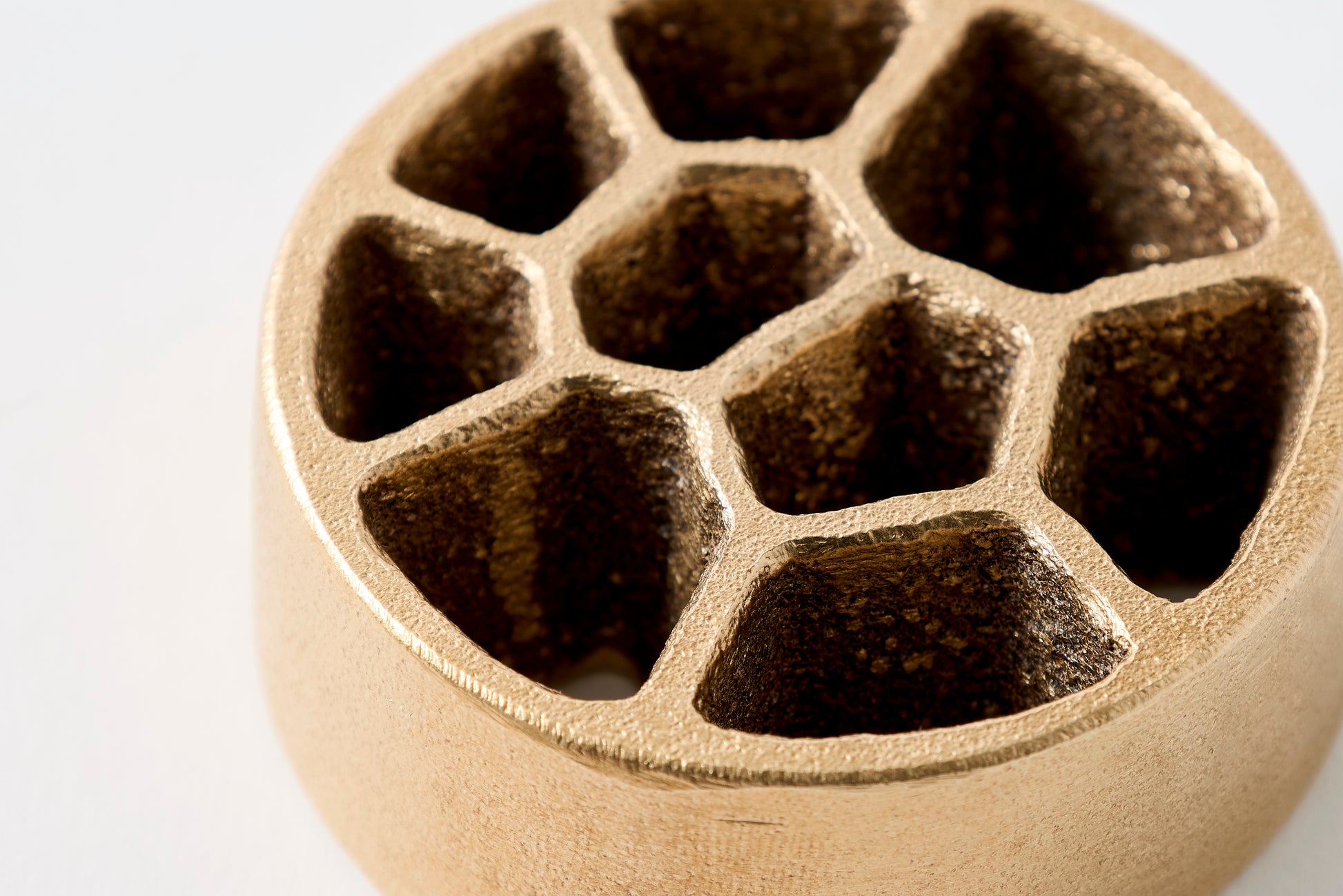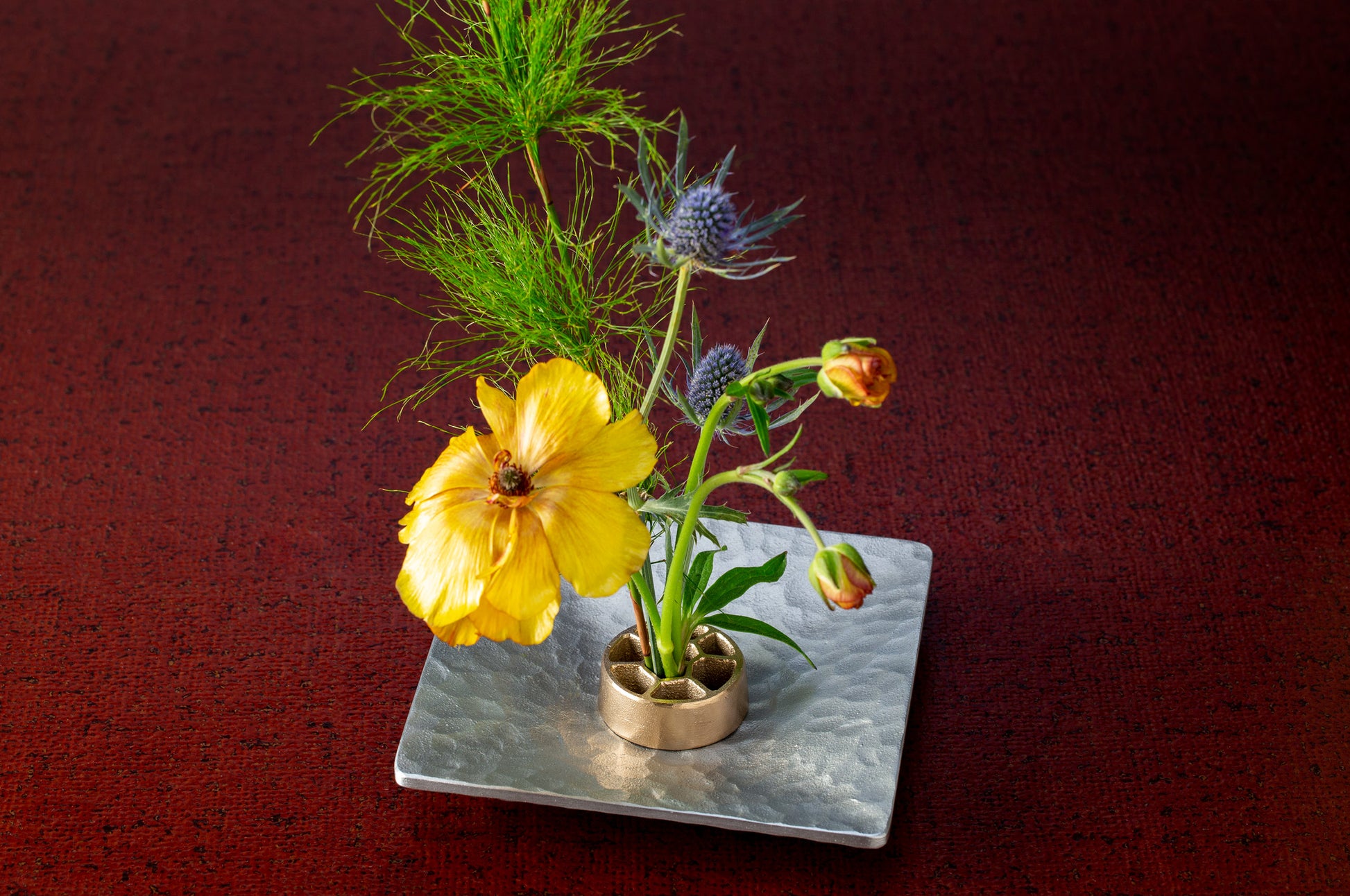 Founded in 1714, a long-established casting manufacturer that served the Maeda clan, feudal lords of the Kaga Domain, offers a needleless decorative flower frog for enjoying "flowers" more casually and intimately through traditional sand mold casting. Unlike traditional flower frog with needles, this unique design allows flowers to be placed in recessed areas. It stands as an object of art itself, presenting a modern look with glass containers or a classic feel with ceramic vessels. You can adapt its impression to match your room's atmosphere. Gentle on both people and flowers, its copper ion antibacterial effect keeps water clean and extends the life of flowers by 167%.