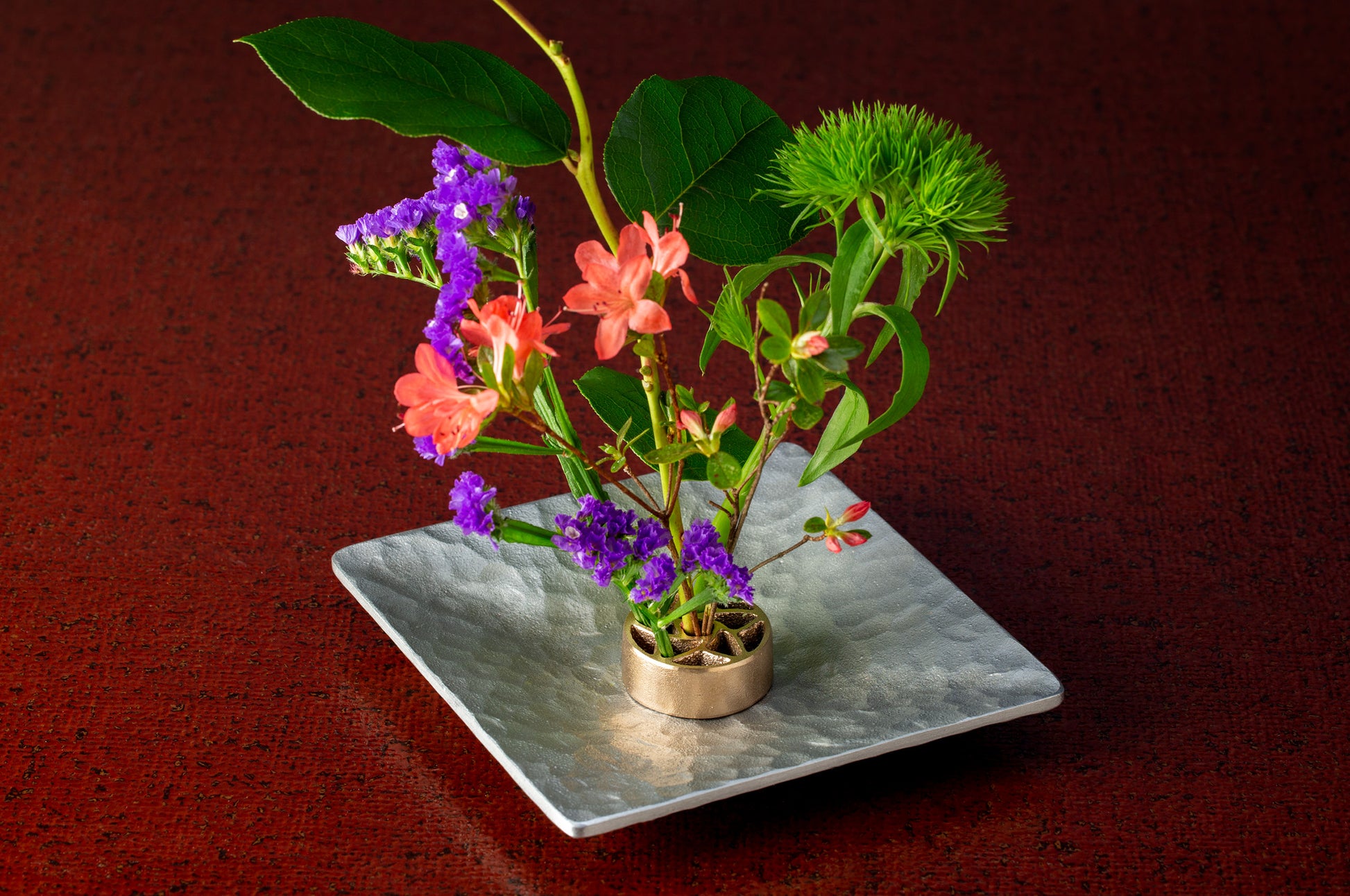 Founded in 1714, a long-established casting manufacturer that served the Maeda clan, feudal lords of the Kaga Domain, offers a needleless decorative flower frog for enjoying "flowers" more casually and intimately through traditional sand mold casting. Unlike traditional flower frog with needles, this unique design allows flowers to be placed in recessed areas. It stands as an object of art itself, presenting a modern look with glass containers or a classic feel with ceramic vessels. You can adapt its impression to match your room's atmosphere. Gentle on both people and flowers, its copper ion antibacterial effect keeps water clean and extends the life of flowers by 167%.