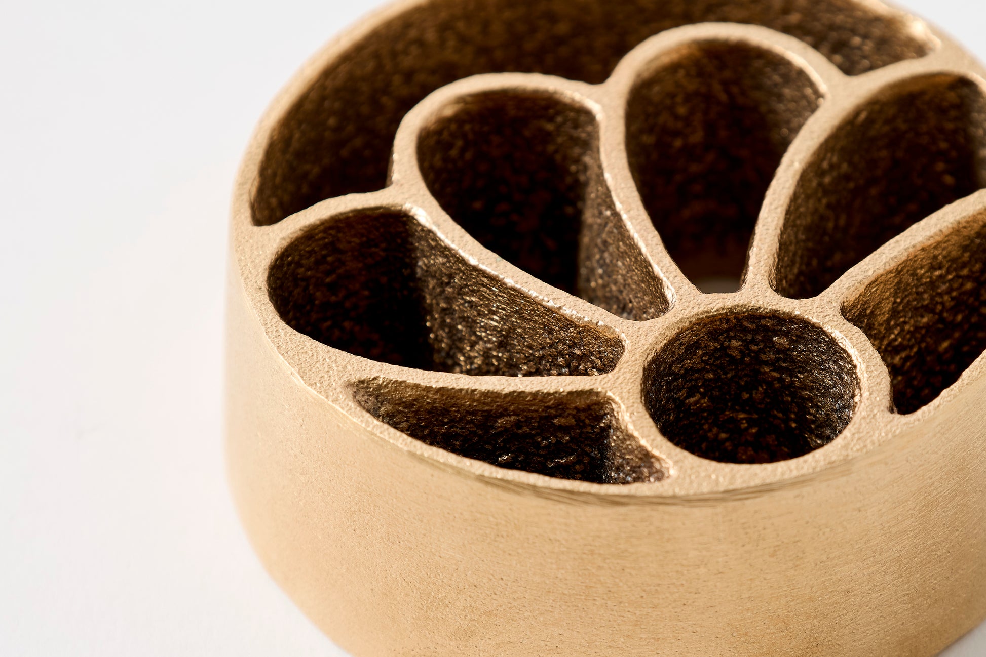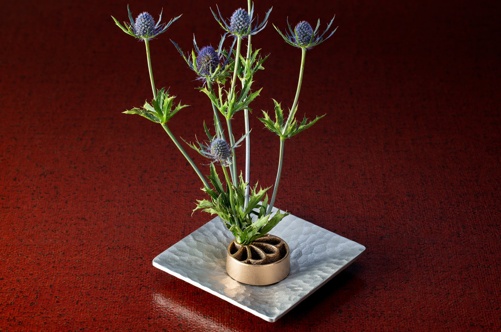 Founded in 1714, a long-established casting manufacturer that served the Maeda clan, feudal lords of the Kaga Domain, offers a needleless decorative flower frog for enjoying "flowers" more casually and intimately through traditional sand mold casting. Unlike traditional flower frog with needles, this unique design allows flowers to be placed in recessed areas. It stands as an object of art itself, presenting a modern look with glass containers or a classic feel with ceramic vessels. You can adapt its impression to match your room's atmosphere. Gentle on both people and flowers, its copper ion antibacterial effect keeps water clean and extends the life of flowers by 167%.