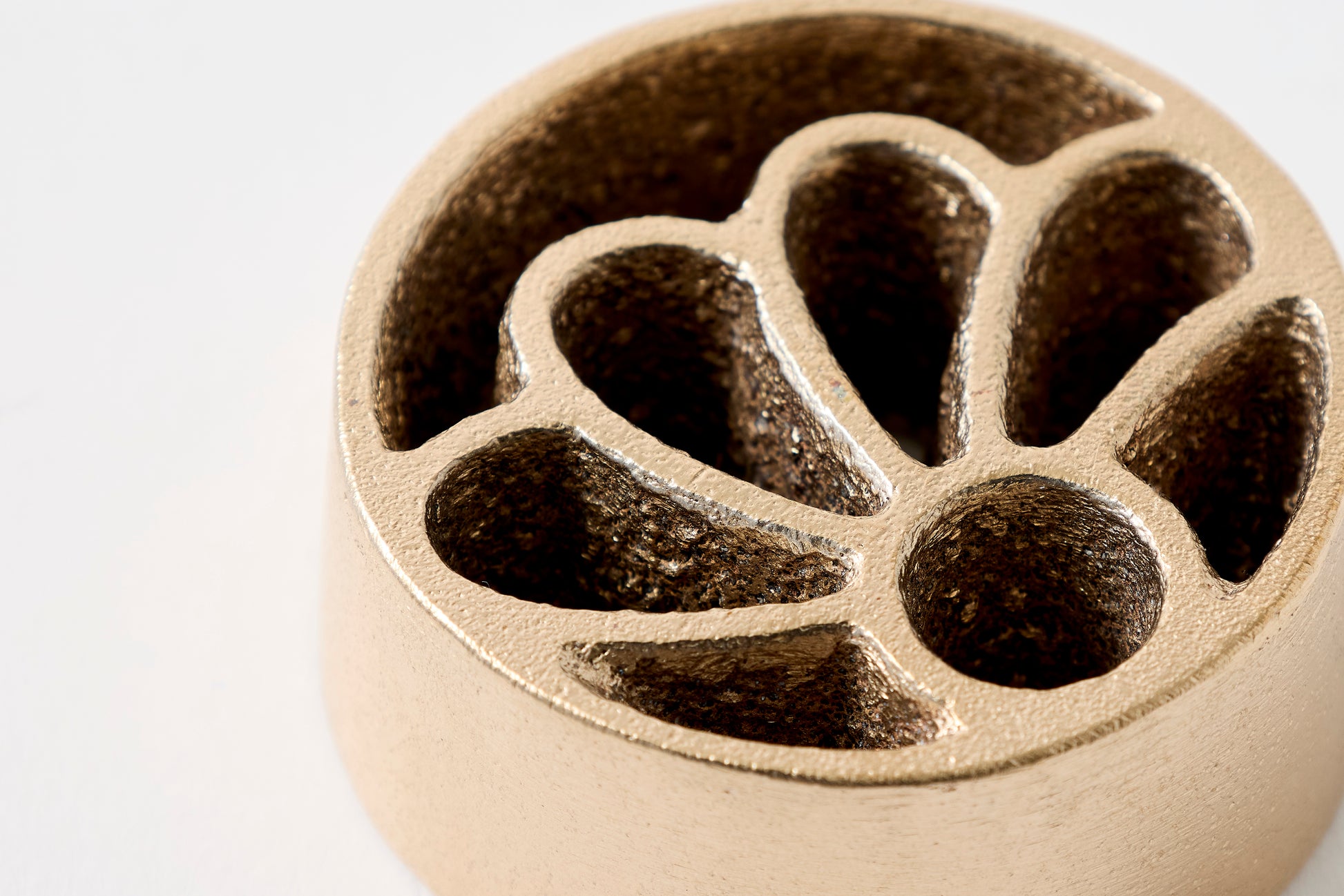 Founded in 1714, a long-established casting manufacturer that served the Maeda clan, feudal lords of the Kaga Domain, offers a needleless decorative flower frog for enjoying "flowers" more casually and intimately through traditional sand mold casting. Unlike traditional flower frog with needles, this unique design allows flowers to be placed in recessed areas. It stands as an object of art itself, presenting a modern look with glass containers or a classic feel with ceramic vessels. You can adapt its impression to match your room's atmosphere. Gentle on both people and flowers, its copper ion antibacterial effect keeps water clean and extends the life of flowers by 167%.