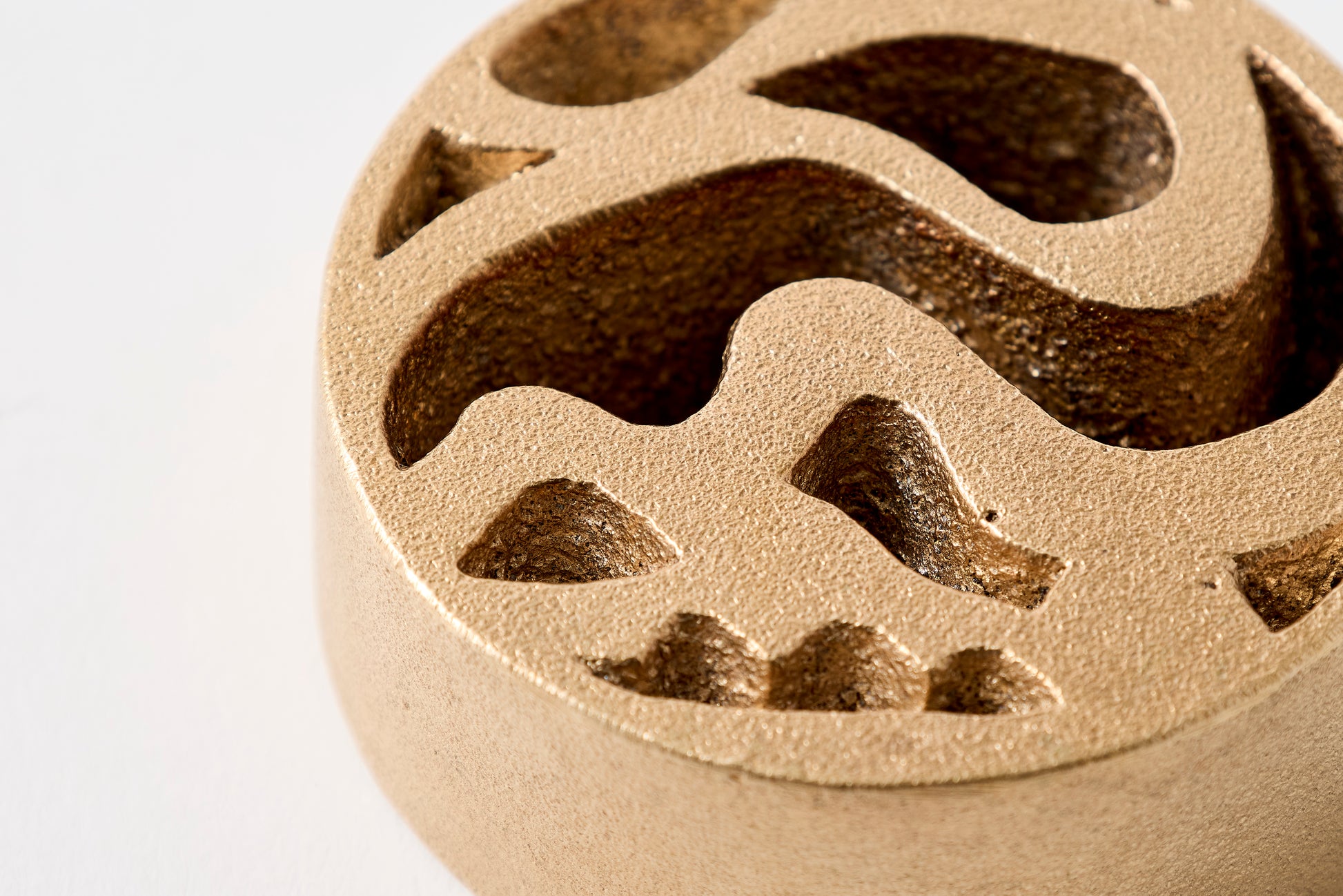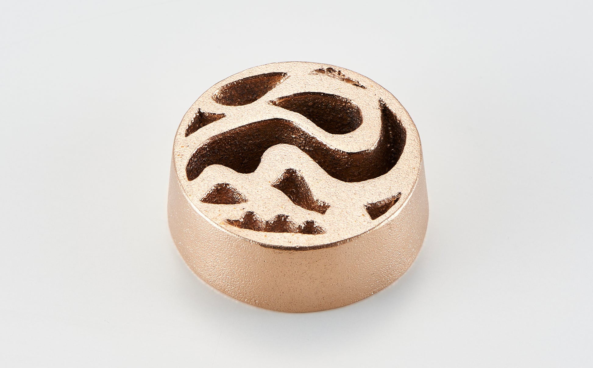 Founded in 1714, a long-established casting manufacturer that served the Maeda clan, feudal lords of the Kaga Domain, offers a needleless decorative flower frog for enjoying "flowers" more casually and intimately through traditional sand mold casting. Unlike traditional flower frog with needles, this unique design allows flowers to be placed in recessed areas. It stands as an object of art itself, presenting a modern look with glass containers or a classic feel with ceramic vessels. You can adapt its impression to match your room's atmosphere. Gentle on both people and flowers, its copper ion antibacterial effect keeps water clean and extends the life of flowers by 167%. (Japan house London limited edition)