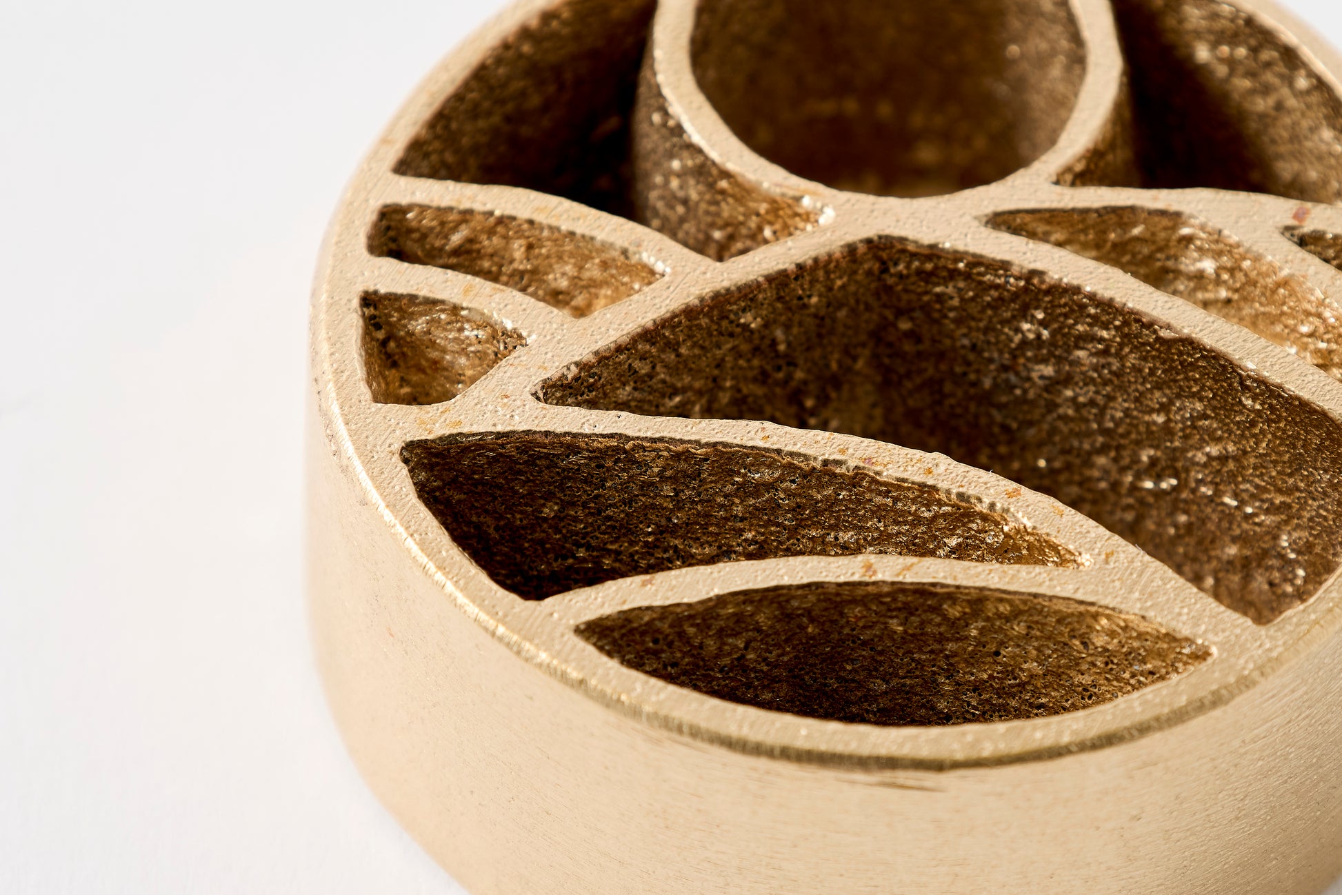Founded in 1714, a long-established casting manufacturer that served the Maeda clan, feudal lords of the Kaga Domain, offers a needleless decorative flower frog for enjoying "flowers" more casually and intimately through traditional sand mold casting. Unlike traditional flower frog with needles, this unique design allows flowers to be placed in recessed areas. It stands as an object of art itself, presenting a modern look with glass containers or a classic feel with ceramic vessels. You can adapt its impression to match your room's atmosphere. Gentle on both people and flowers, its copper ion antibacterial effect keeps water clean and extends the life of flowers by 167%. (Japan house London limited edition)