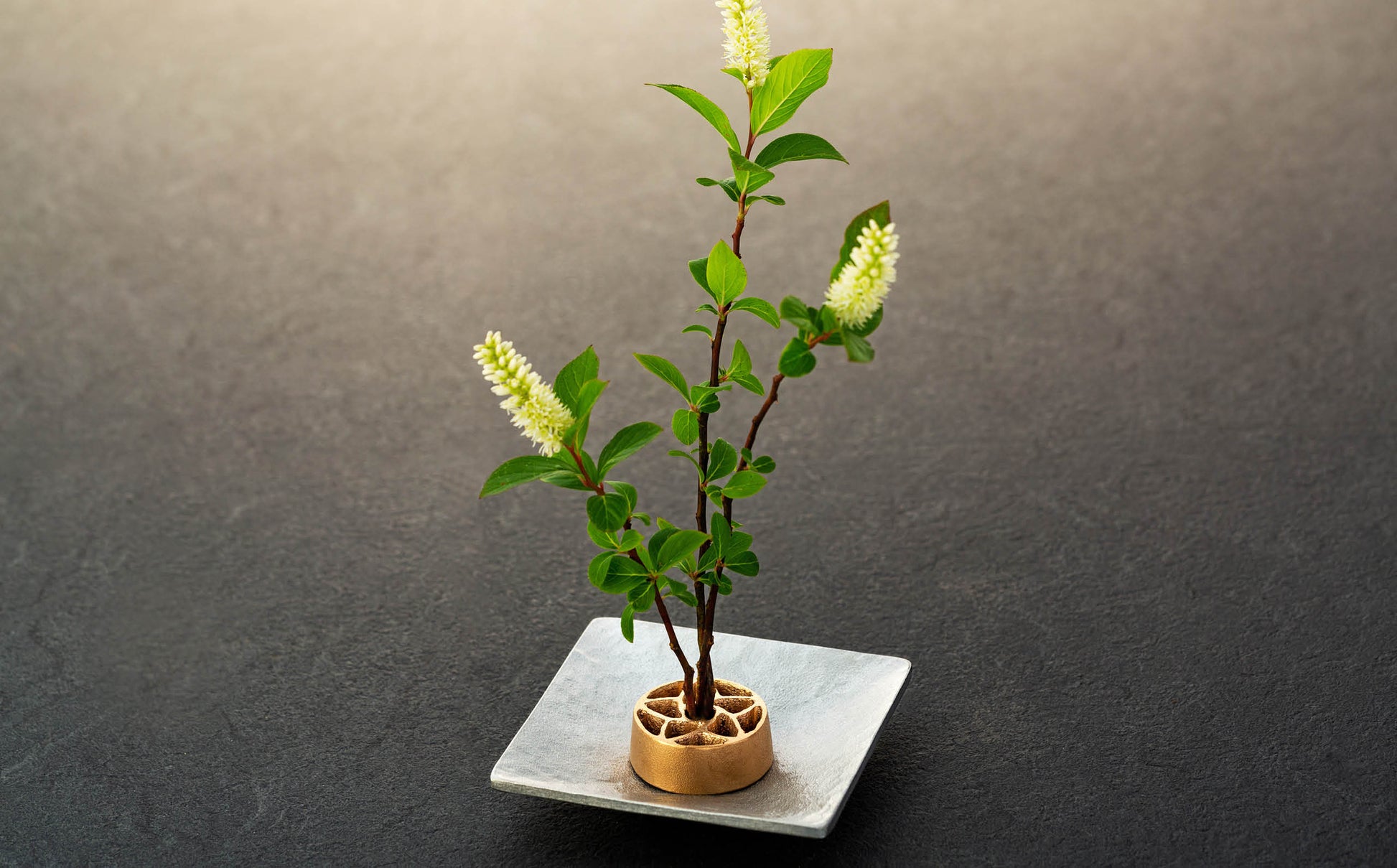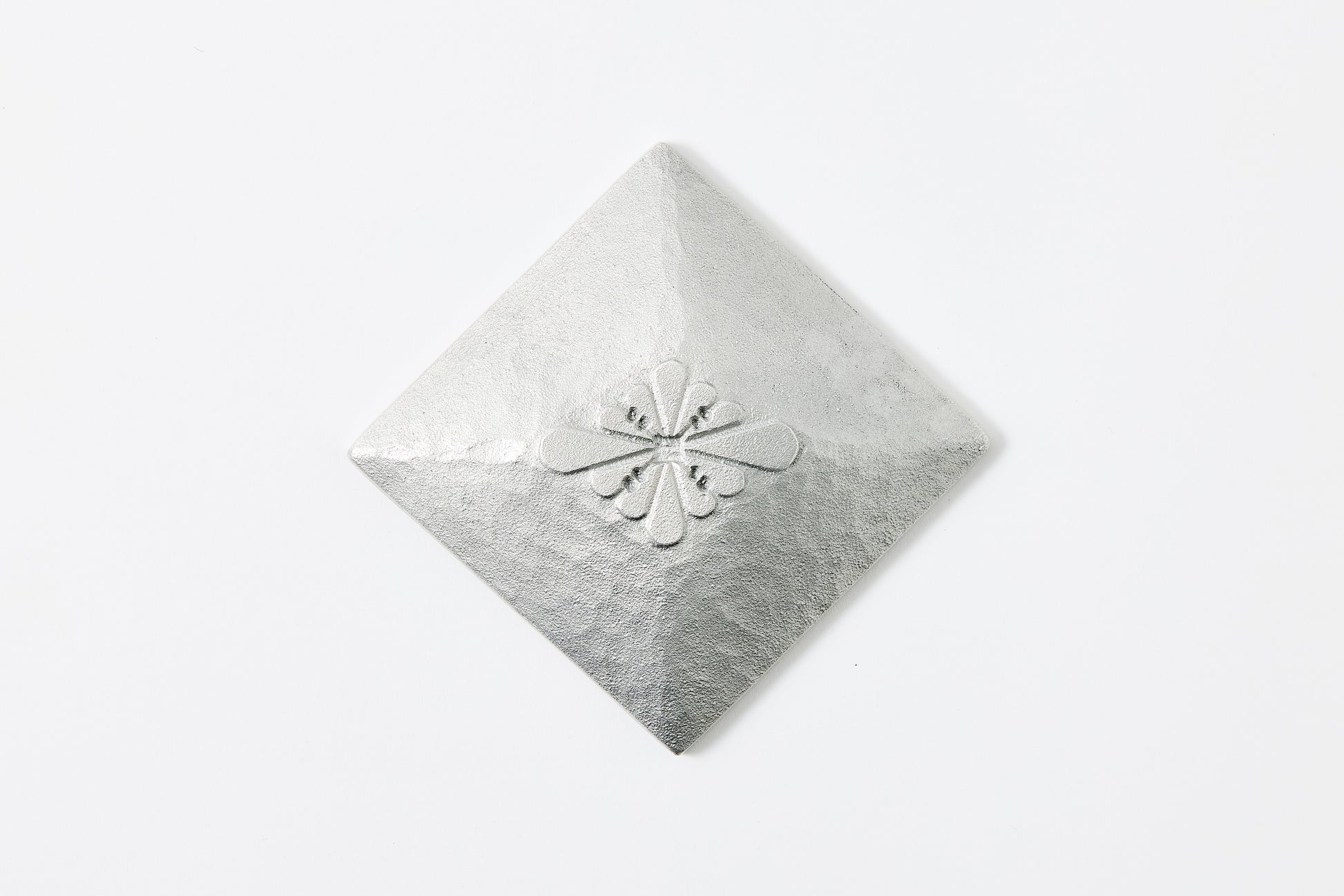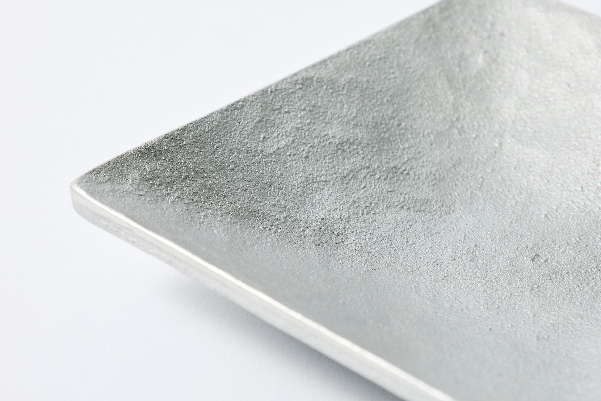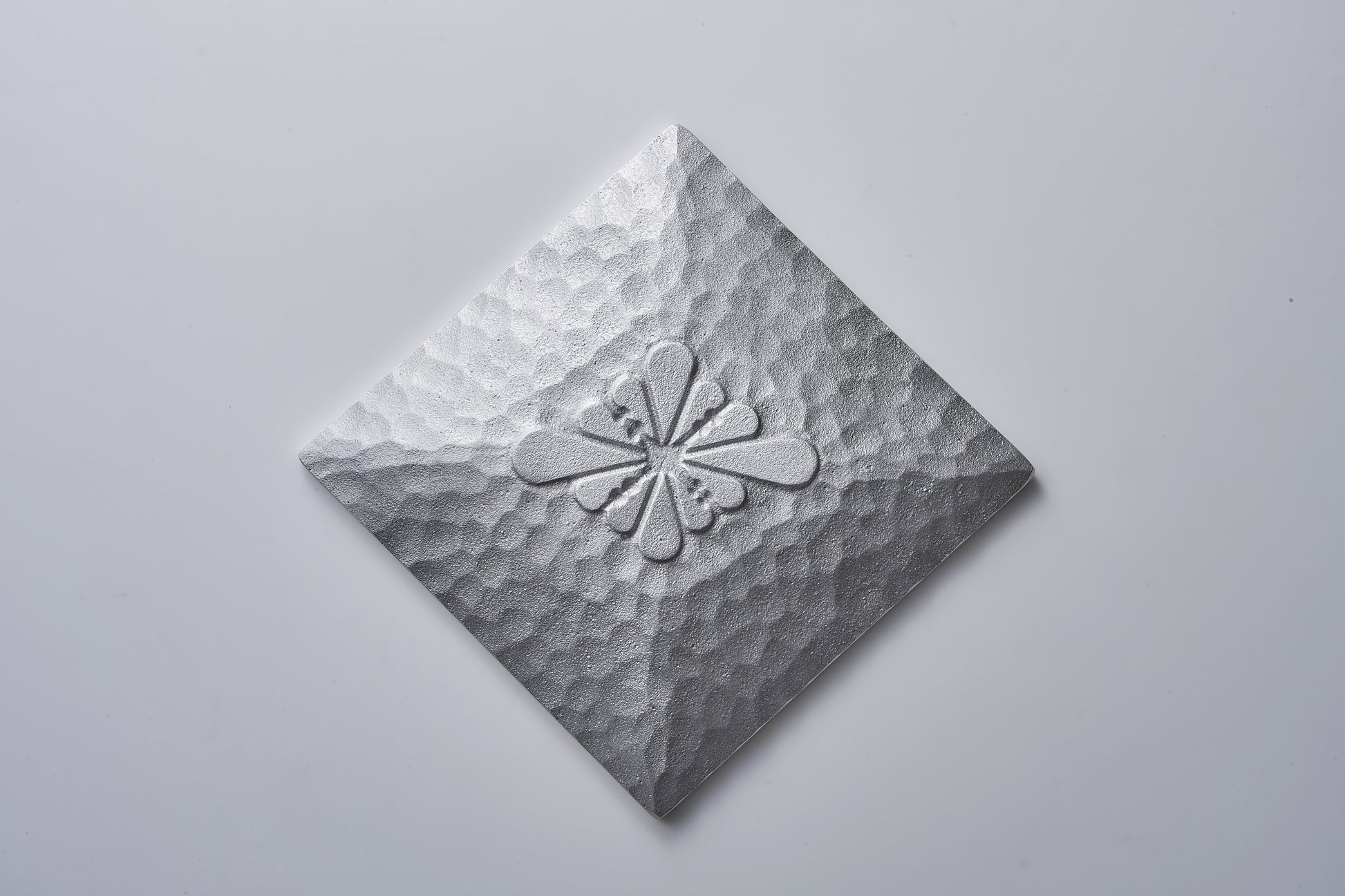 Founded in 1714, a long-established casting manufacturer that served the Maeda clan, feudal lords of the Kaga Domain, presents an aluminum cast sweets plate made using traditional sand mold casting, designed to keep your treats "cool." The surface features blooming flowers, uneven textures, and flat areas, offering a variety of expressions. Skilled wood mold artisans hand-carve modern landscapes, creating beautiful shadows and highlights. Aluminum alloy, with its excellent thermal conductivity, works effectively when chilled in the refrigerator, keeping desserts or appetizers at their ideal temperature. Beyond its functionality, its luxurious and modern texture enhances the elegance of your table. This product is made through a sustainable manufacturing process, refining and casting discarded aluminum printing plates from local newspapers and aluminum cans from Hyatt Centric Kanazawa.