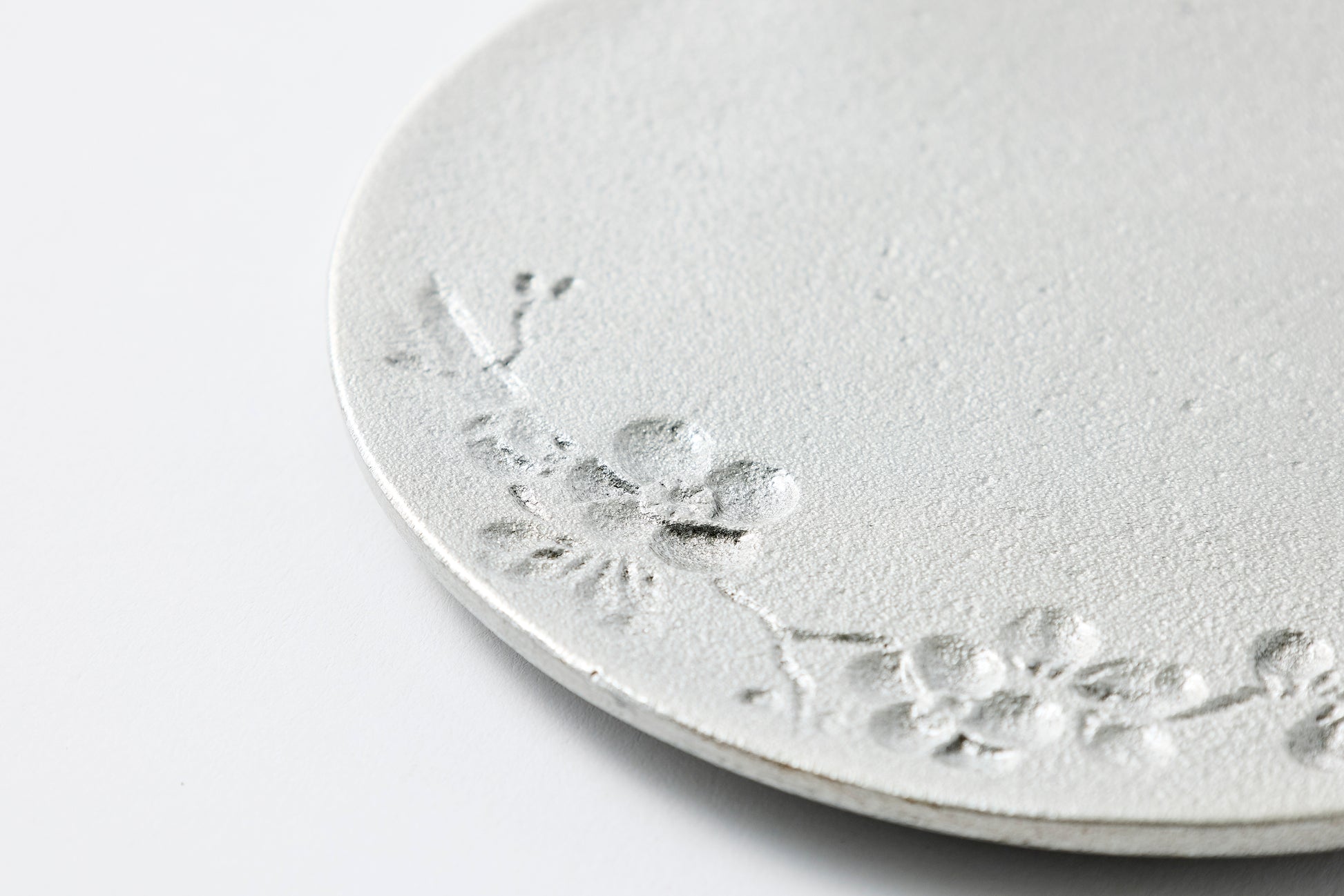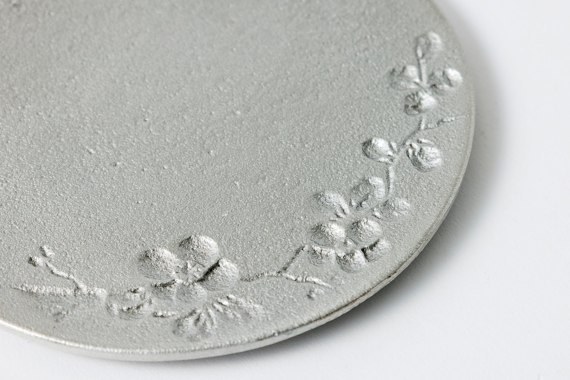 Founded in 1714, a long-established casting manufacturer that served the Maeda clan, feudal lords of the Kaga Domain, presents an aluminum cast sweets plate made using traditional sand mold casting, designed to keep your treats "cool." The surface features blooming flowers, uneven textures, and flat areas, offering a variety of expressions. Skilled wood mold artisans hand-carve modern landscapes, creating beautiful shadows and highlights. Aluminum alloy, with its excellent thermal conductivity, works effectively when chilled in the refrigerator, keeping desserts or appetizers at their ideal temperature. Beyond its functionality, its luxurious and modern texture enhances the elegance of your table. This product is made through a sustainable manufacturing process, refining and casting discarded aluminum printing plates from local newspapers and aluminum cans from Hyatt Centric Kanazawa.