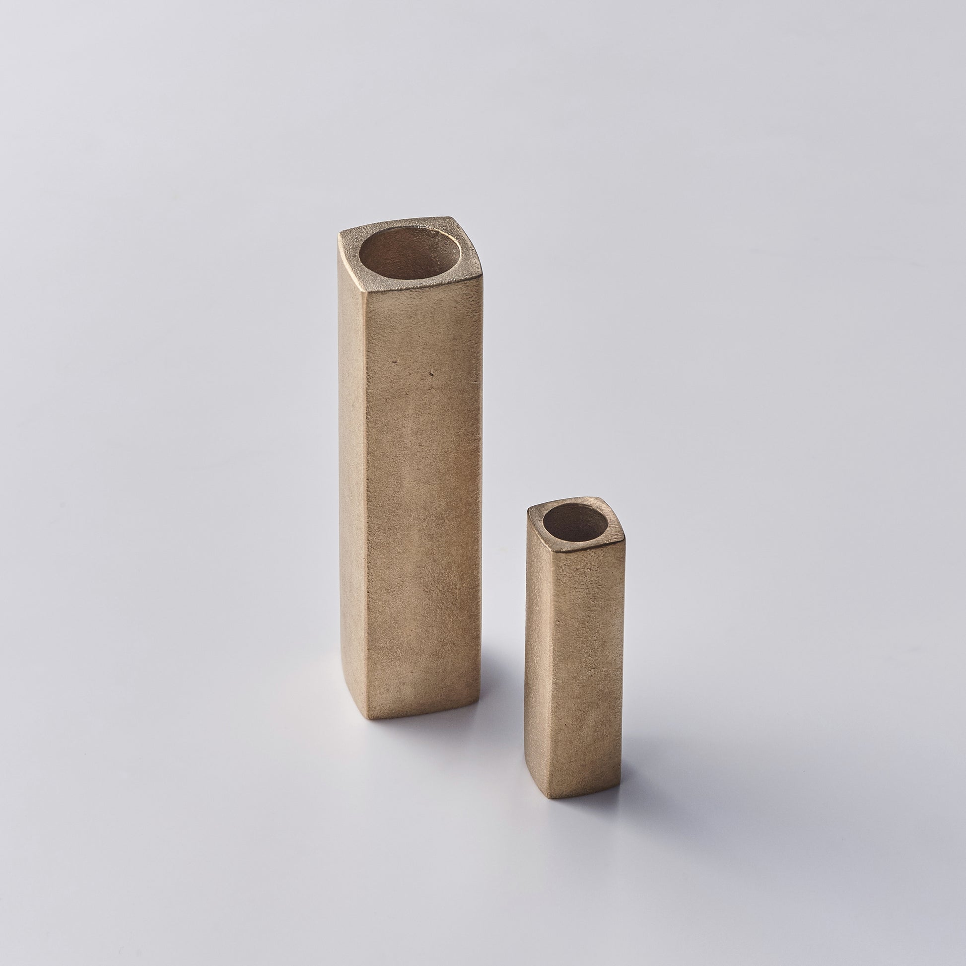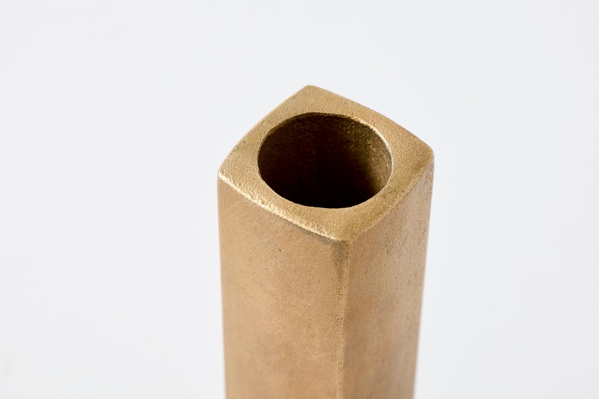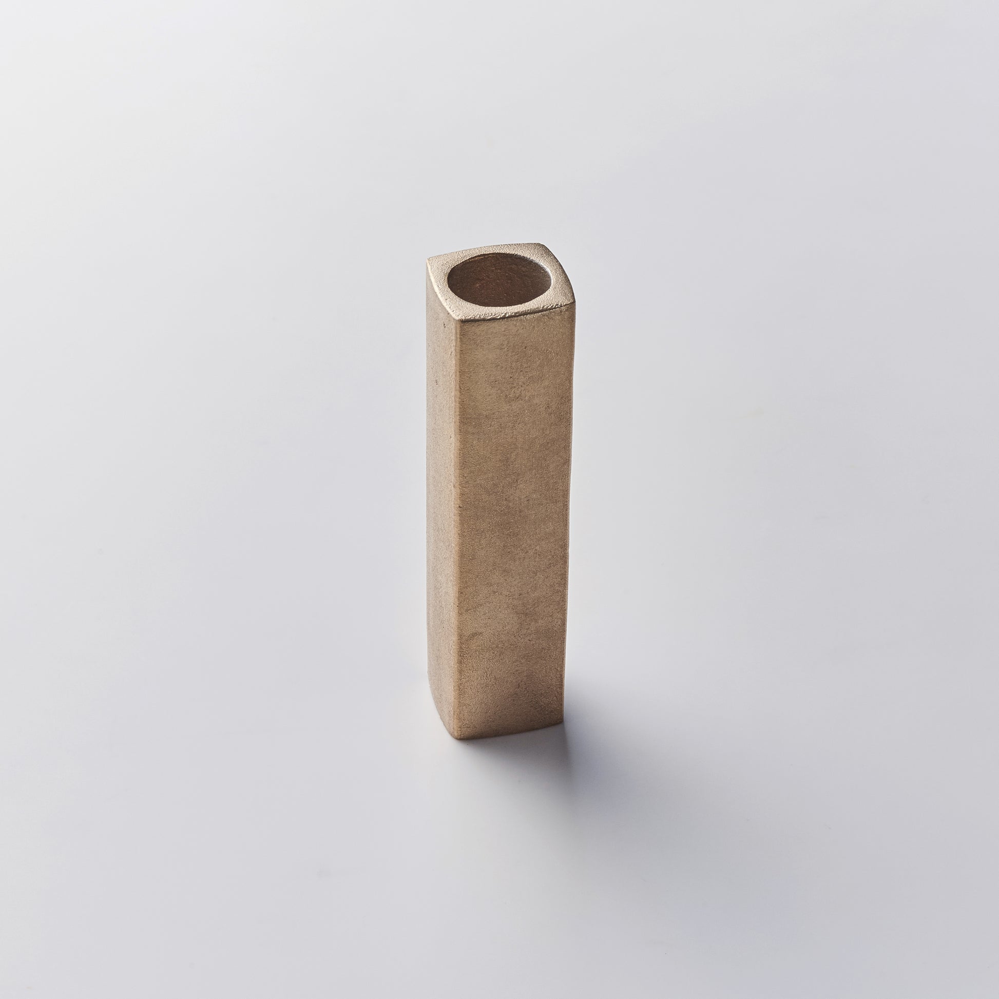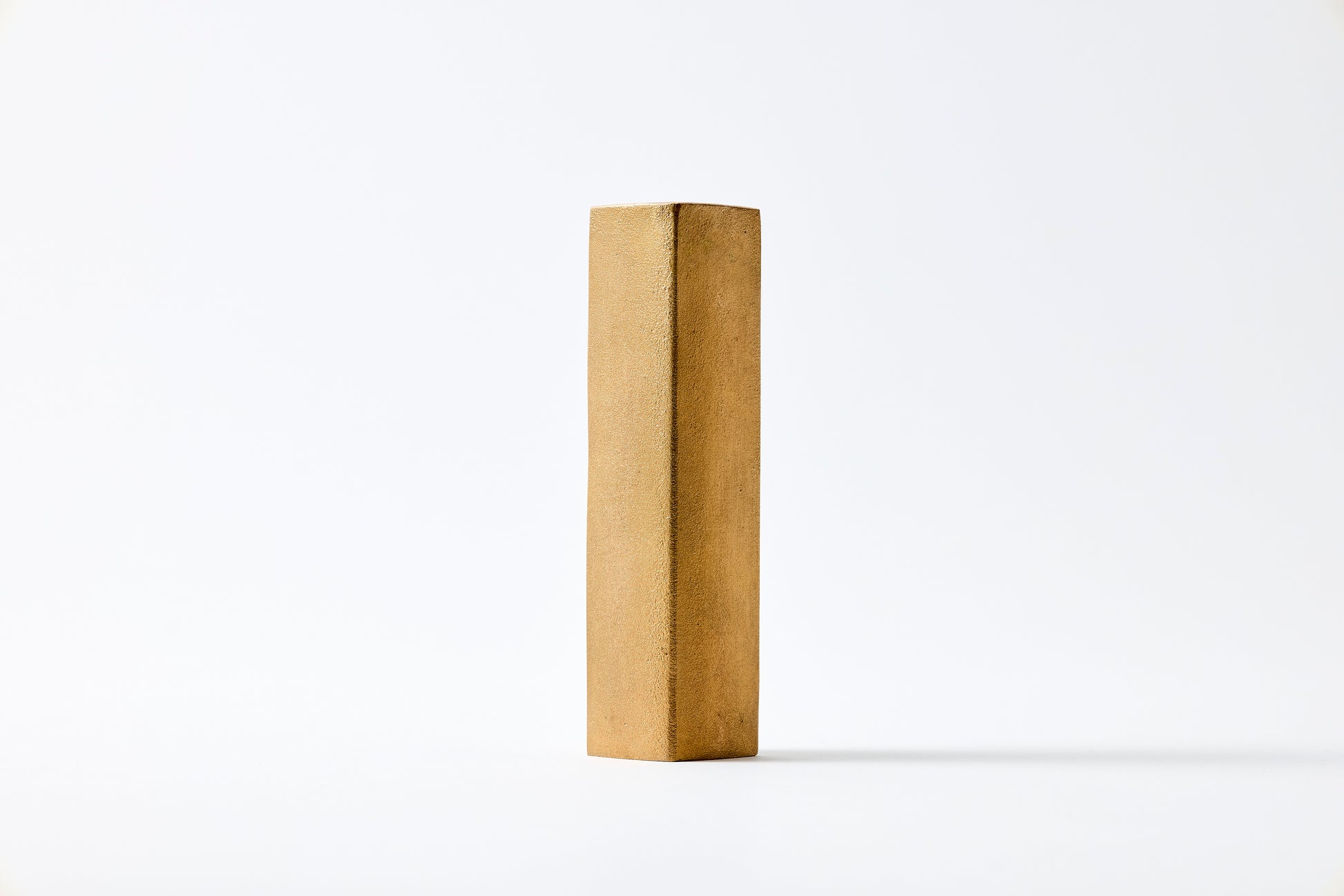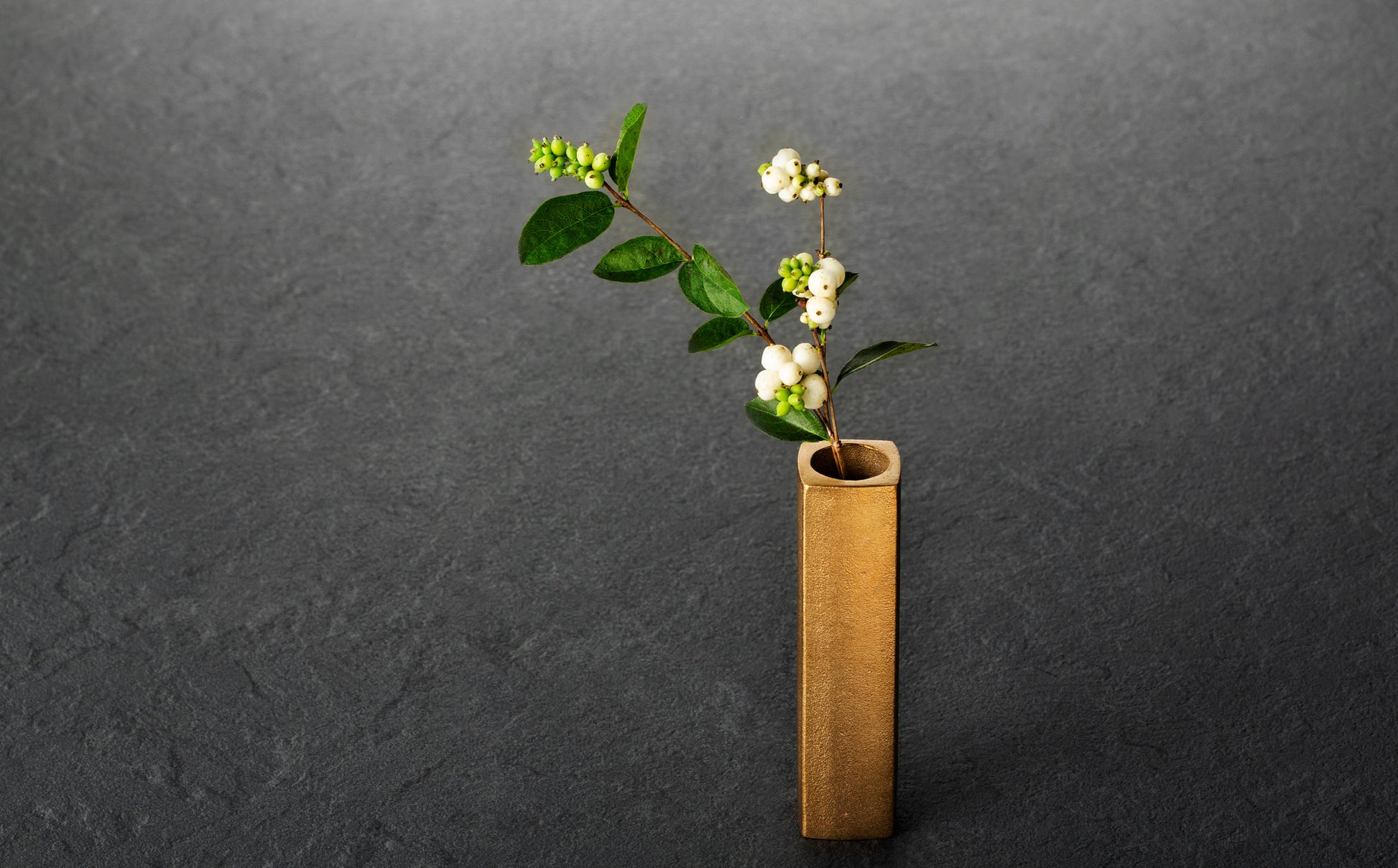 Founded in 1714, this long-established casting manufacturer, which served the Maeda clan, feudal lords of the Kaga Domain, presents a bronze flower vase created through traditional sand mold casting to keep flowers fresh and long-lasting. Inspired by the "Bush" used mainly in press machine parts among industrial machine components, its primitive form embodies functional beauty without excess. It exudes a modern and gold-like sense of weight and solemnity. In nature, "bush" refers to the thicket in forested areas. The pure expression of sand mold casting and the vitality of the arranged plants evoke a sense of eternal time.