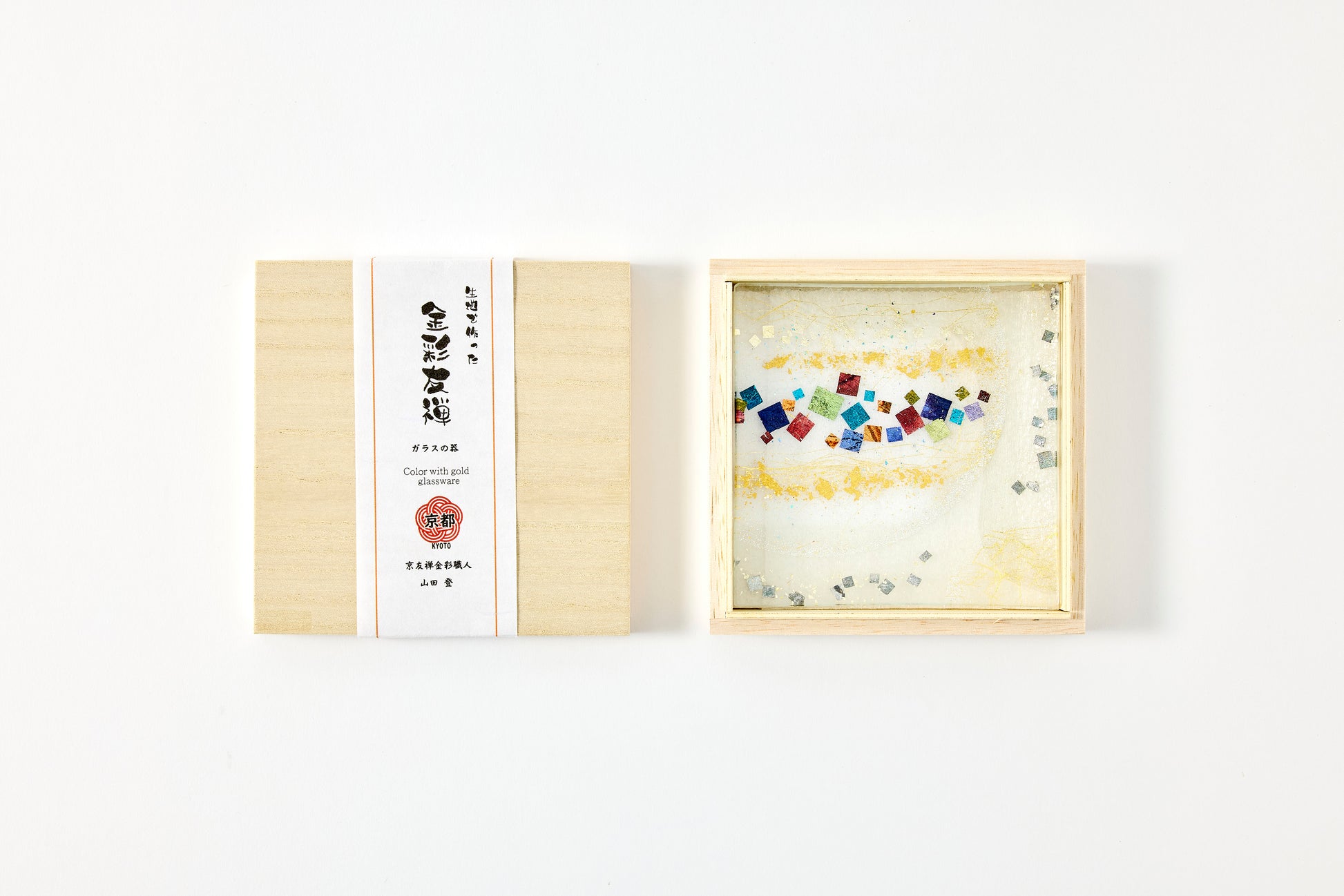 Kinsai Kogei Yamada crafts glassware using traditional kin-sai (gold leaf) techniques, blending elegance and durability. Each piece features a glass surface, an EVA resin base, and a waterproof resin coating that enhances the gold’s brilliance. More than decoration, these plates add sophistication to special dining occasions.