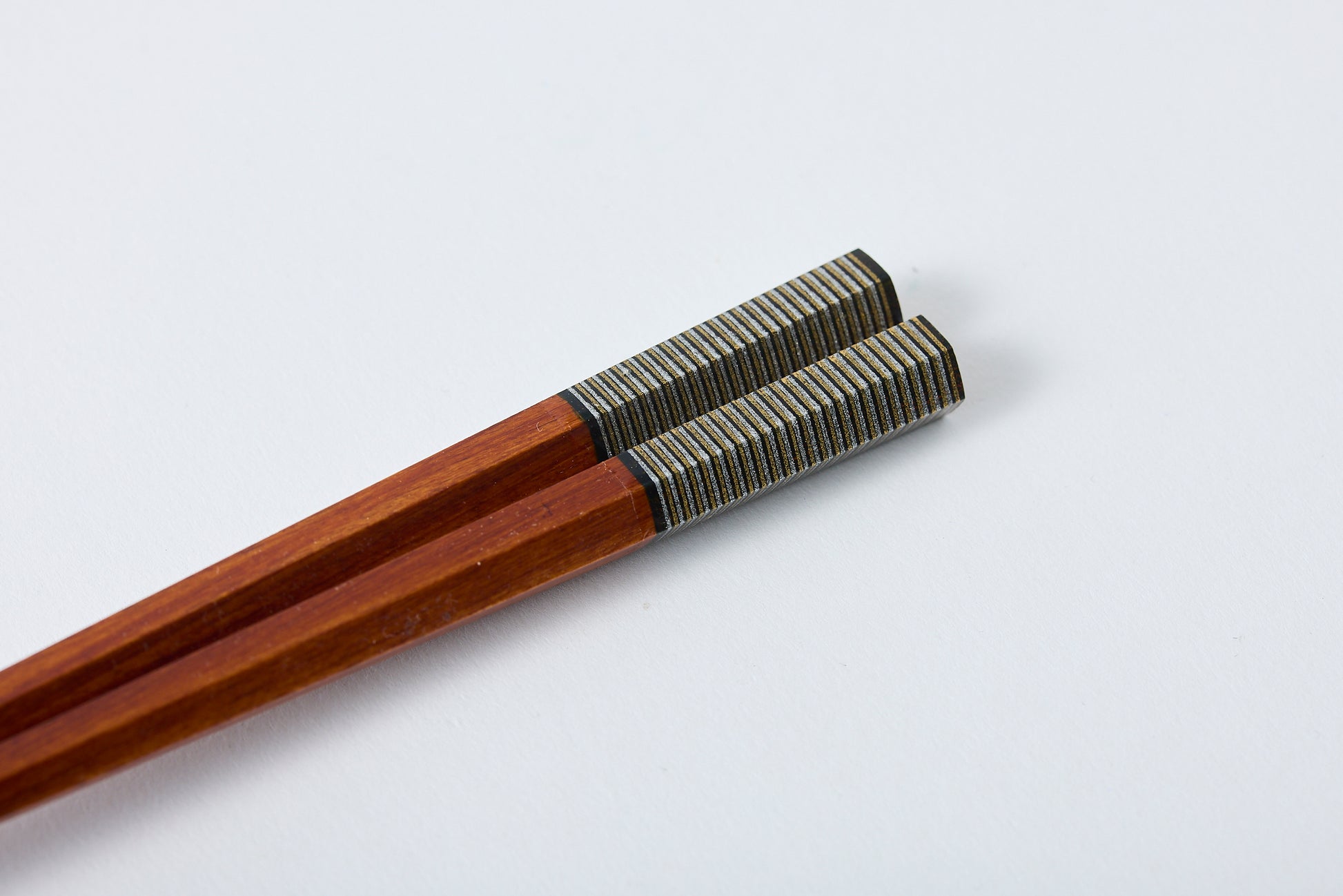 These chopsticks feature a hexagonal handle adorned with gold decorations.
