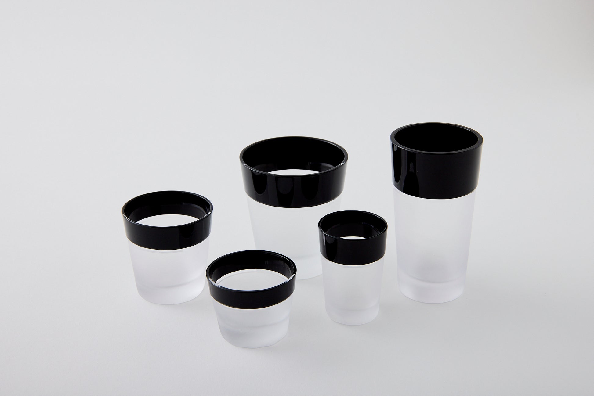 This simple glass is designed with only jet-black and matte transparent colors. It has an urban and modern look. Designed with the "silver ratio," a time-honored Japanese proportion known for its harmonious balance, it features Edo Kiriko cuts along its borders.