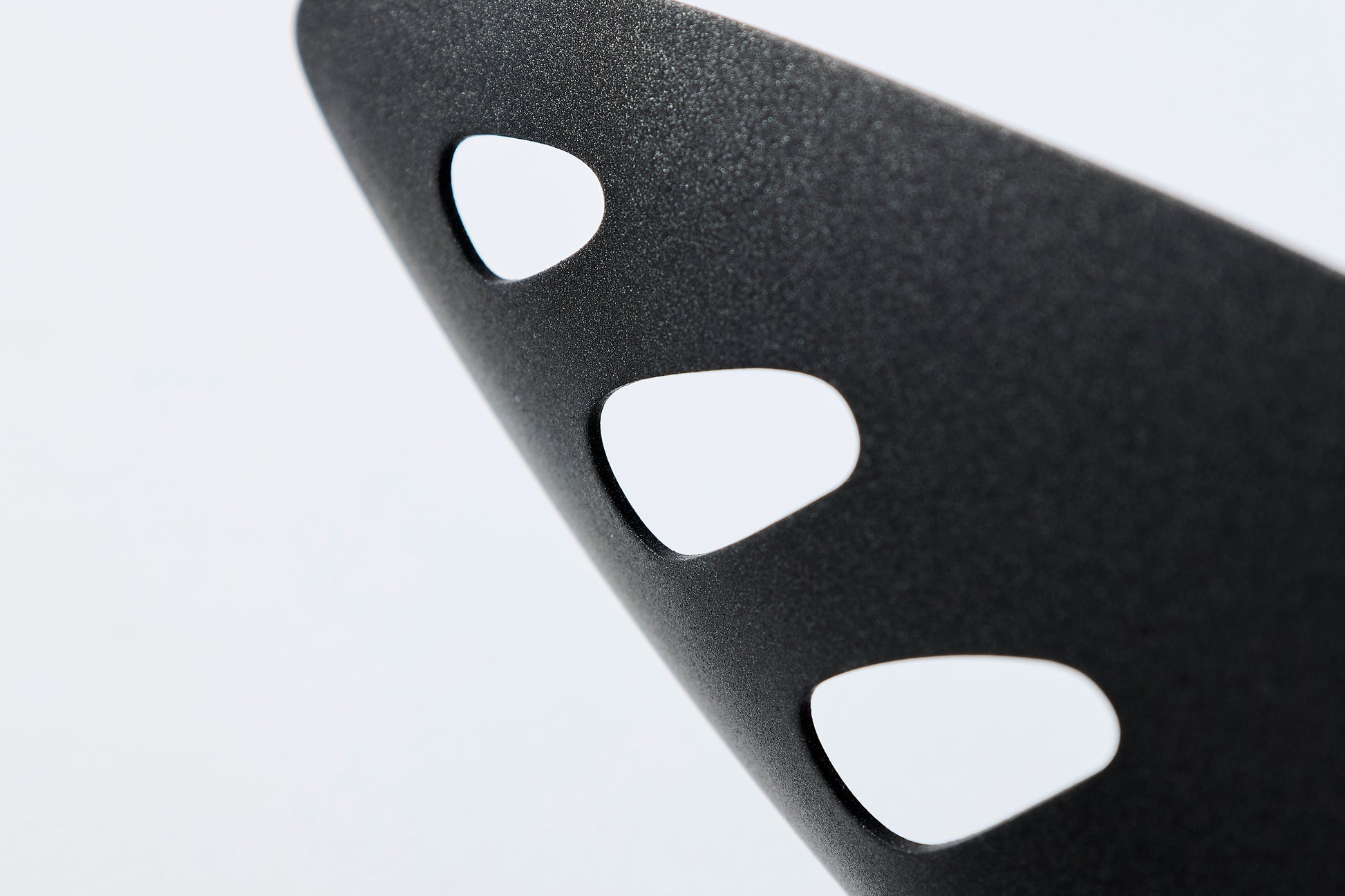 These tongs gently grip as if wrapping around, making them convenient for serving salads and pasta. They gently grasp without damaging leafy greens like lettuce. The patented spring allows for a soft grip. When not in use, flipping them upside down keeps the tips elevated, preventing the table from getting dirty.