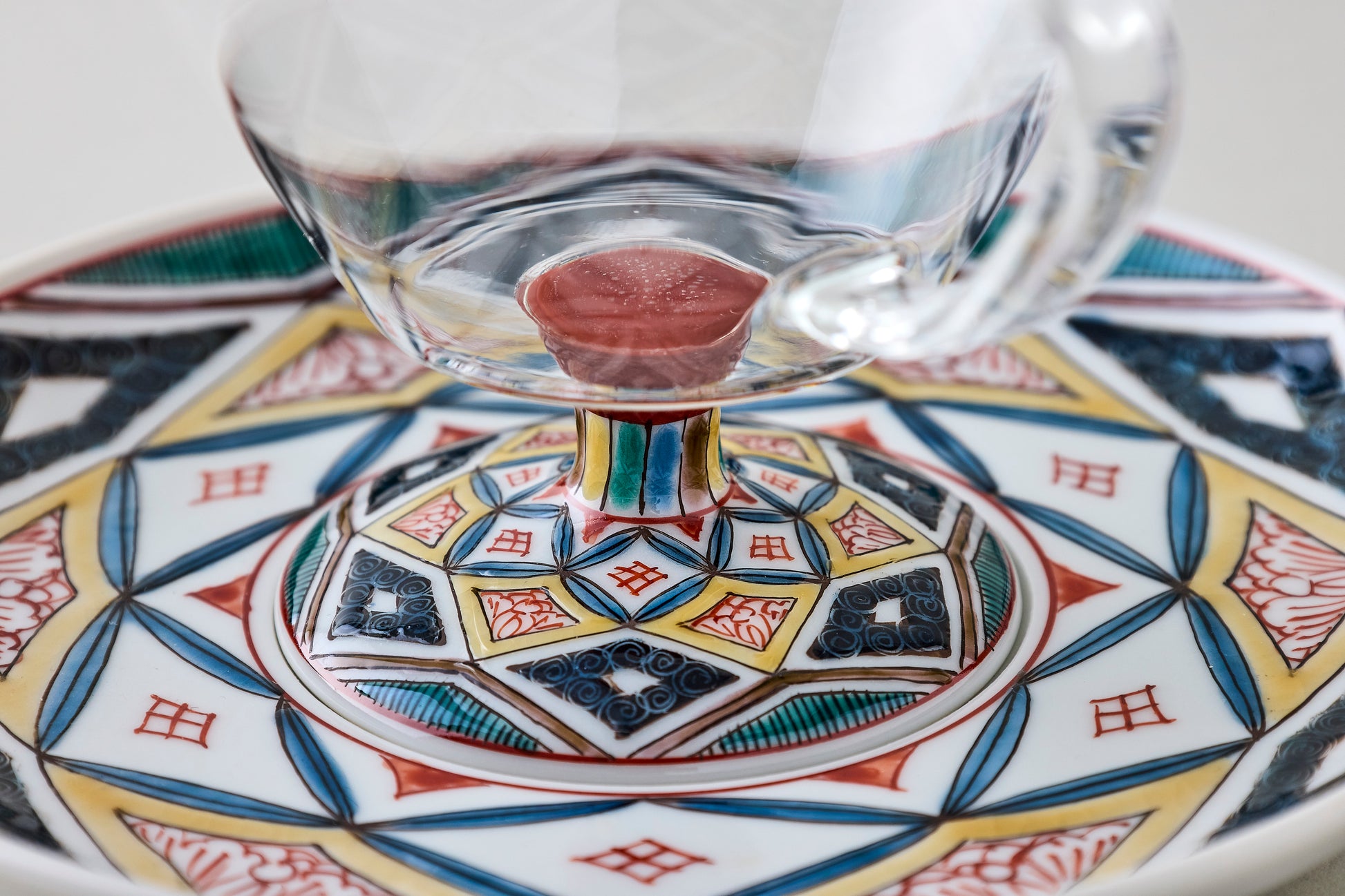 The design of the stem part features patterns from Ko-Kutani, the origins of Kutani porcelain 360 years ago, recreated in a modern style.