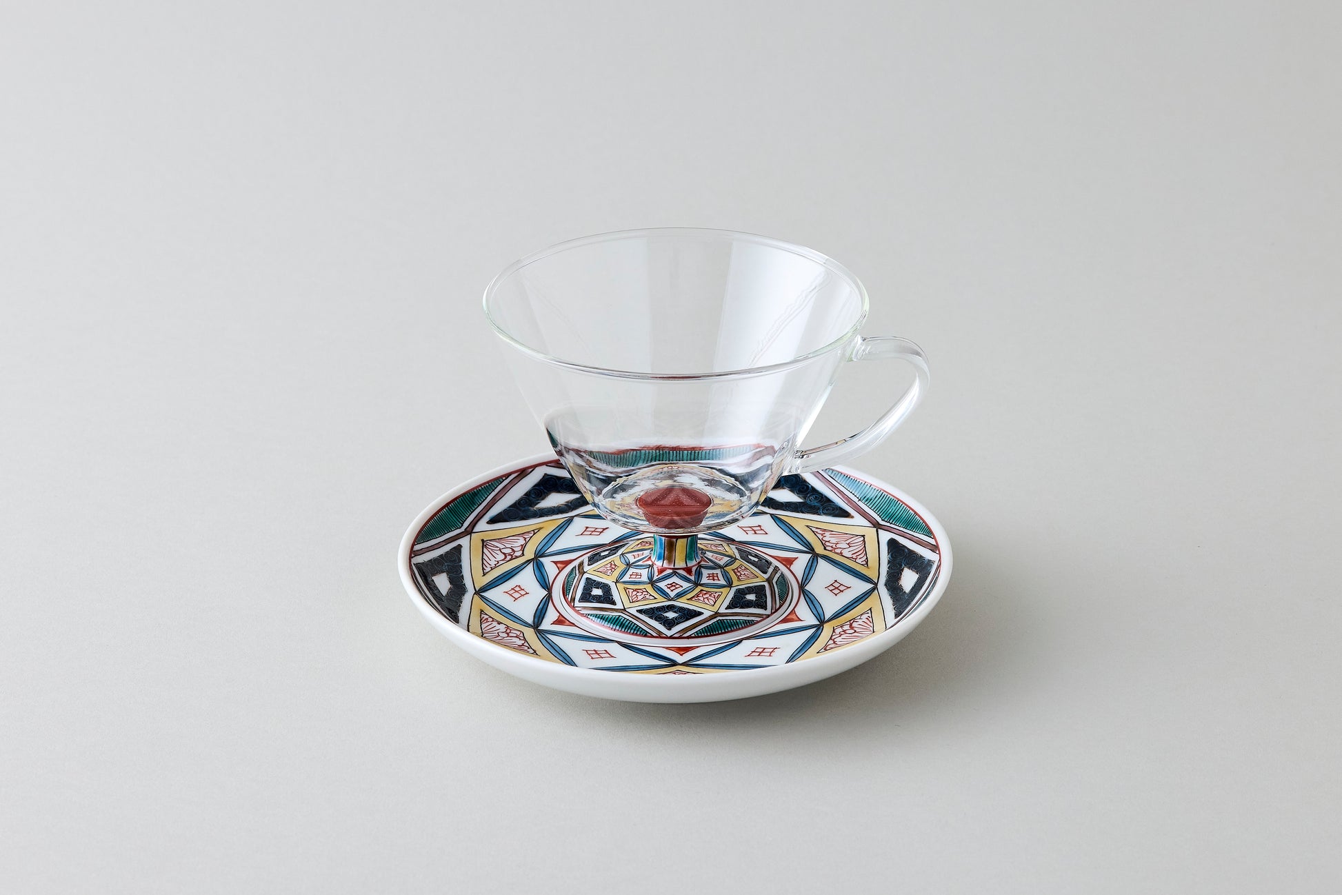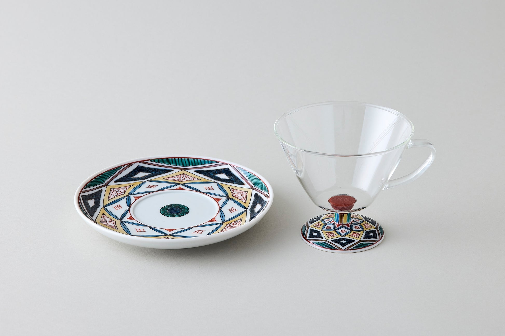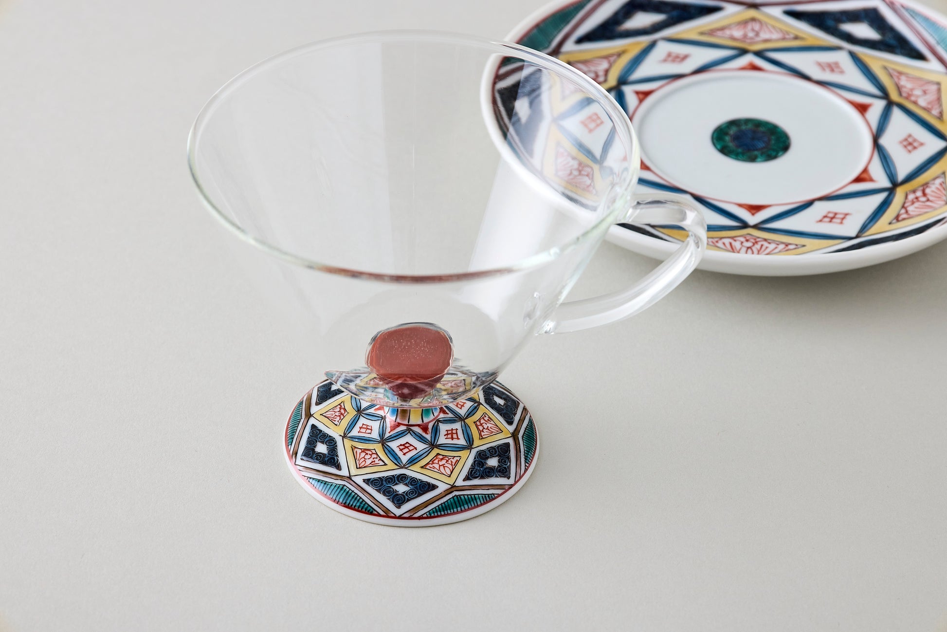 Seihoudo offers Kutani-Wa Glass, a unique fusion of two traditional crafts: Kutani ware from Ishikawa Prefecture and Edo glass—handblown glassware with deep roots as a local industry in Tokyo—combined through a specialized technique.