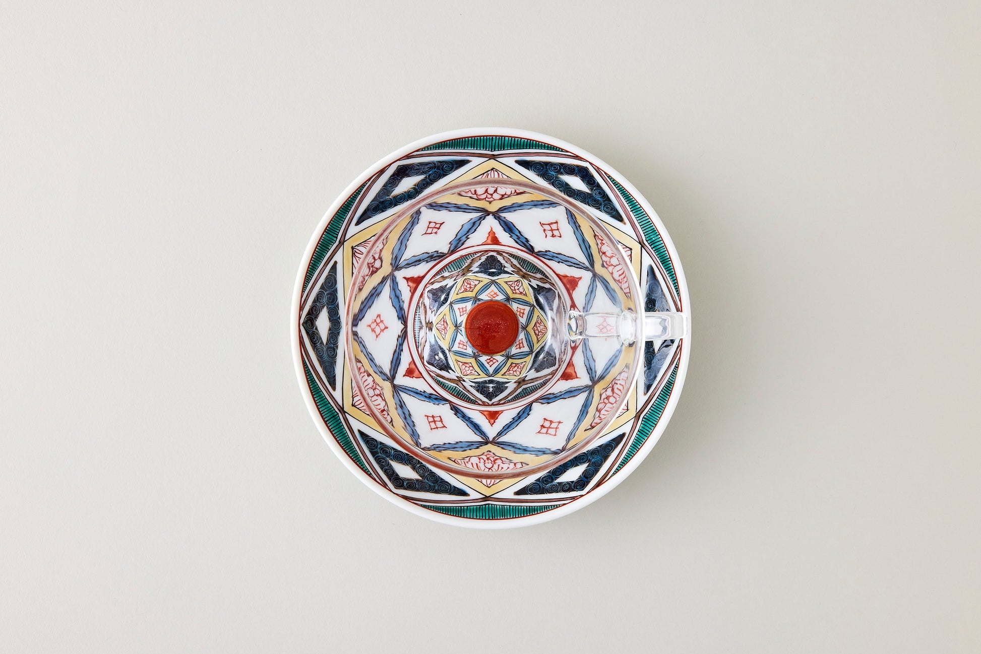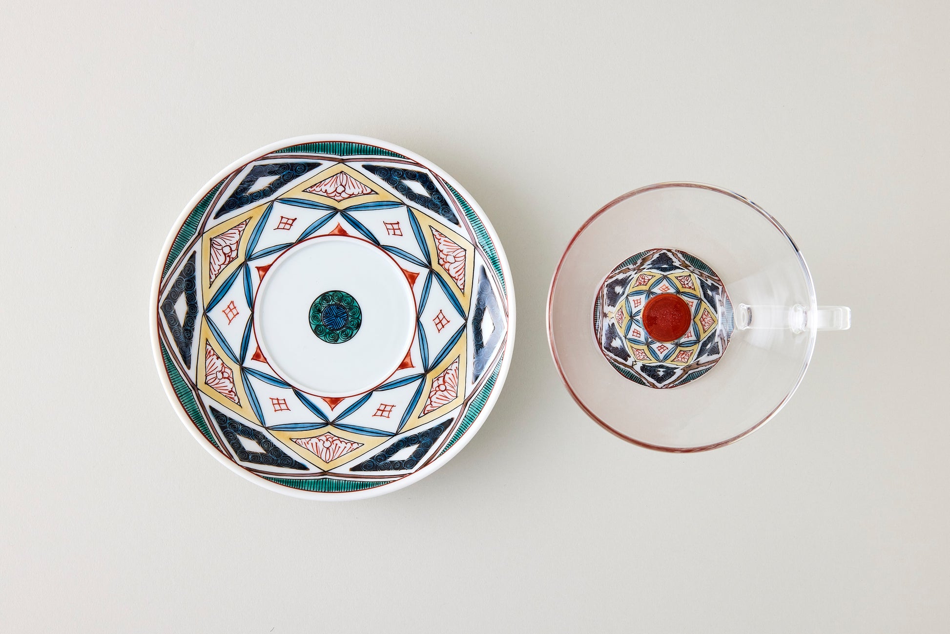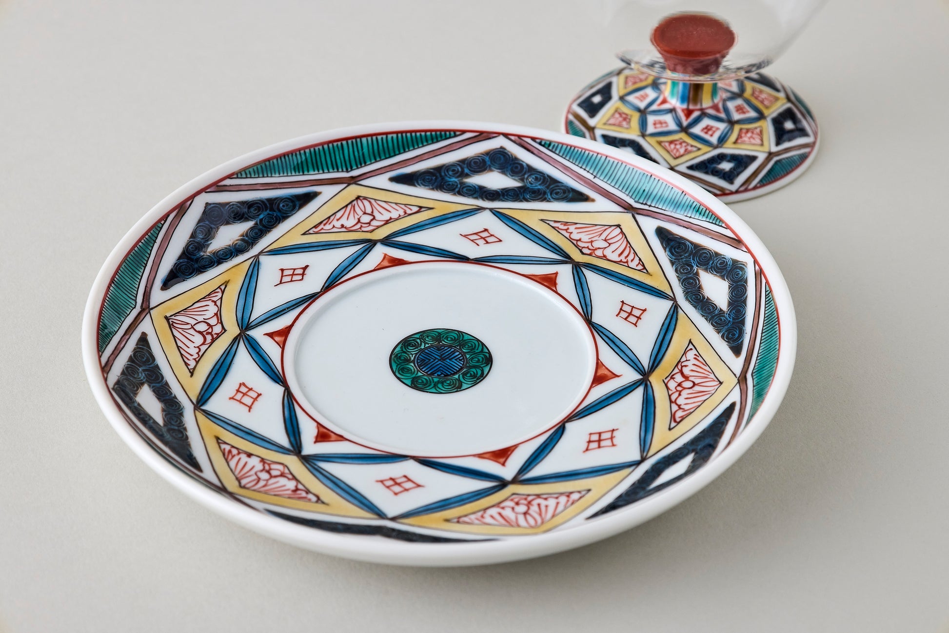 Seihoudo offers Kutani-Wa Glass, a unique fusion of two traditional crafts: Kutani ware from Ishikawa Prefecture and Edo glass—handblown glassware with deep roots as a local industry in Tokyo—combined through a specialized technique.