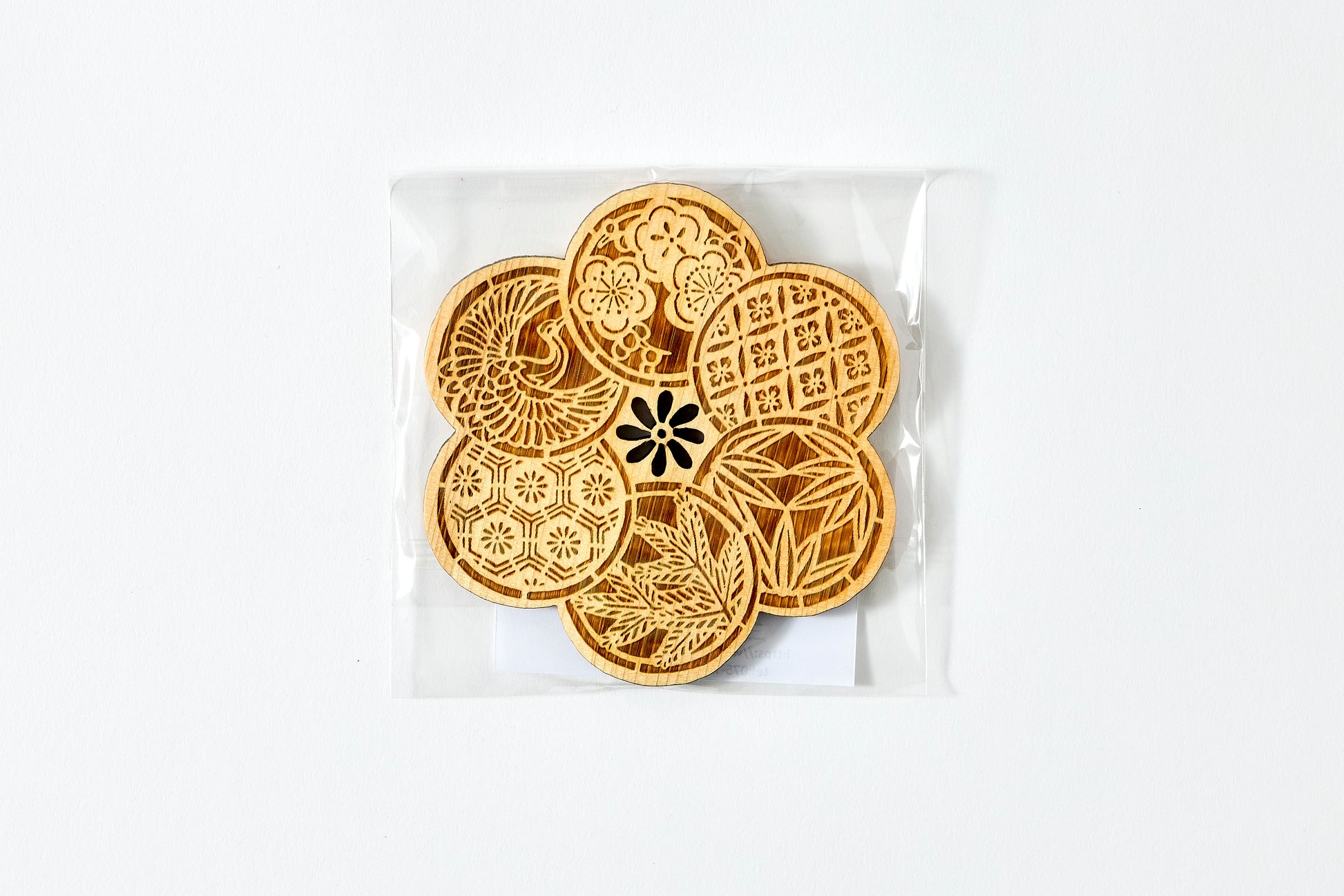 A beautifully crafted coaster featuring a traditional Japanese design that combines plum blossoms with delicate komon patterns.