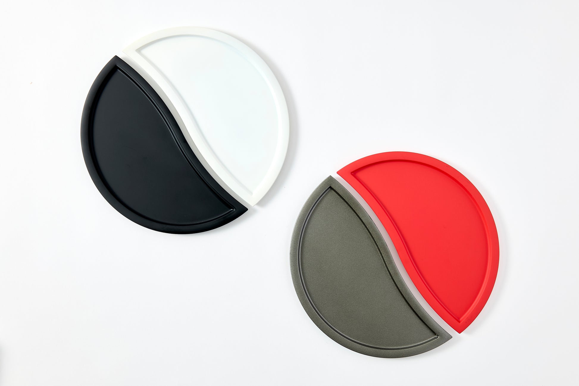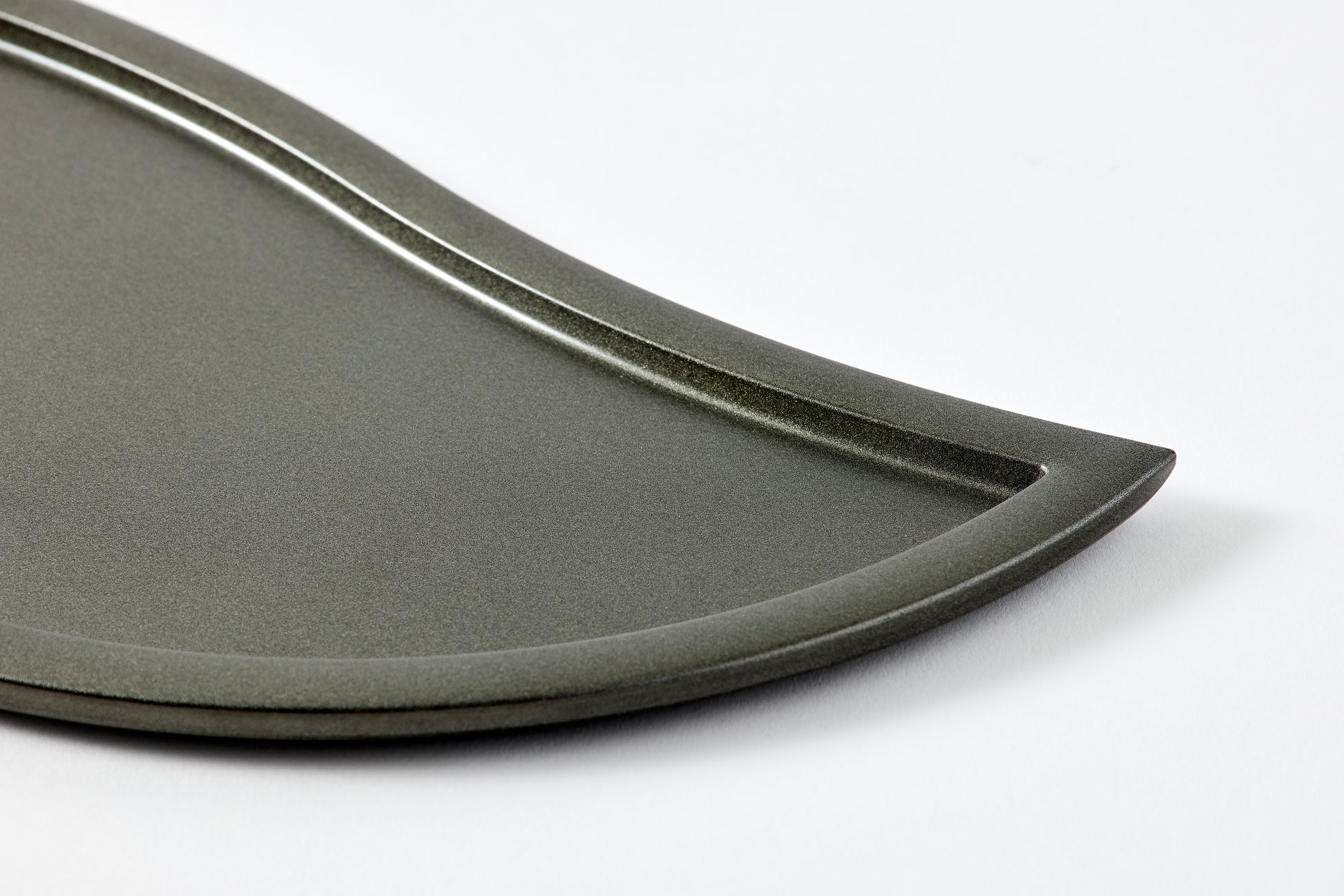 With its graceful curved lines and matte texture for a refined touch, this plate is designed so that two pieces can be combined to form a perfect circle.