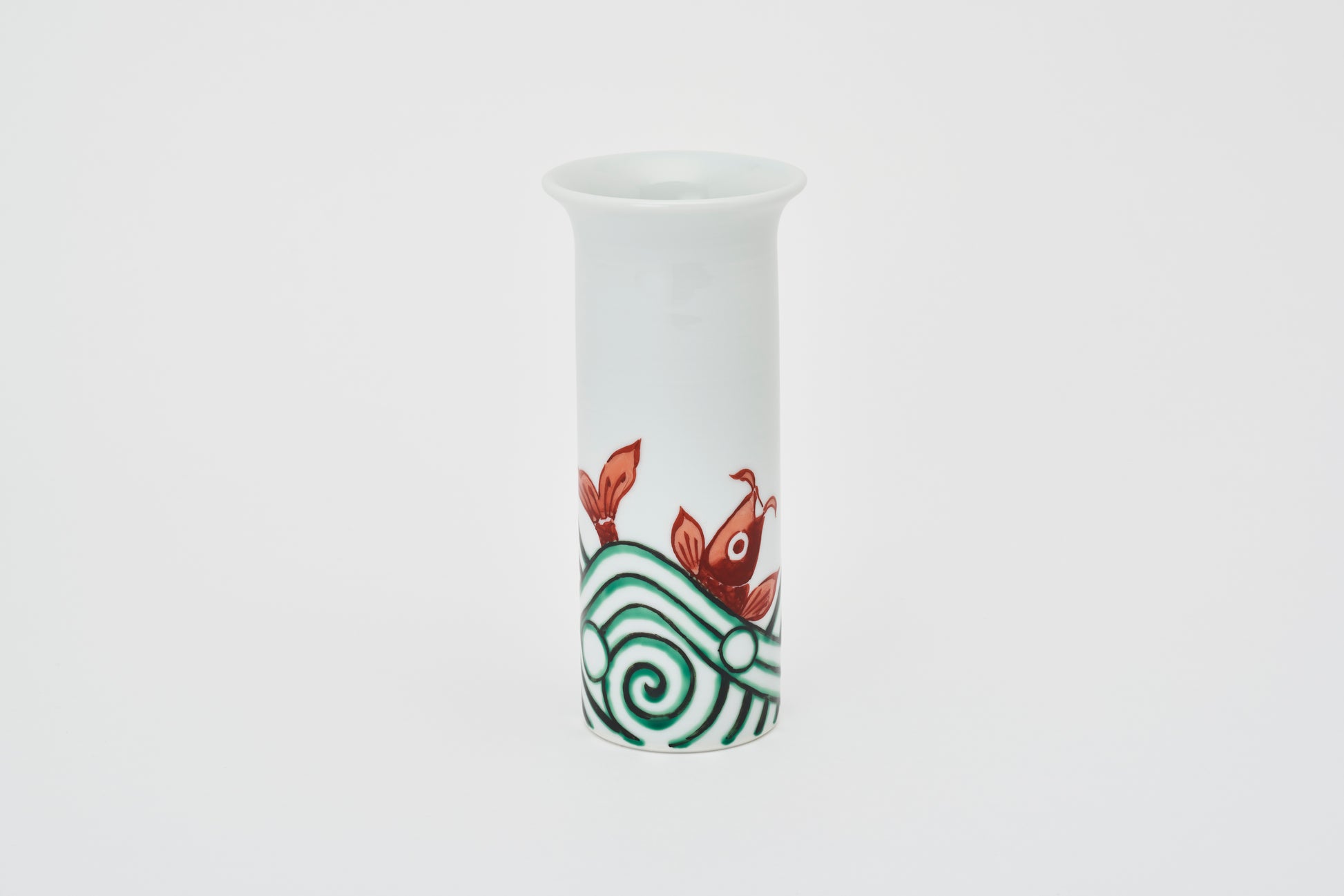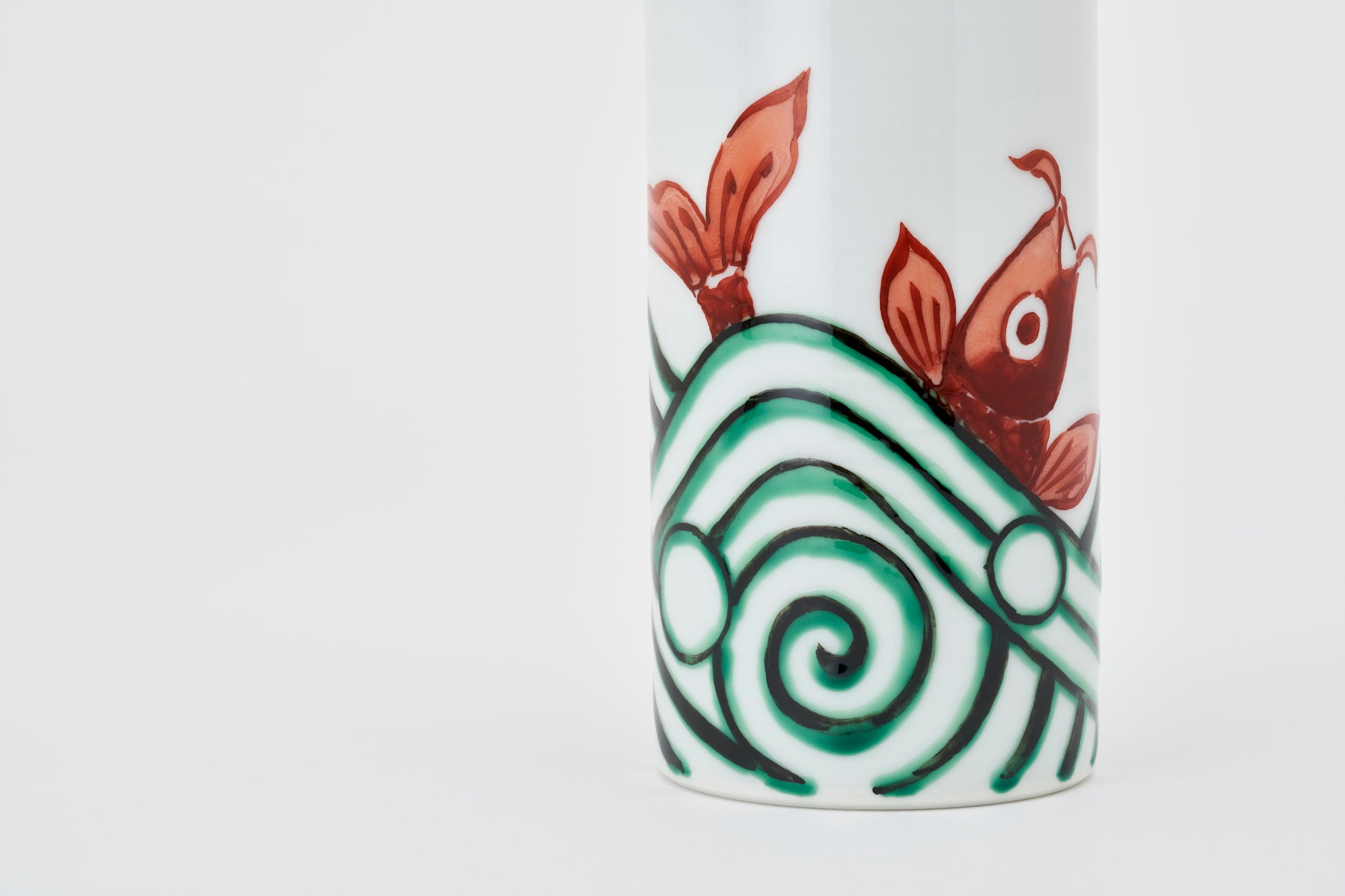 The Yūri-mon (playful carp motif) is completed using a raised iro-enogu (colored glaze) technique, and the piece undergoes two rounds of overglaze firing to achieve its final brilliance.