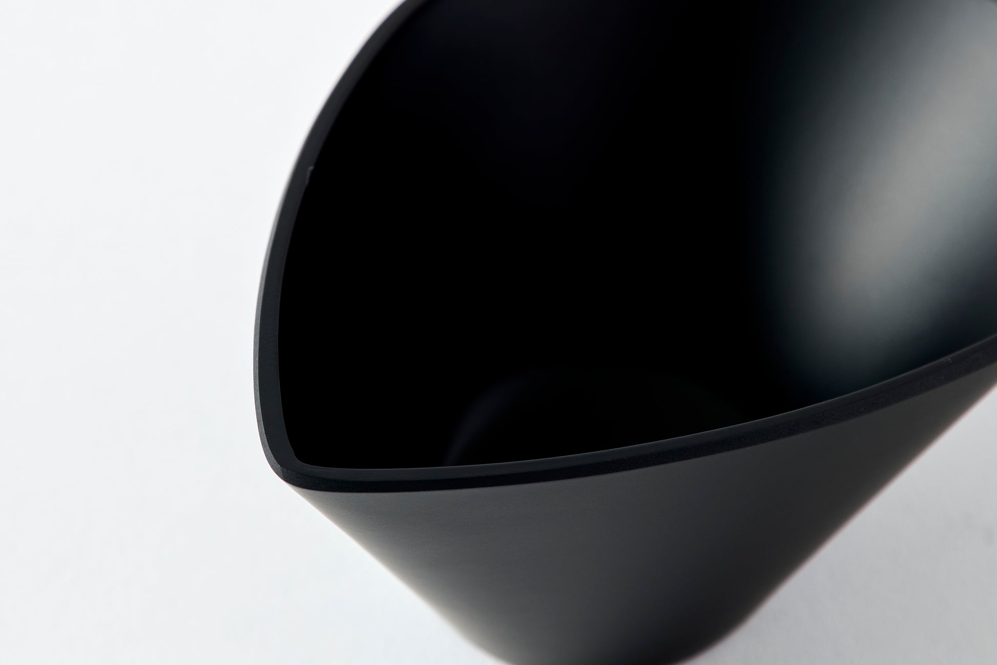 With its sharp, droplet-like form and oval-shaped rim, this vessel resembles a sculpture atop the table. It can be used as a container for sauces or dressings, as a small side dish or dessert cup, or even as a unique vase for floral arrangements.