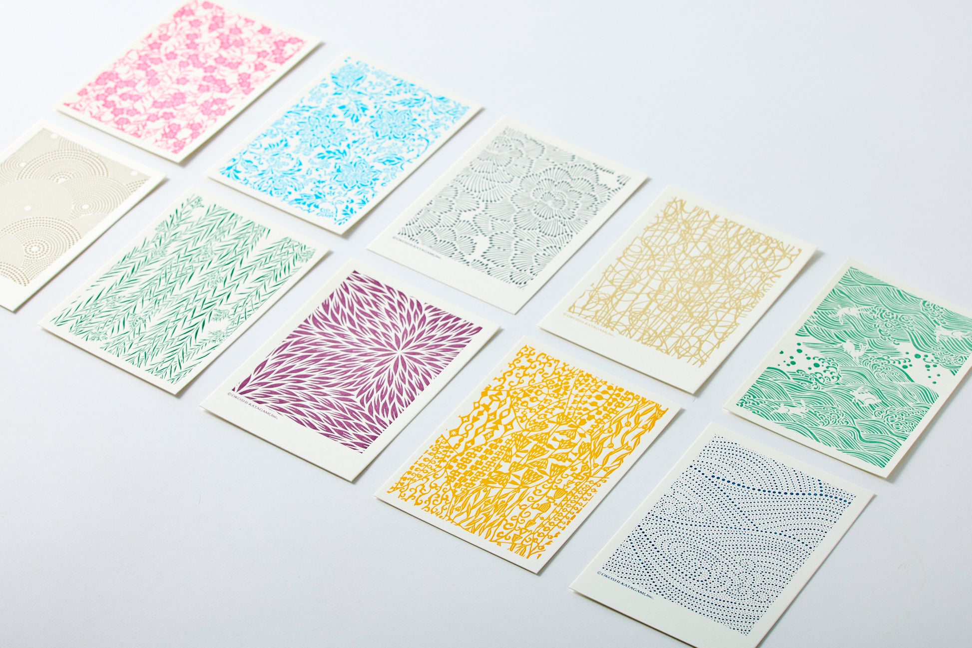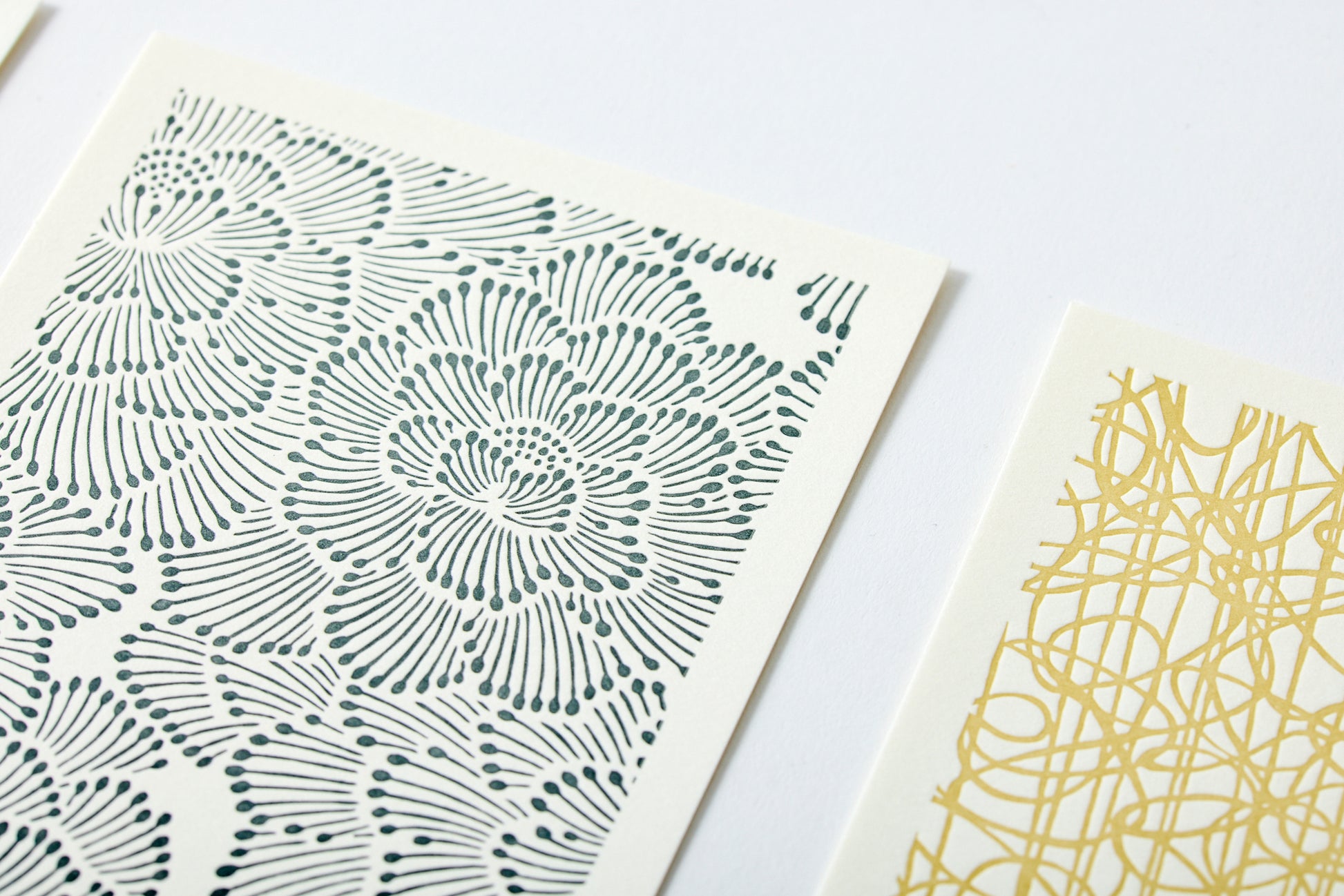 Because these are letterpress printed, the patterns have a wonderful three-dimensional quality, almost as if they are engraved into the paper. This gives the cards a uniquely pleasant texture.
