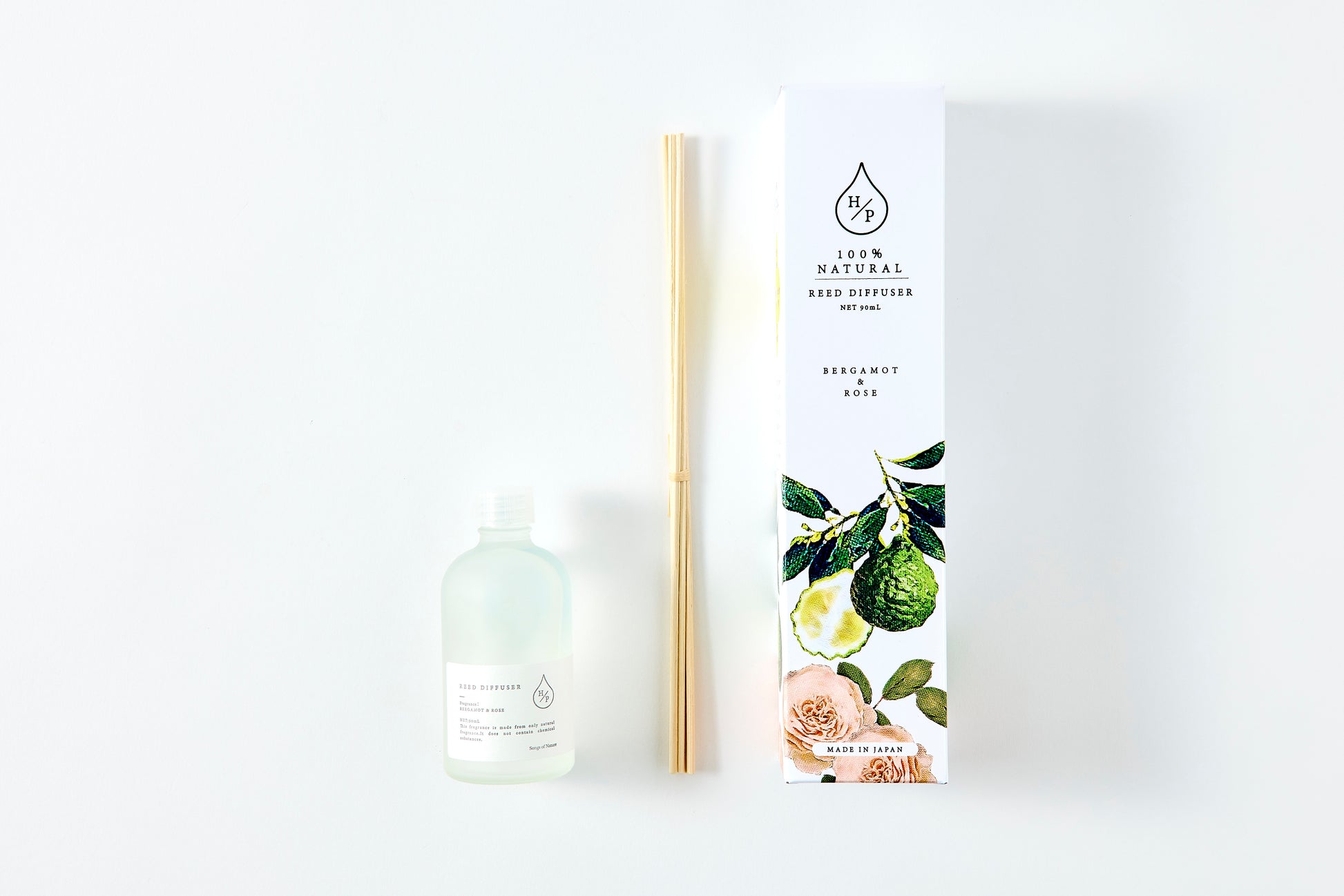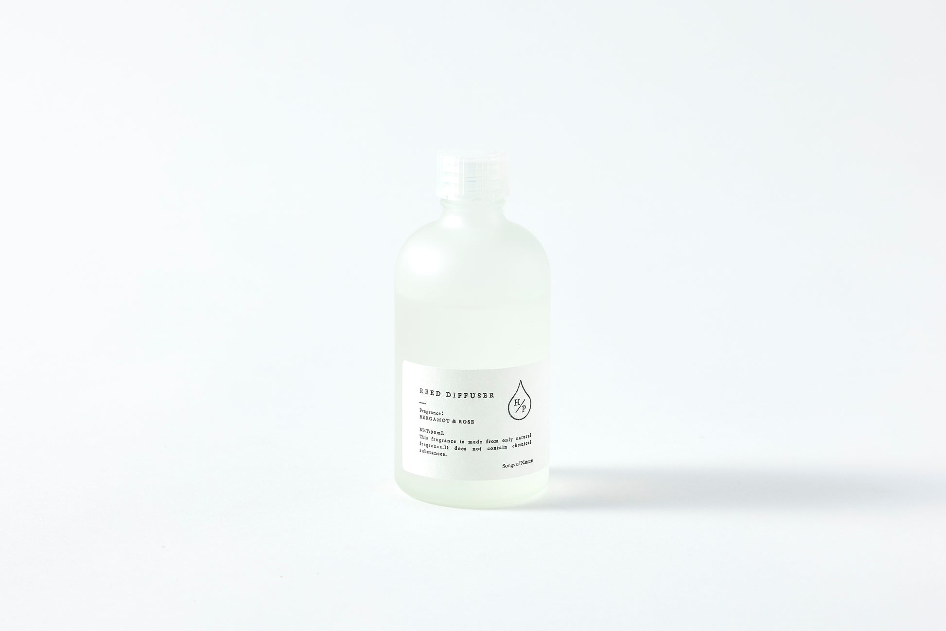 A room fragrance made with 100% natural ingredients. It features the fresh and gentle scent of plants. A citrus floral fragrance blended with refreshing bergamot and rich rose.