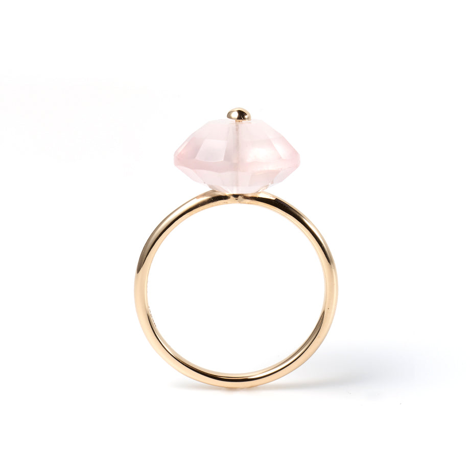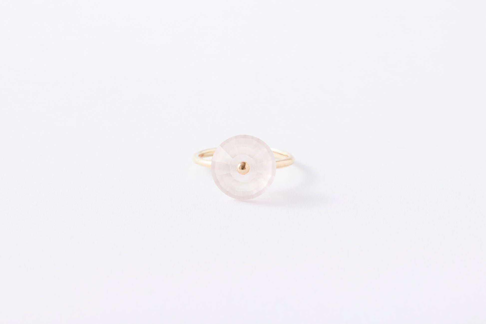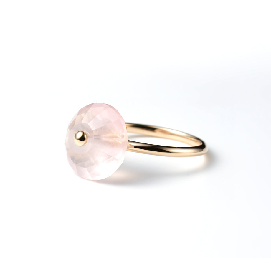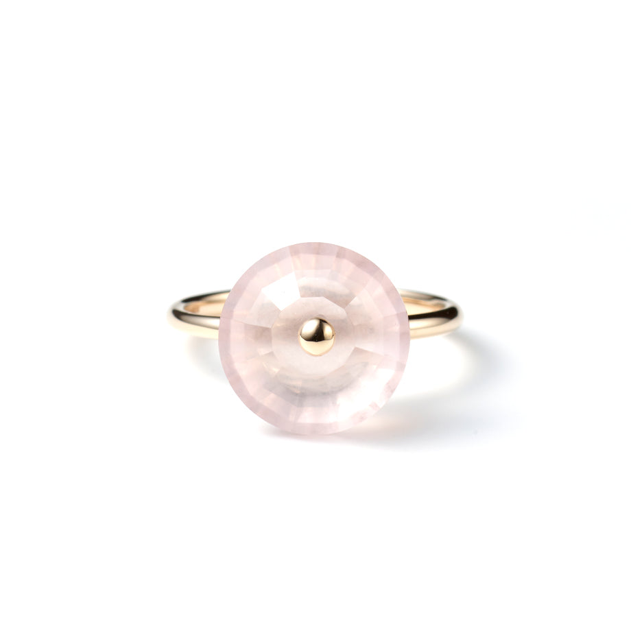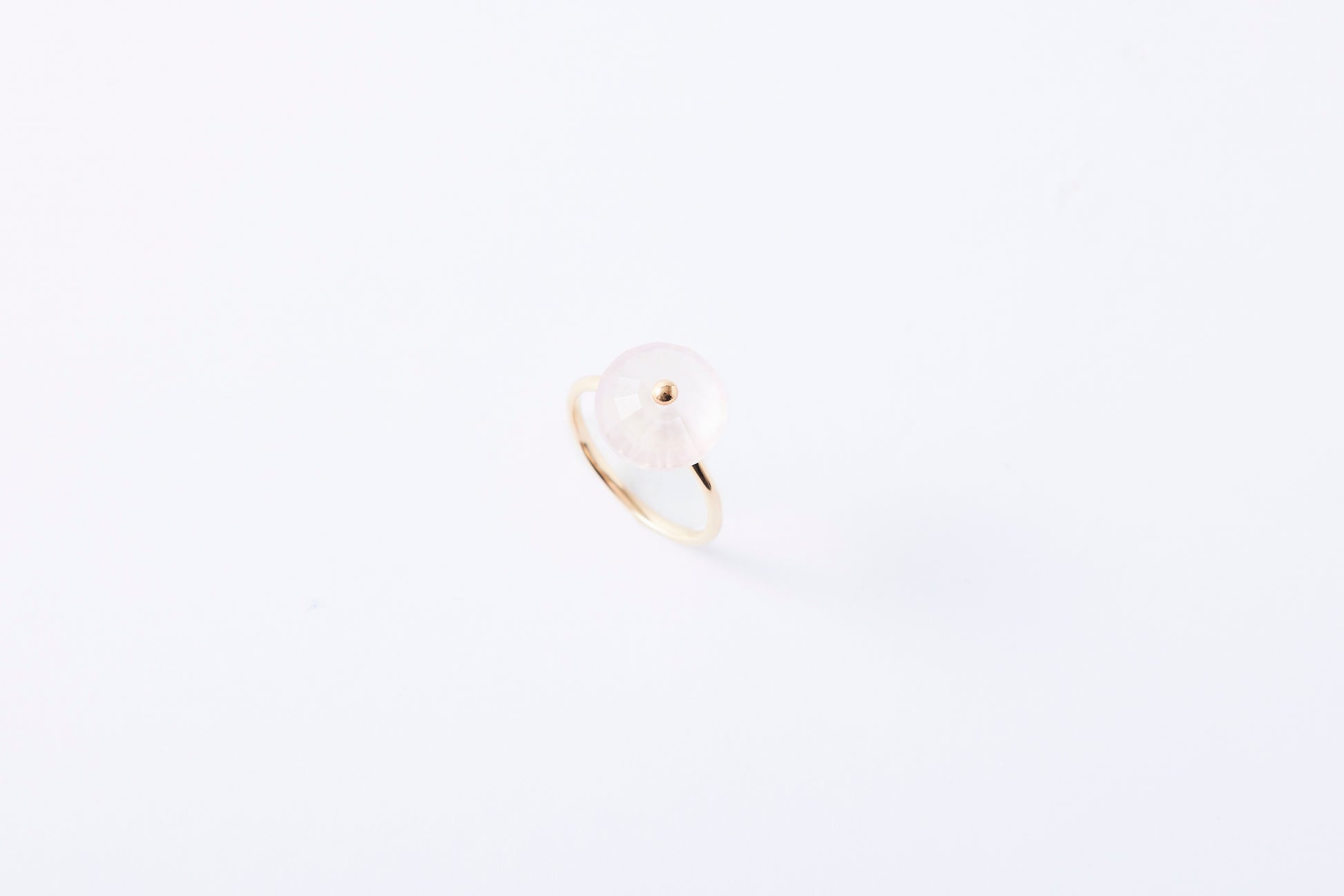 This is a ring set with a large rose quartz. Natural stones carefully selected by the designer are refined through intricate craftsmanship by skilled artisans, resulting in a beautifully finished piece.