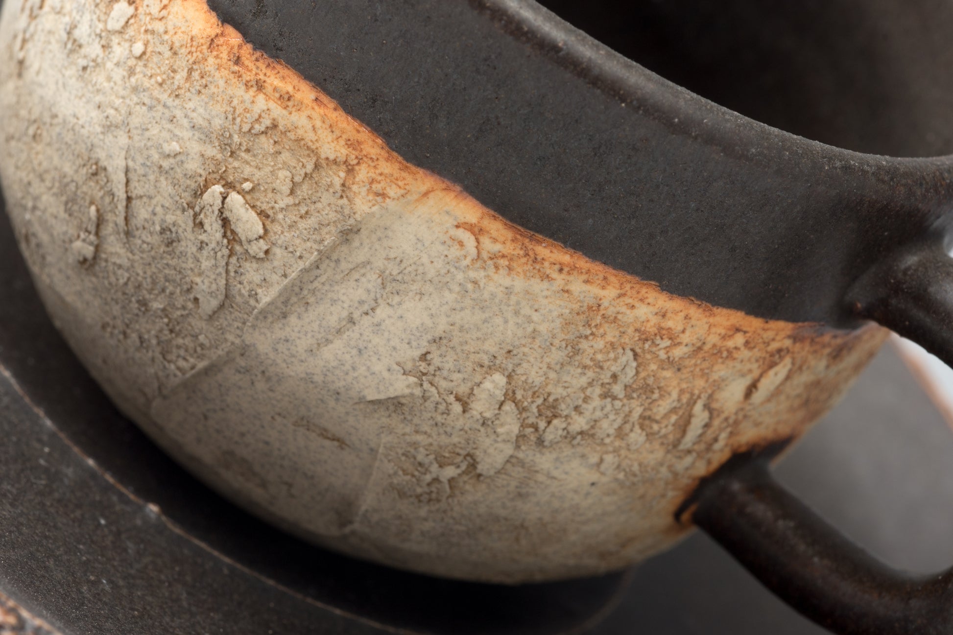 The works are characterized by rock-like surfaces and monotone colors. The material is semi-porcelain (a mix of clay and porcelain).It looks like a rock and feels heavy, but when you actually hold it, it is light and strong.