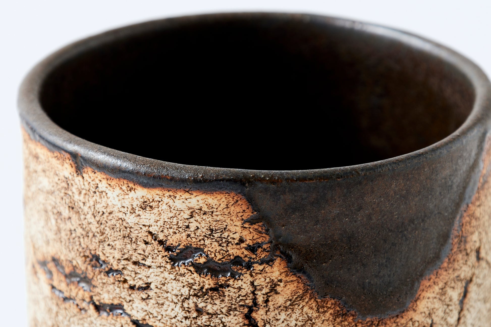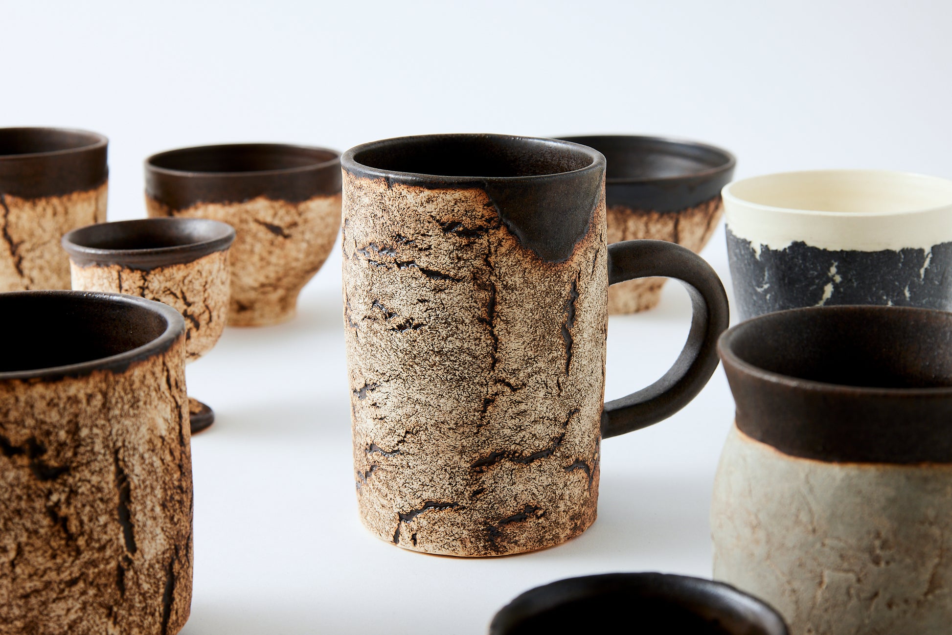 The works are characterized by rock-like surfaces and monotone colors. The material is semi-porcelain (a mix of clay and porcelain).It looks like a rock and feels heavy, but when you actually hold it, it is light and strong.