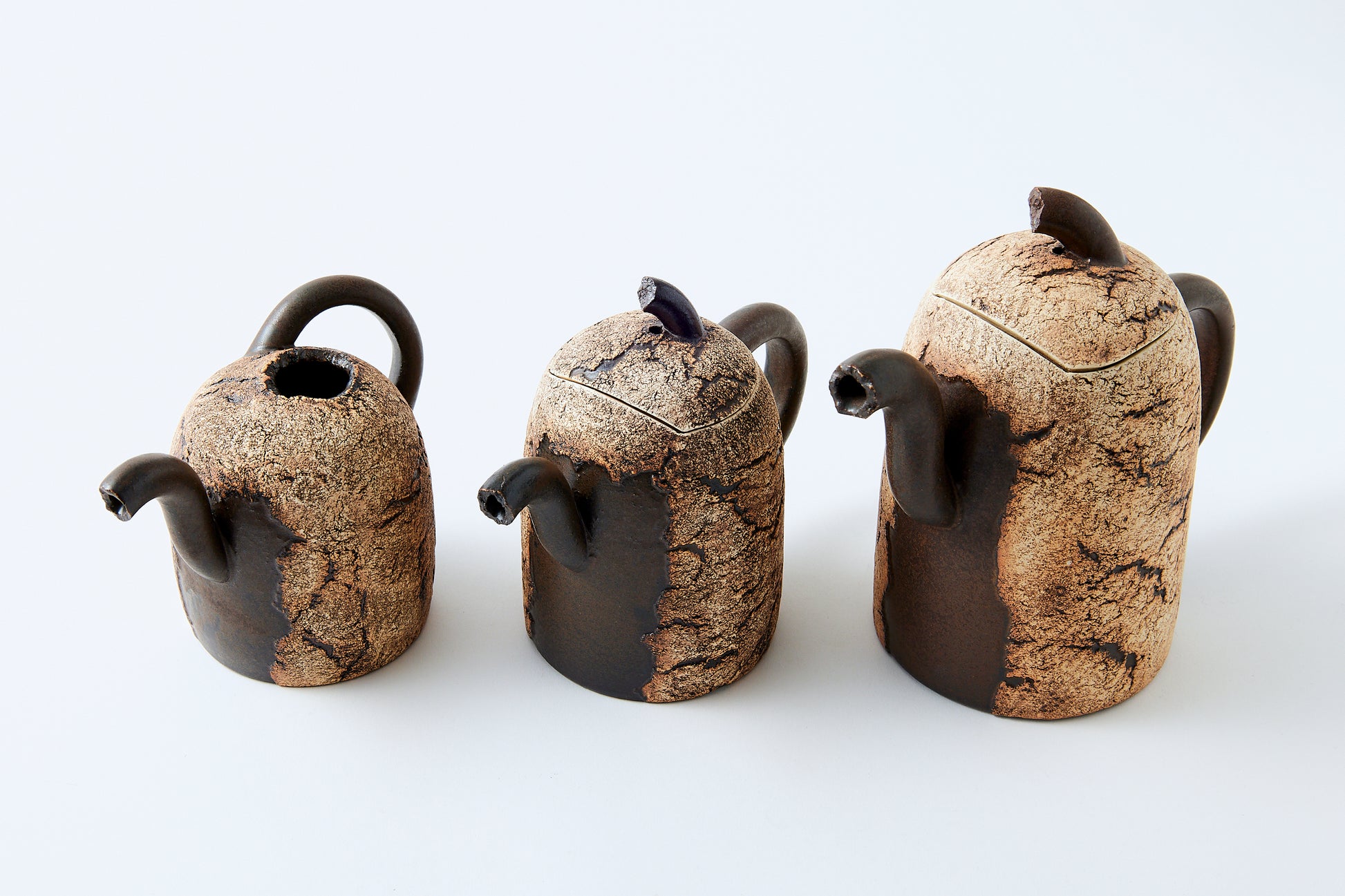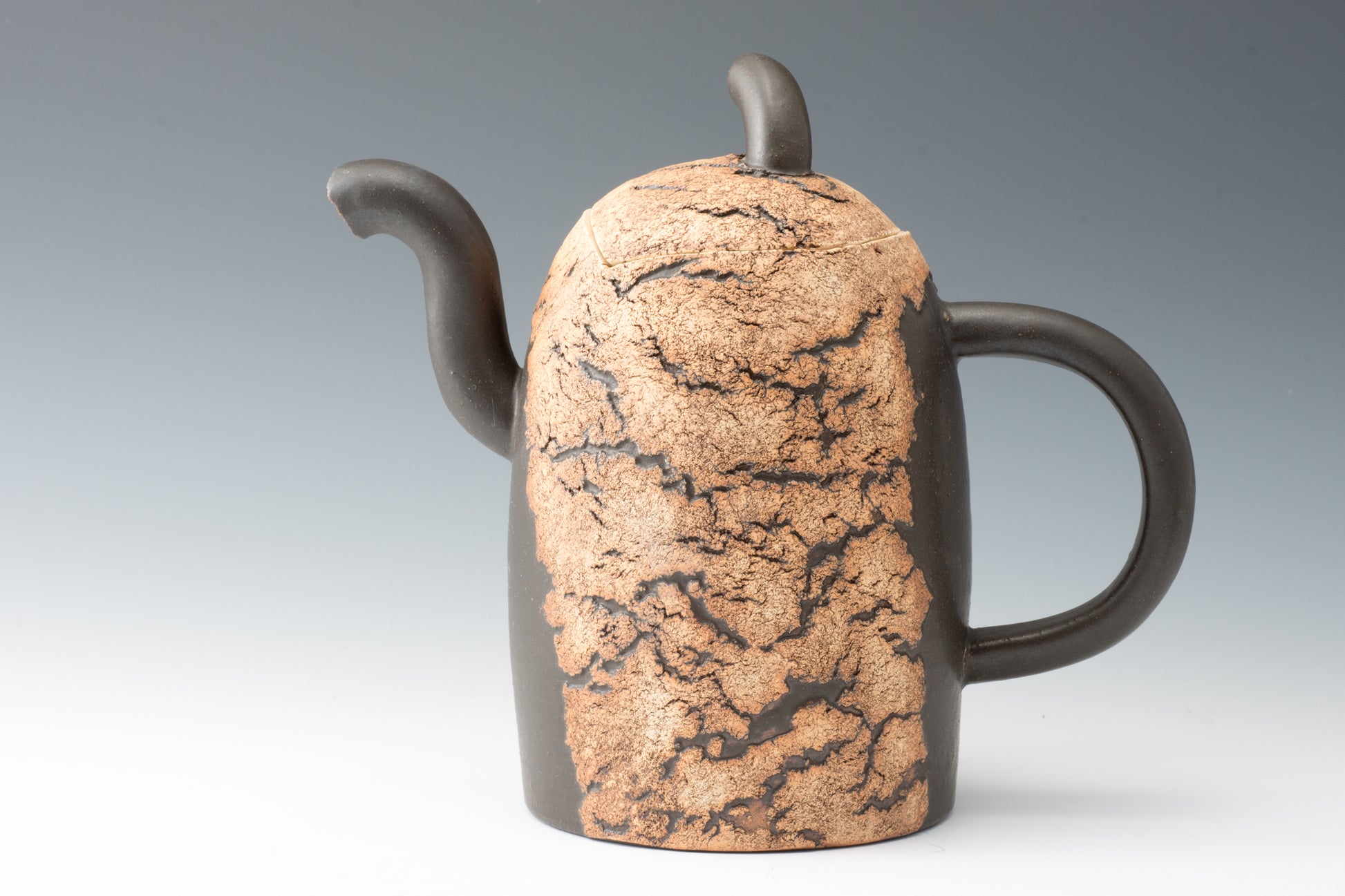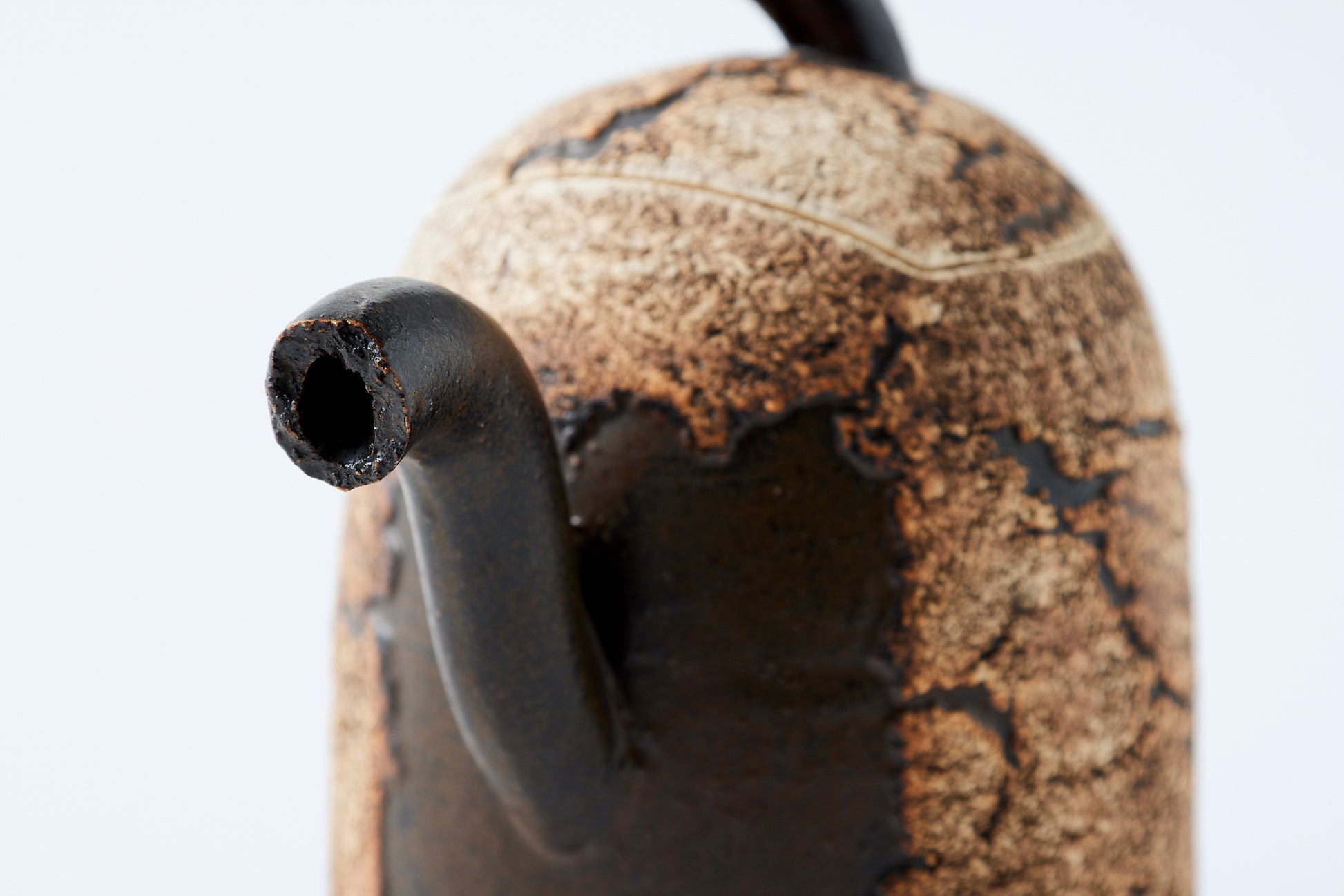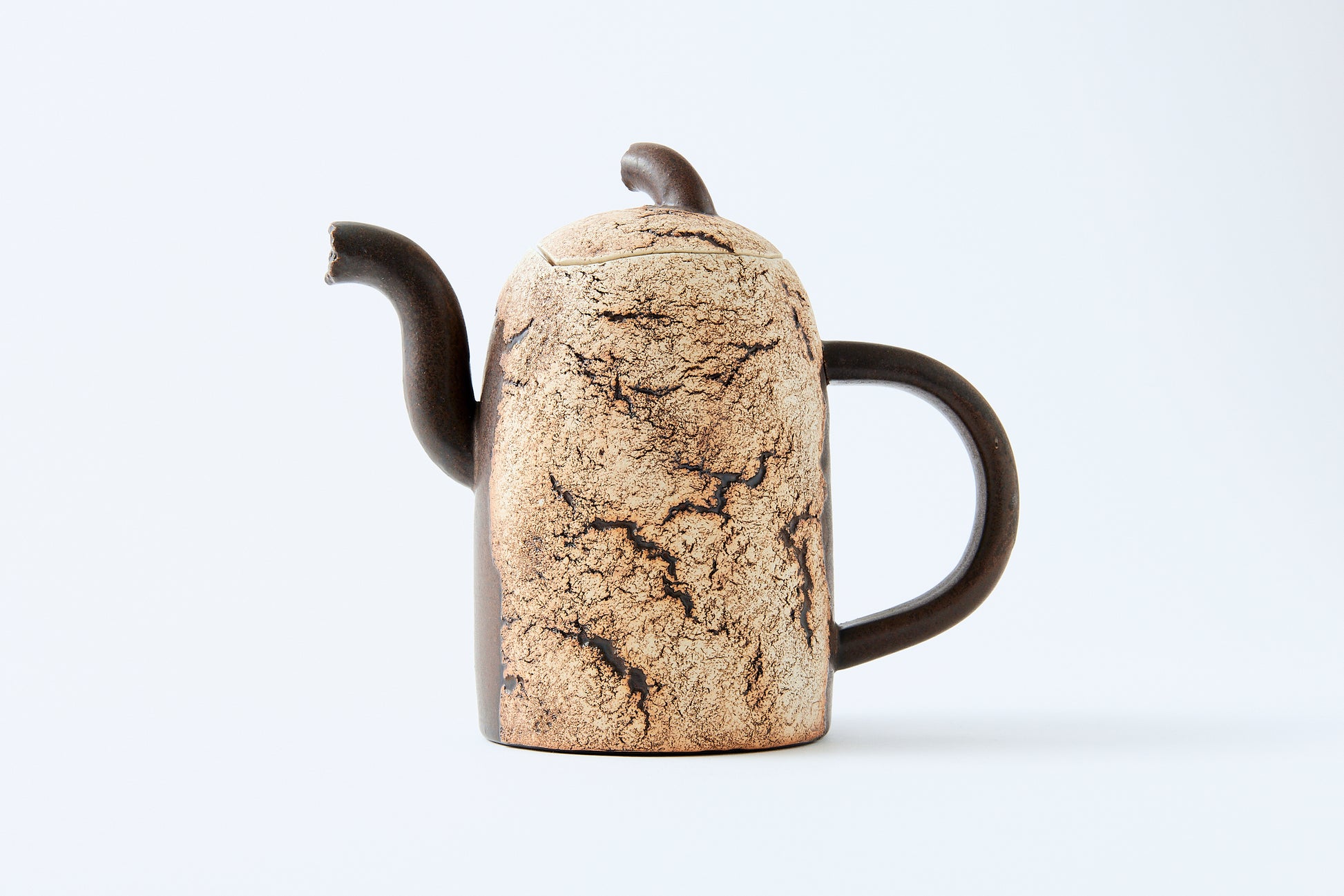 The works are characterized by rock-like surfaces and monotone colors. The material is semi-porcelain (a mix of clay and porcelain).It looks like a rock and feels heavy, but when you actually hold it, it is light and strong.