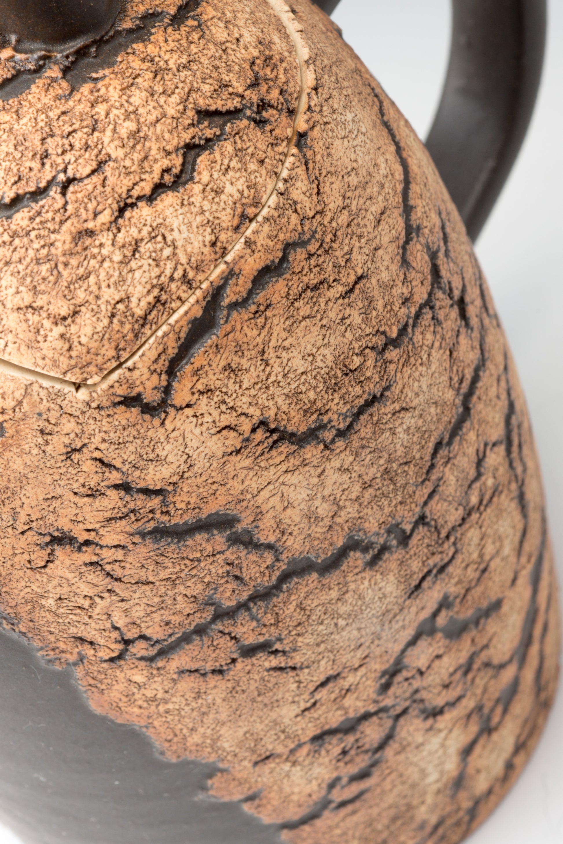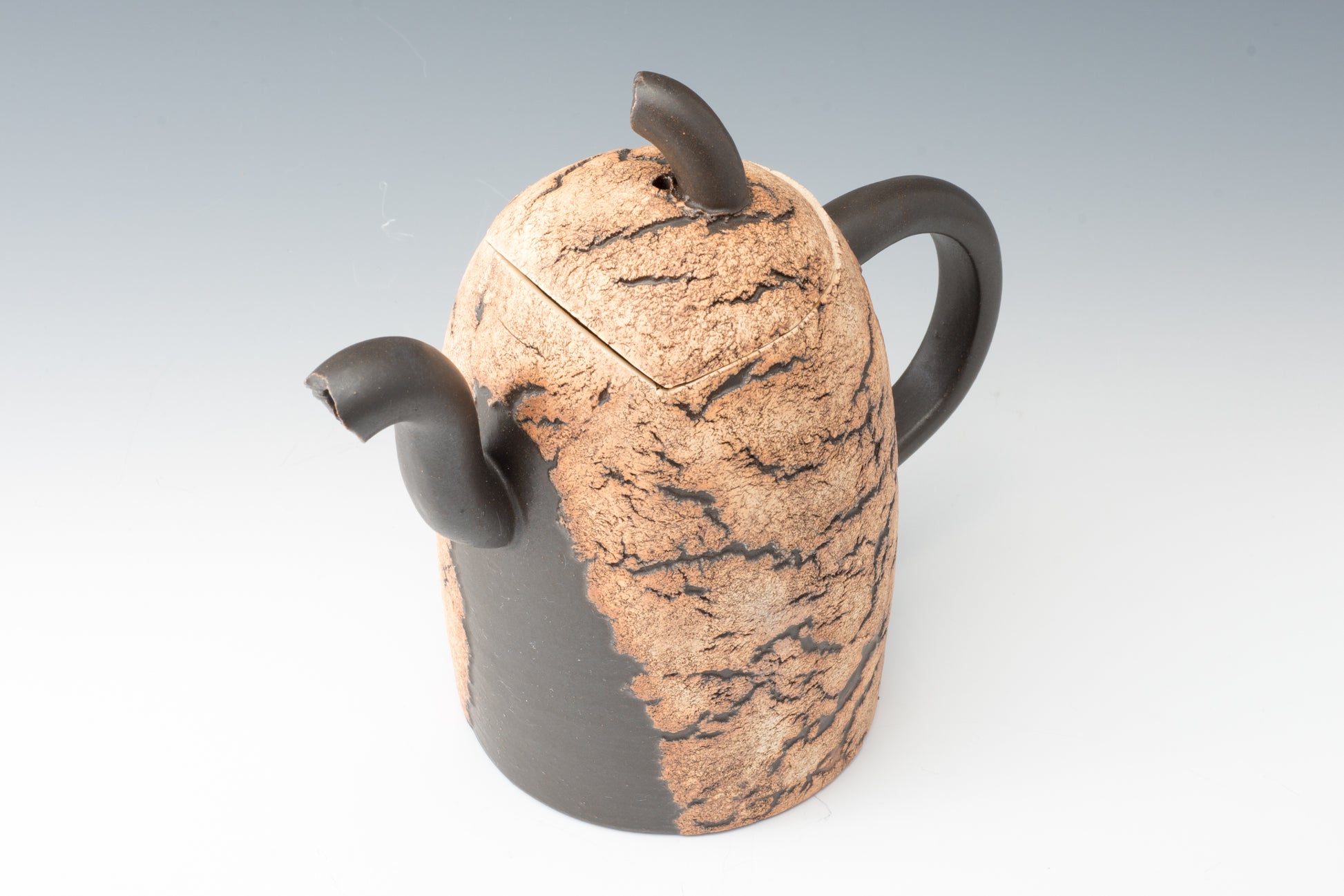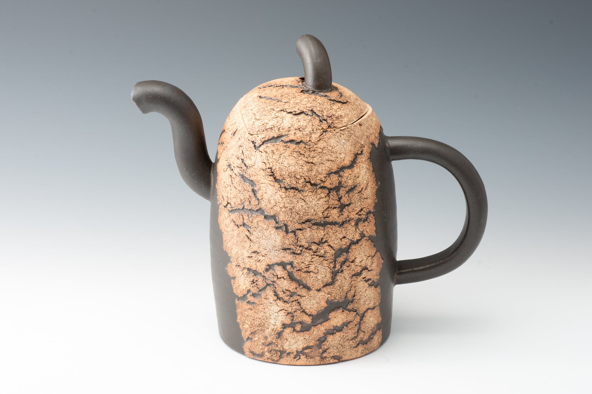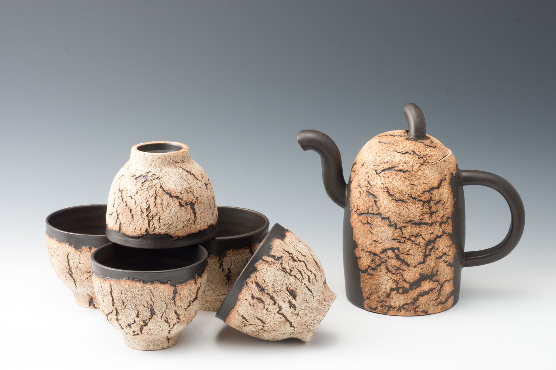 The works are characterized by rock-like surfaces and monotone colors. The material is semi-porcelain (a mix of clay and porcelain).It looks like a rock and feels heavy, but when you actually hold it, it is light and strong.