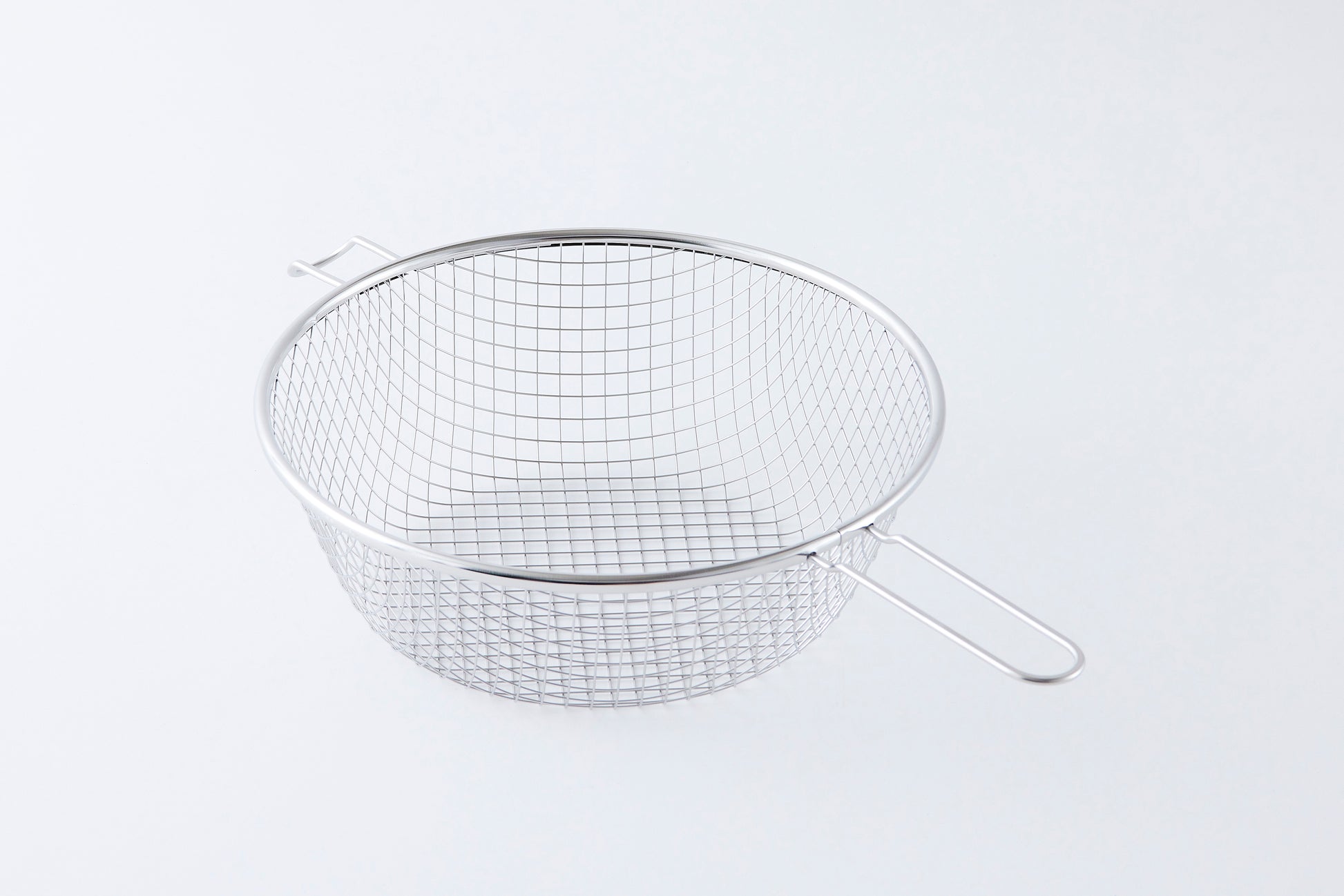 - Material: Blue-tempered iron (silicone coating), Handle: Iron (baked coating), Basket & Net: 18-8 Stainless Steel