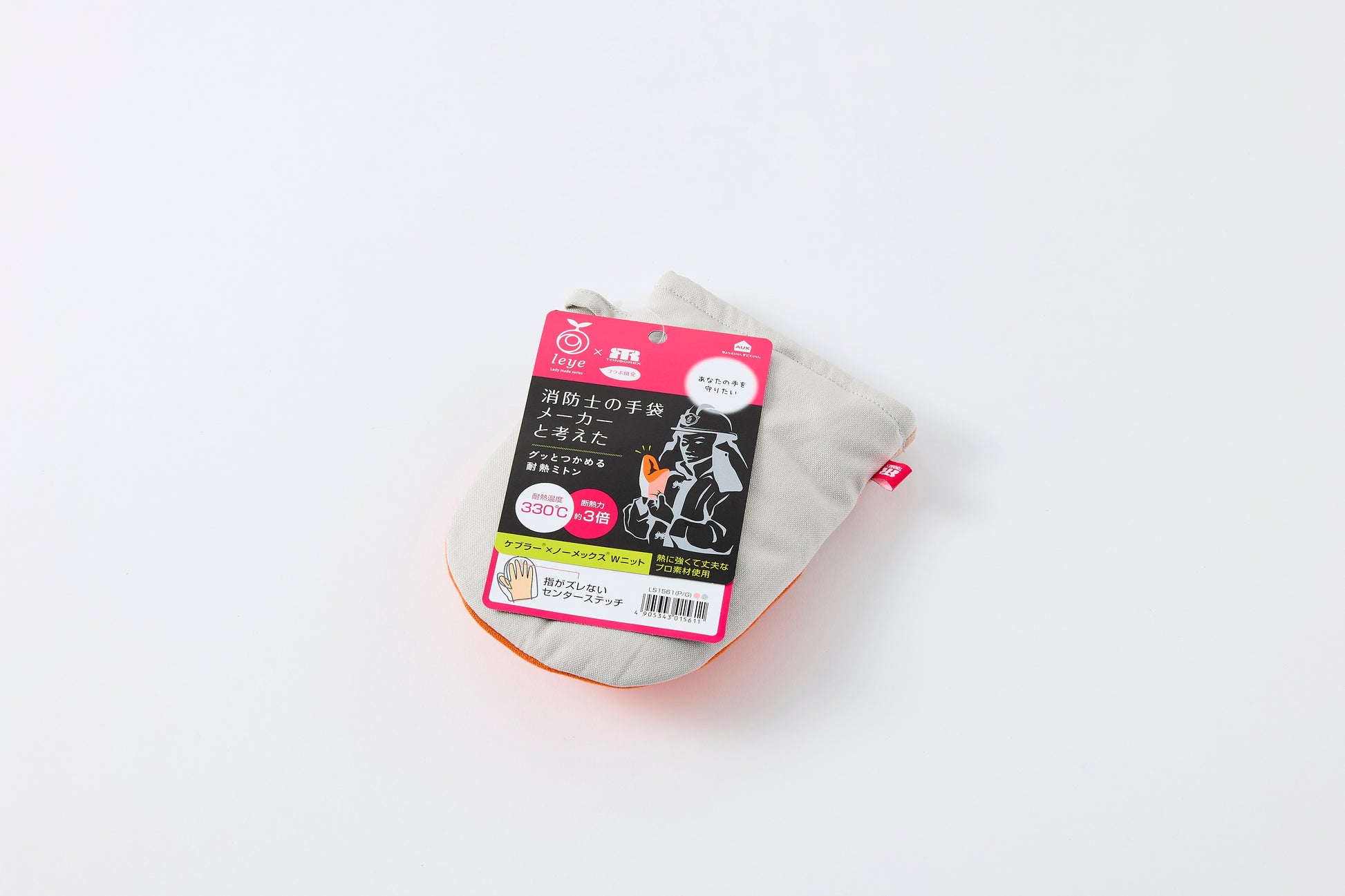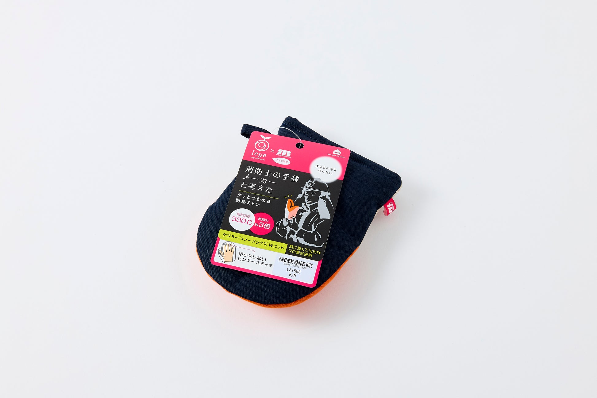 Made with a 5-layer structure that includes the durable material "Kevlar®×NOMEX® W Knit," also used in firefighter gloves to protect hands from the heat of piping hot dishes. It resists heat transfer effectively, even at high temperatures, with a heat resistance of up to 330°C, offering 2 to 3 times the insulation of standard oven mitts. The center stitching ensures a snug fit to hand movements, allowing a secure grip without finger slippage. This mitt was created in collaboration with the leading manufacturer of firefighter gloves, designed with the sole purpose of "protecting hands."