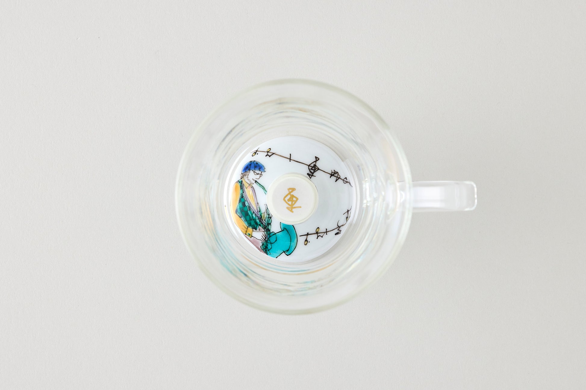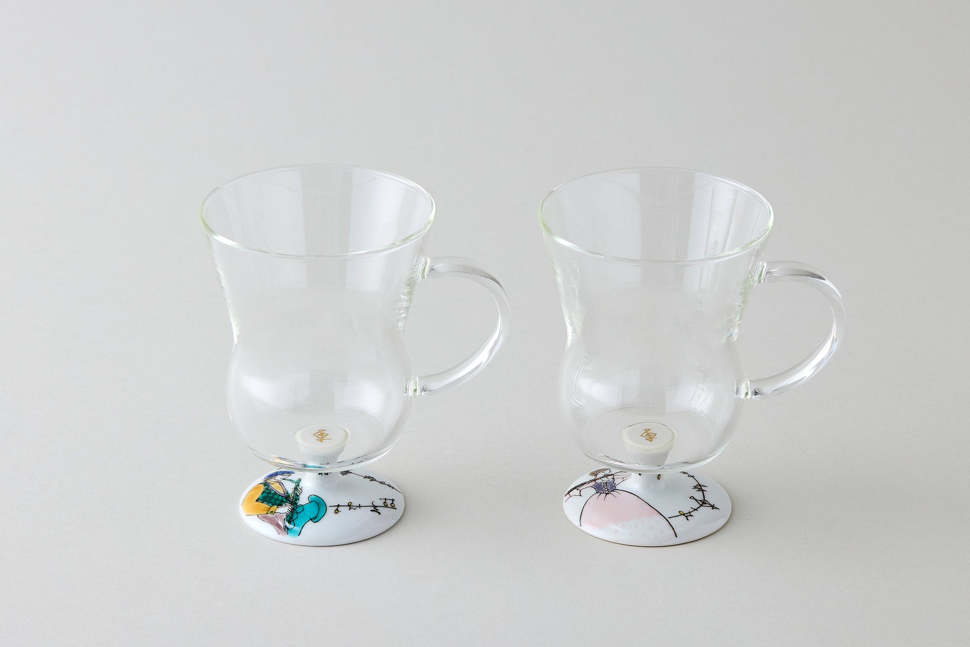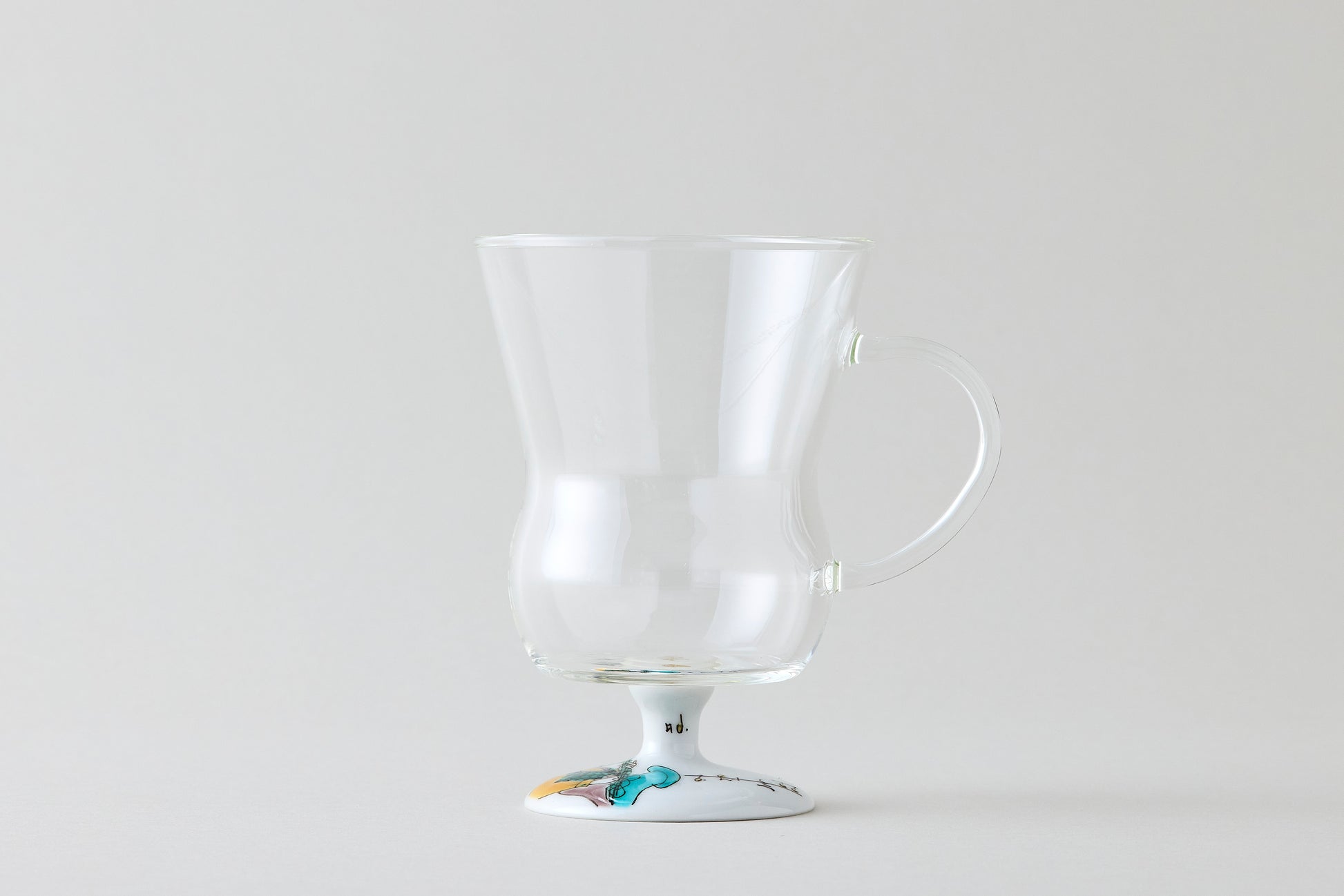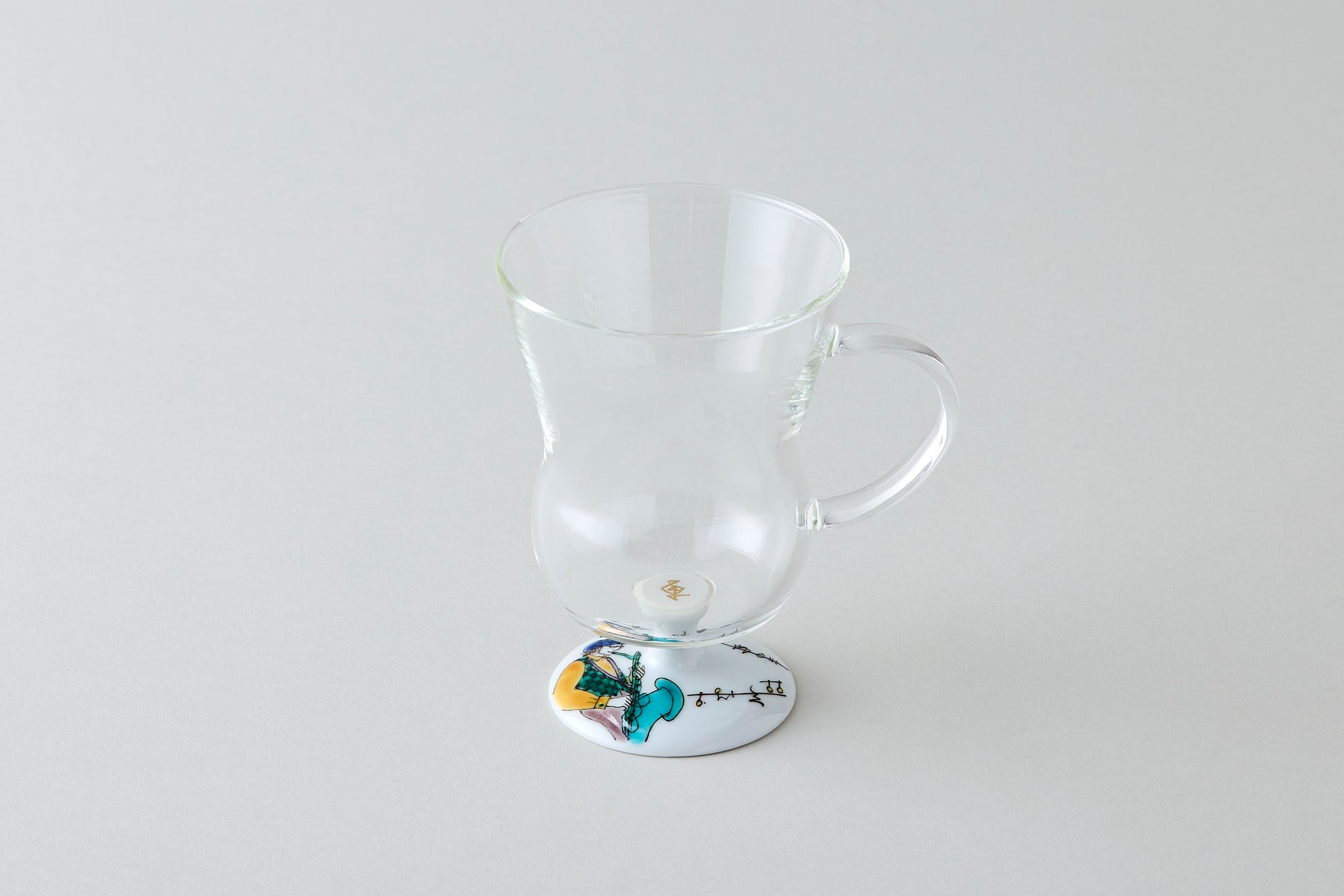 This is the heat-resistant glass series of "Kutani Wa Glass," created by combining Kutani porcelain and heat-resistant glass. You can enjoy warm beverages with it. The painting on the stem is by Mieko Takegoshi. Please enjoy the delicate and sophisticated touch and color tones.