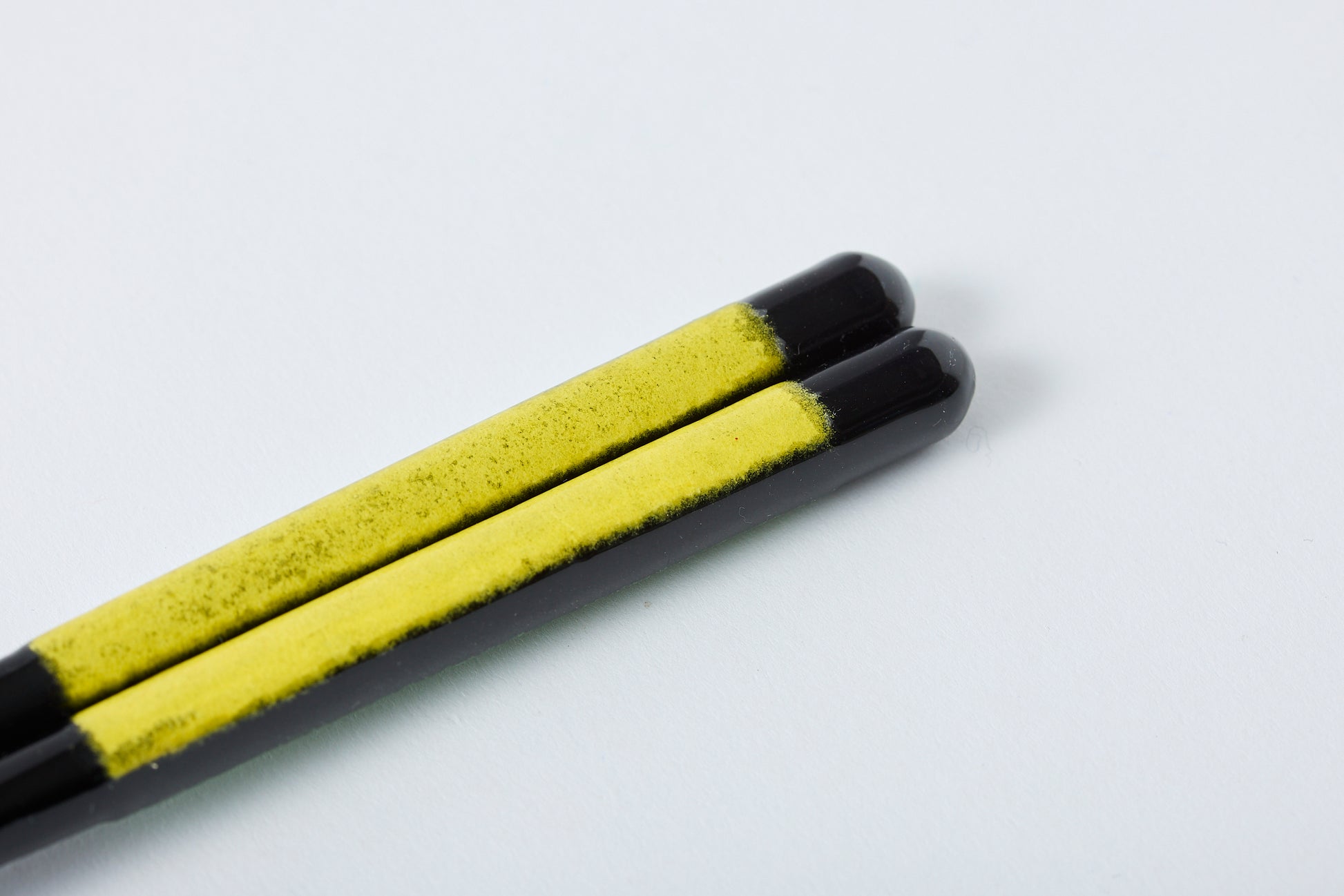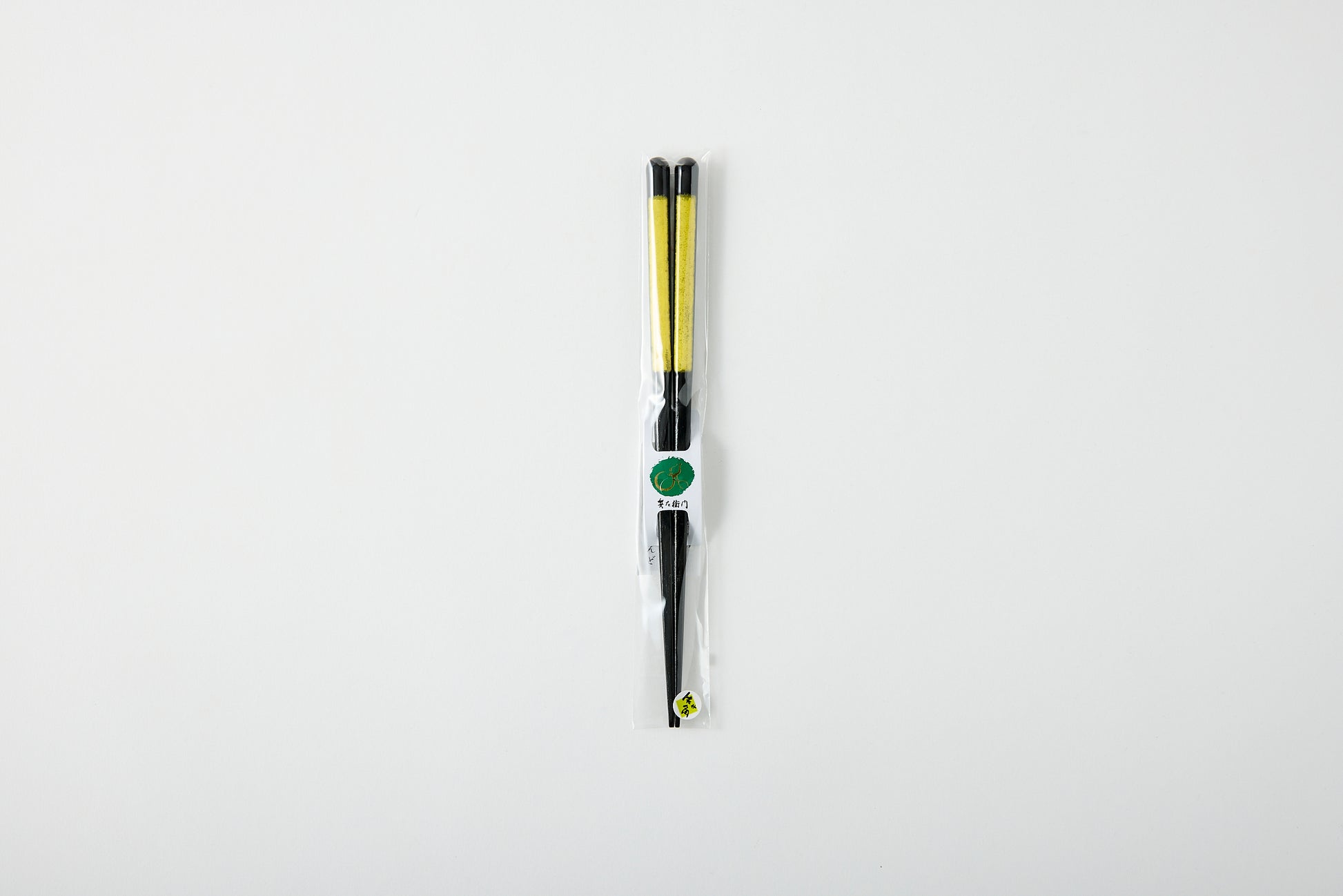 Chopsticks with yellow and green Japanese paper attached on both sides, creating a colorful and cheerful design.