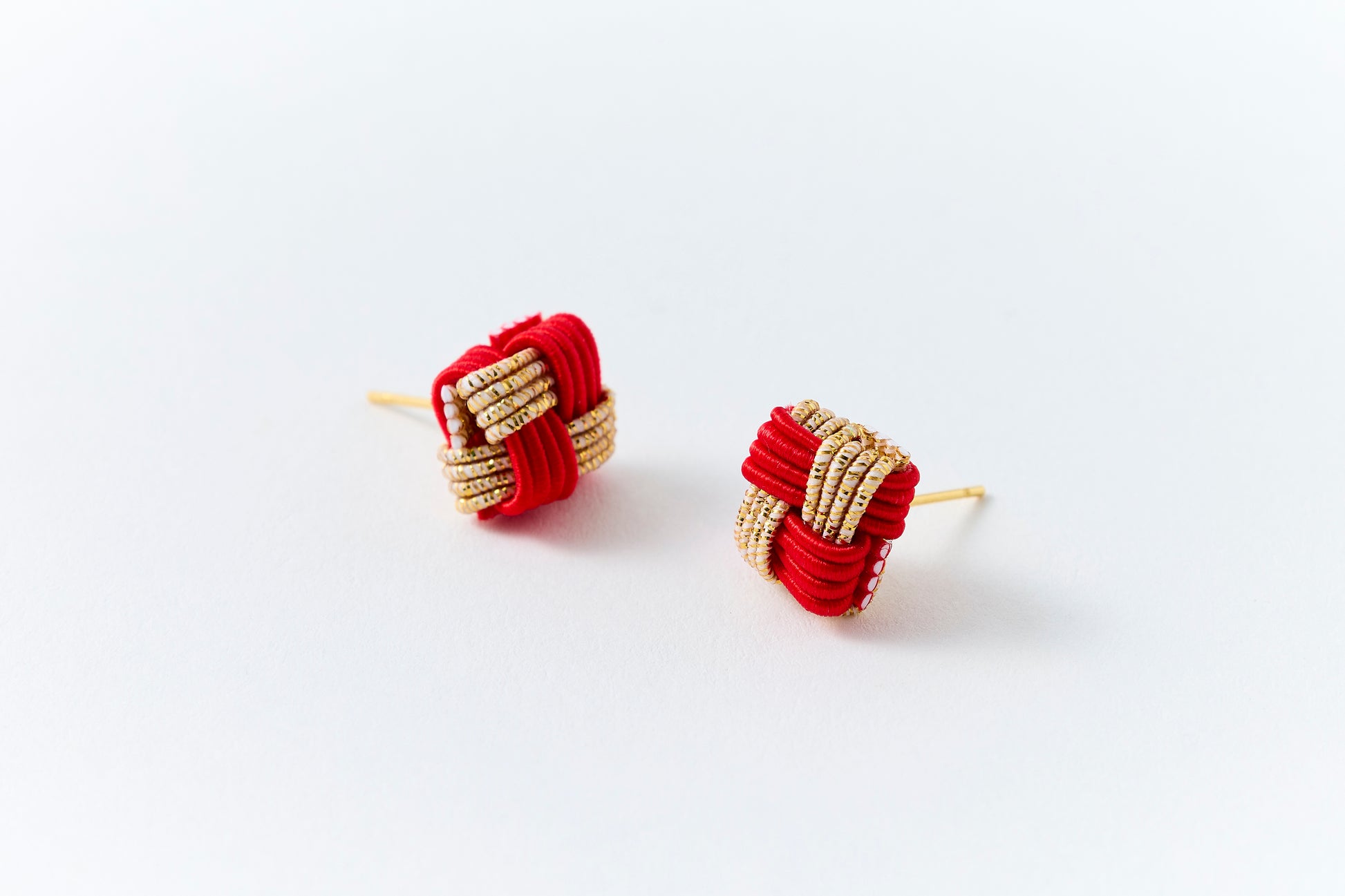 Ichimatsu | Pierced Earrings (Surgical Stainless Steel) - Red & Gold