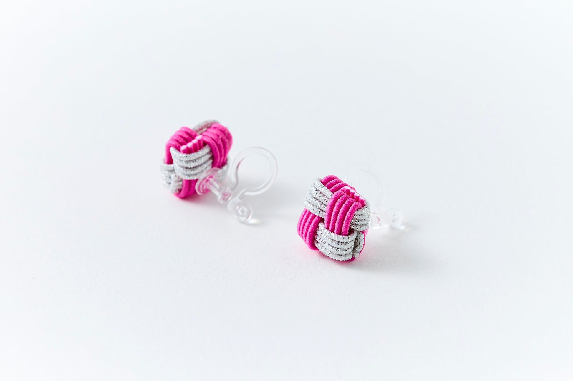 Ichimatsu | Non-Pierced Earrings (Resin) - Rhododendron & Silver