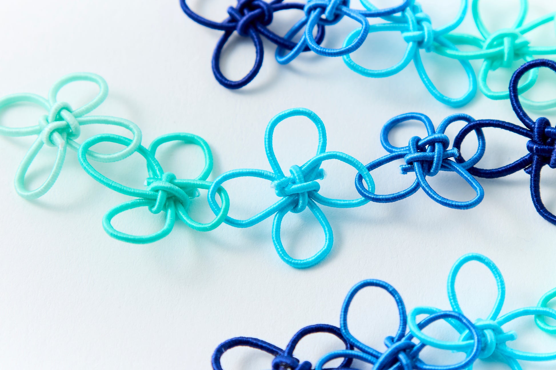 Accessories featuring a design of 30 delicate flowers connected together, resembling a miniature flower field worn on the body.